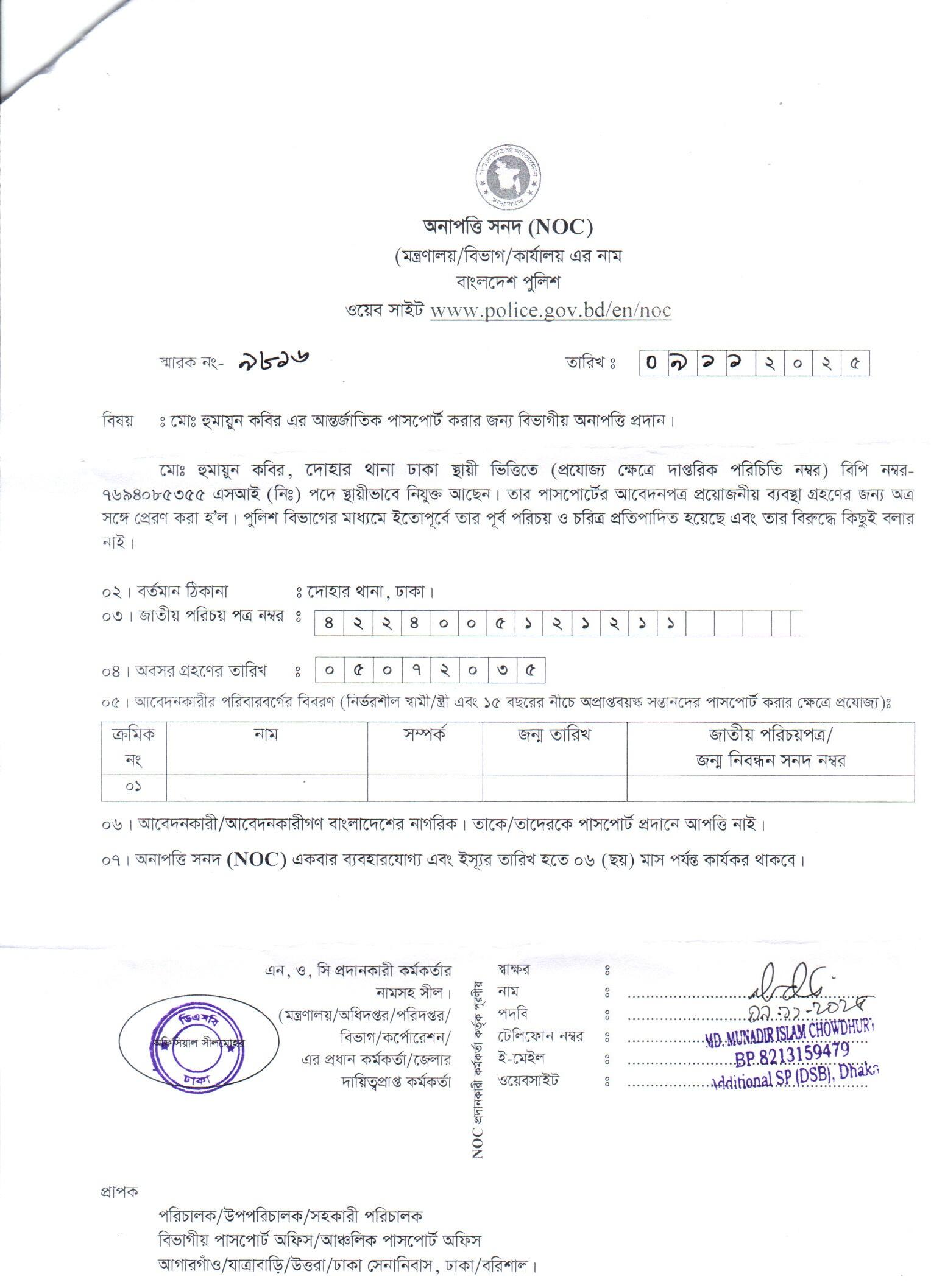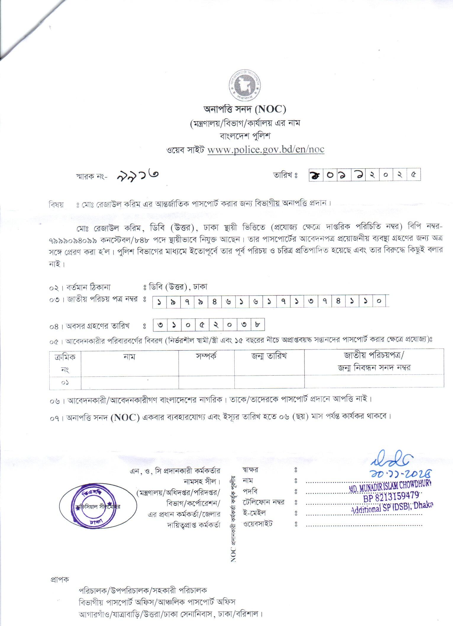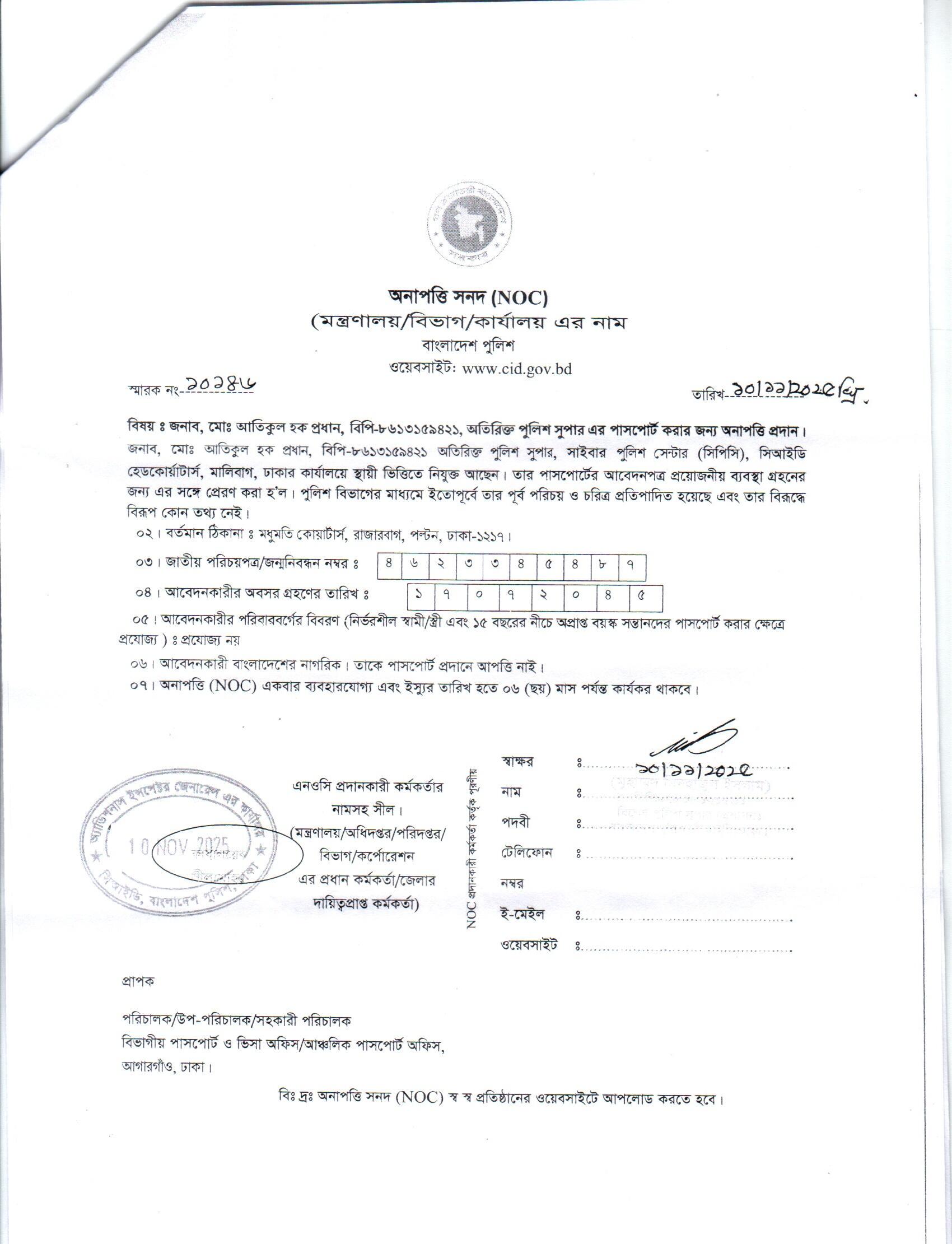 | 5 | সোহেল আহমেদ, Addl SP | CID, DHAKA | 17-11-2025 | View | Download |