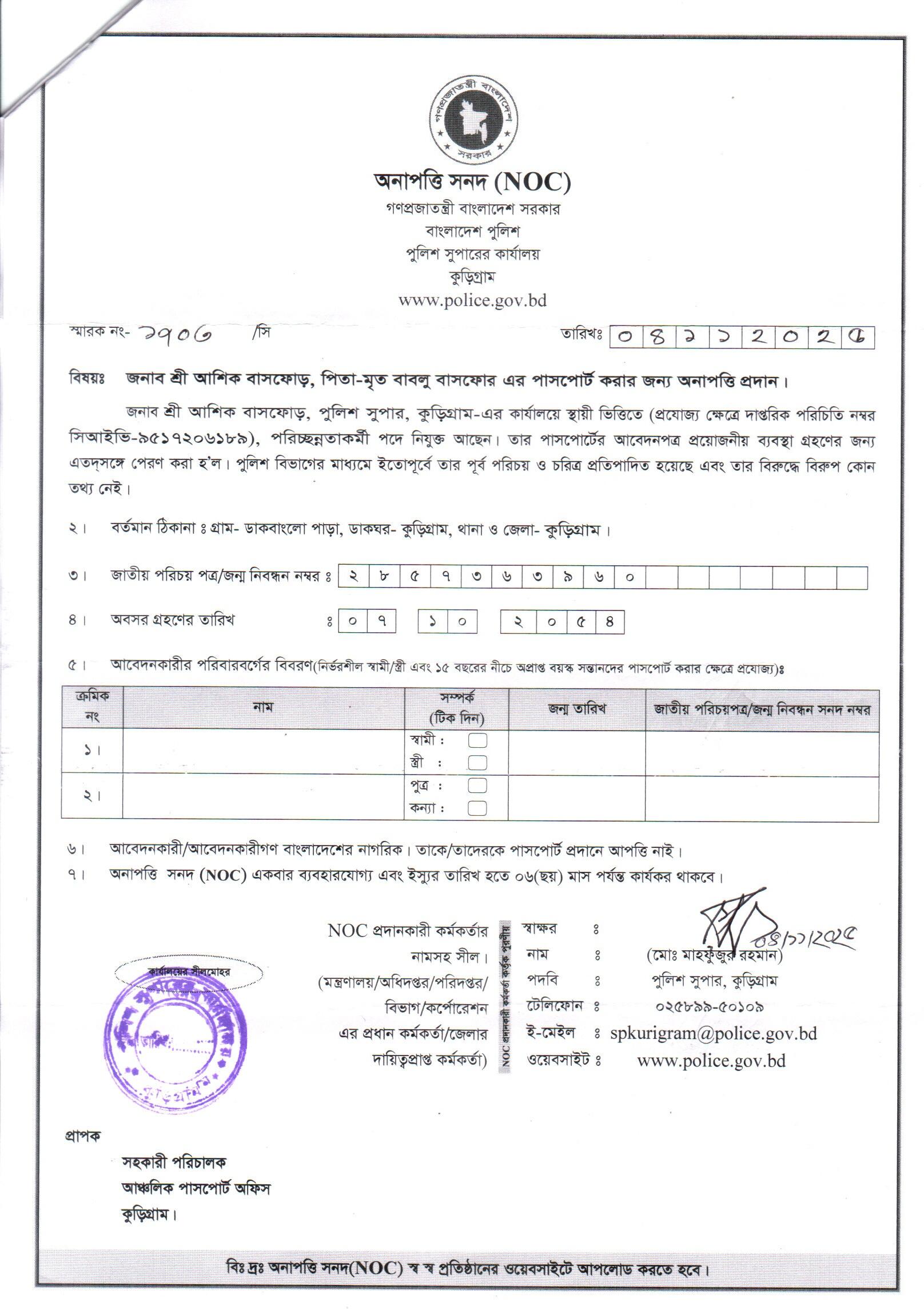 | 14 | মোঃ জিহাদুর রহমান, SI | Lalmonirhat | 12-11-2025 | View | Download |