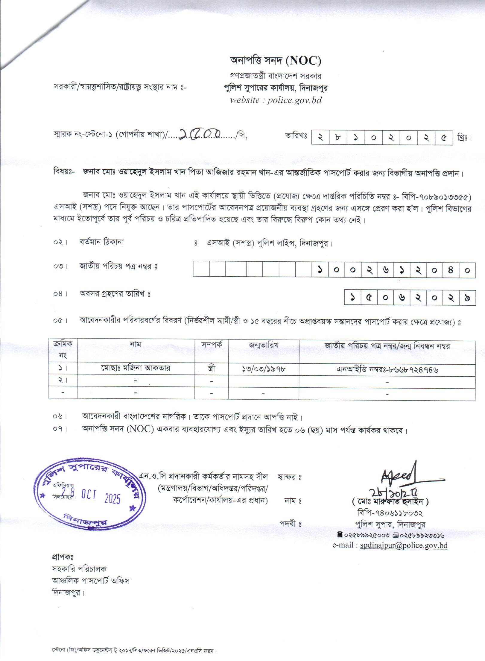 | 50 | মোঃ ওয়াহেদুল ইসলাম খান, SI | Dinajpur | 02-11-2025 | View | Download |