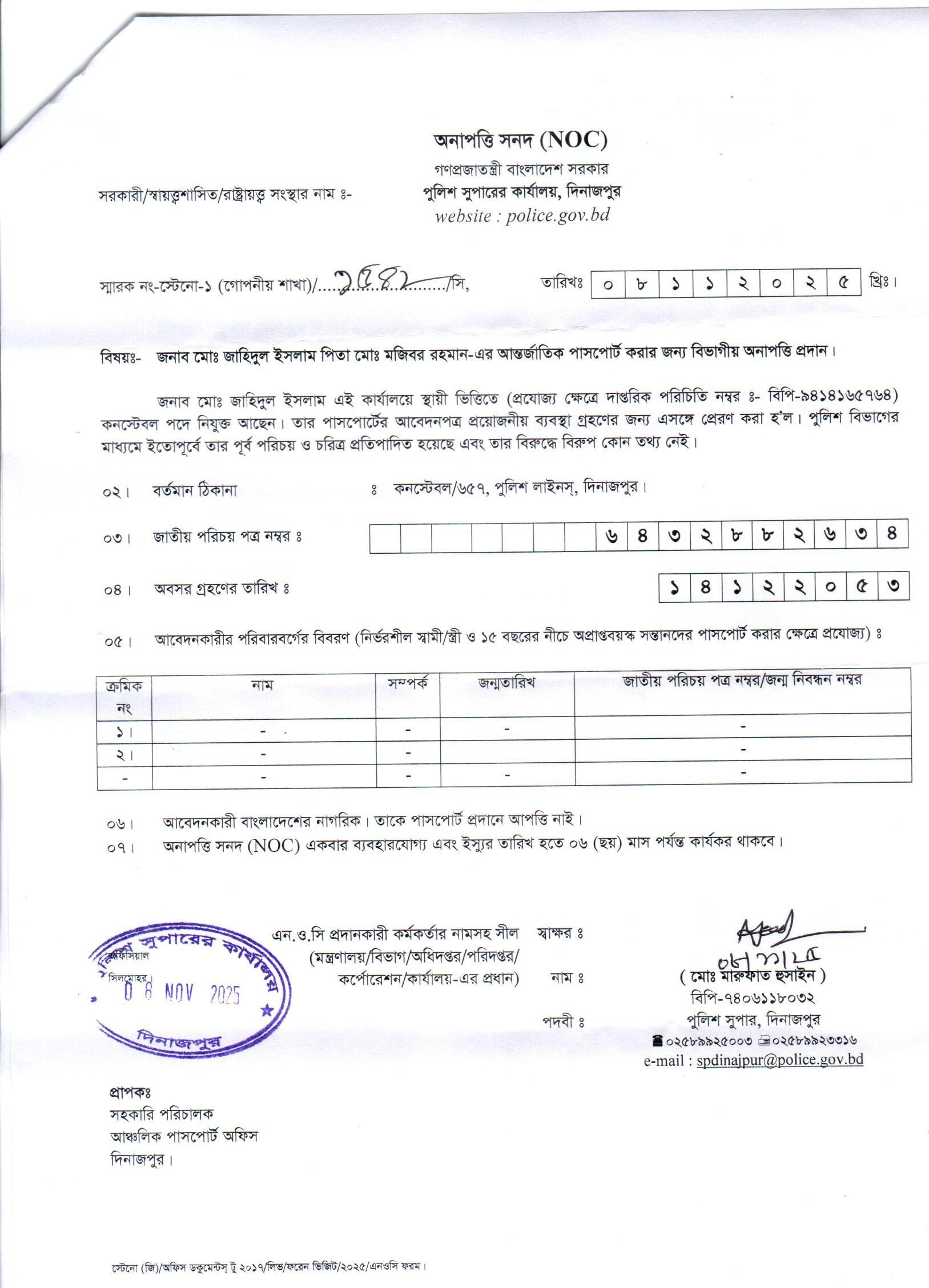 | 9 | মোঃ জাহিদুল ইসলাম, Cons | Dinajpur | 16-11-2025 | View | Download |