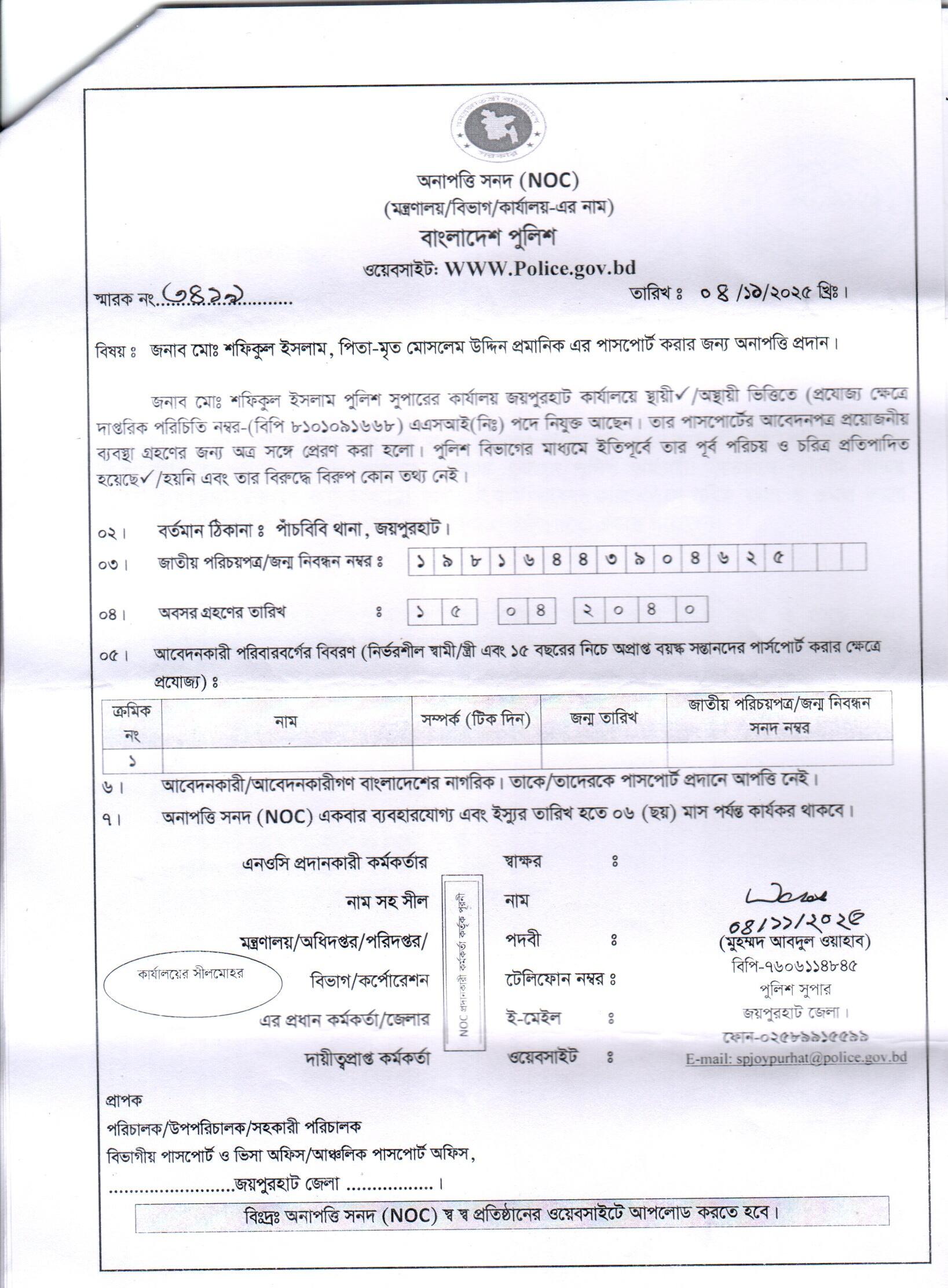 | 34 | মোঃ শফিকুল ইসলাম, ASI | Joypurhat | 09-11-2025 | View | Download |