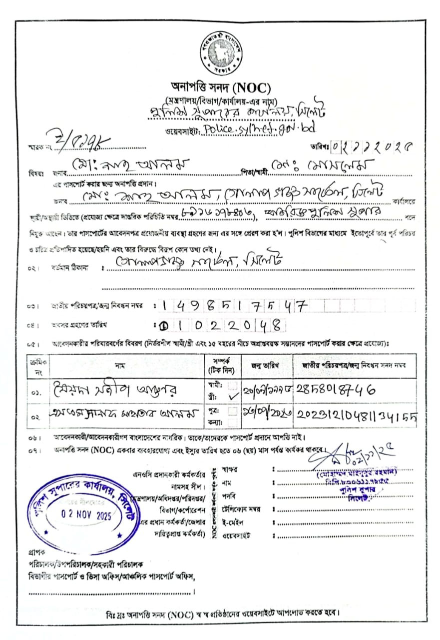| 47 | মোঃ শাহ আলম, Addl SP | Sylhet | 02-11-2025 | View | Download |