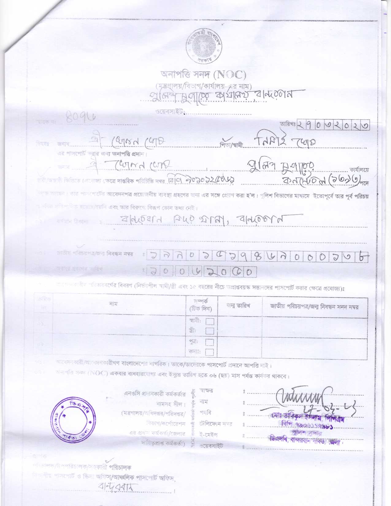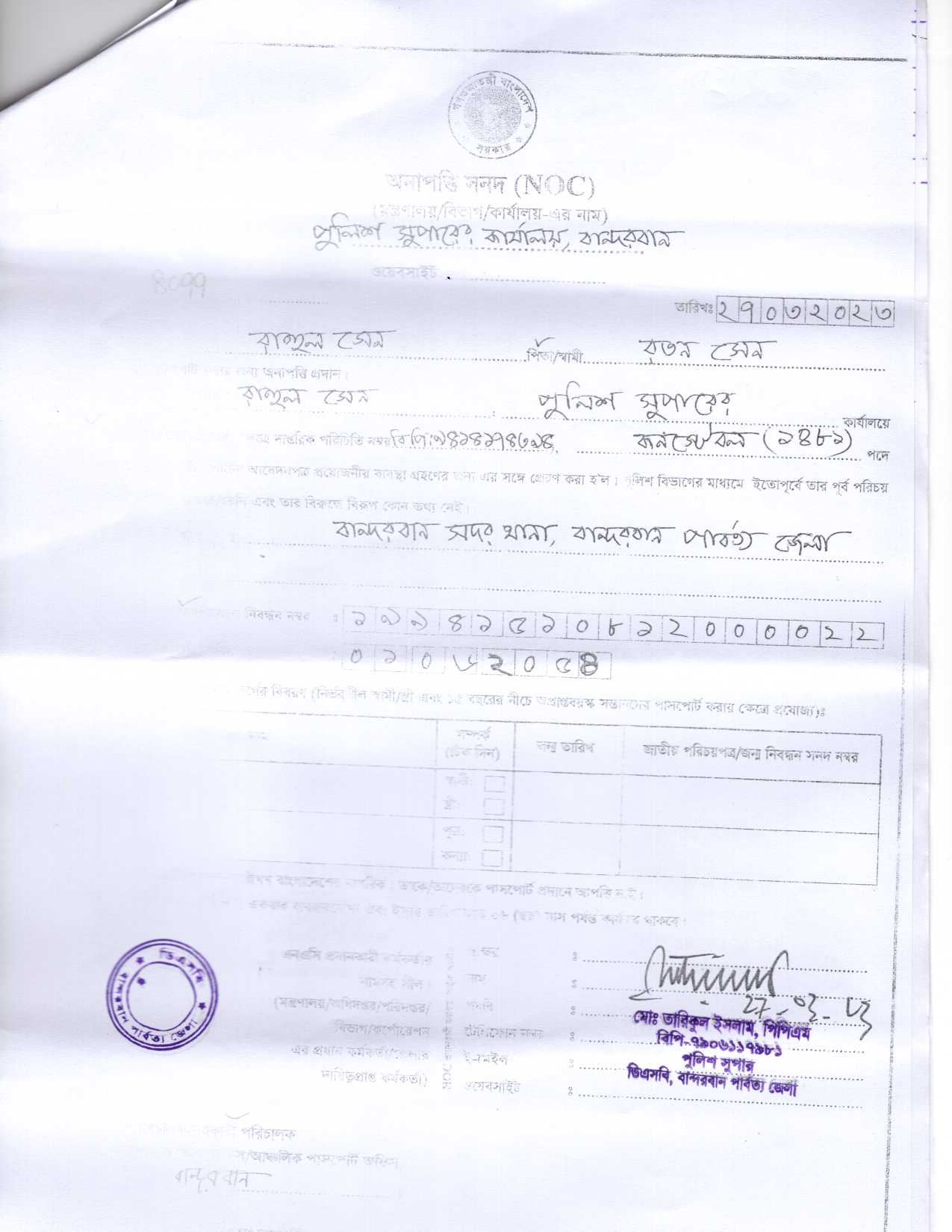 | 5434 | সতেন্দ্র নাথ বর্মন, Cons | Bandarban. | 03-04-2023 | View | Download |