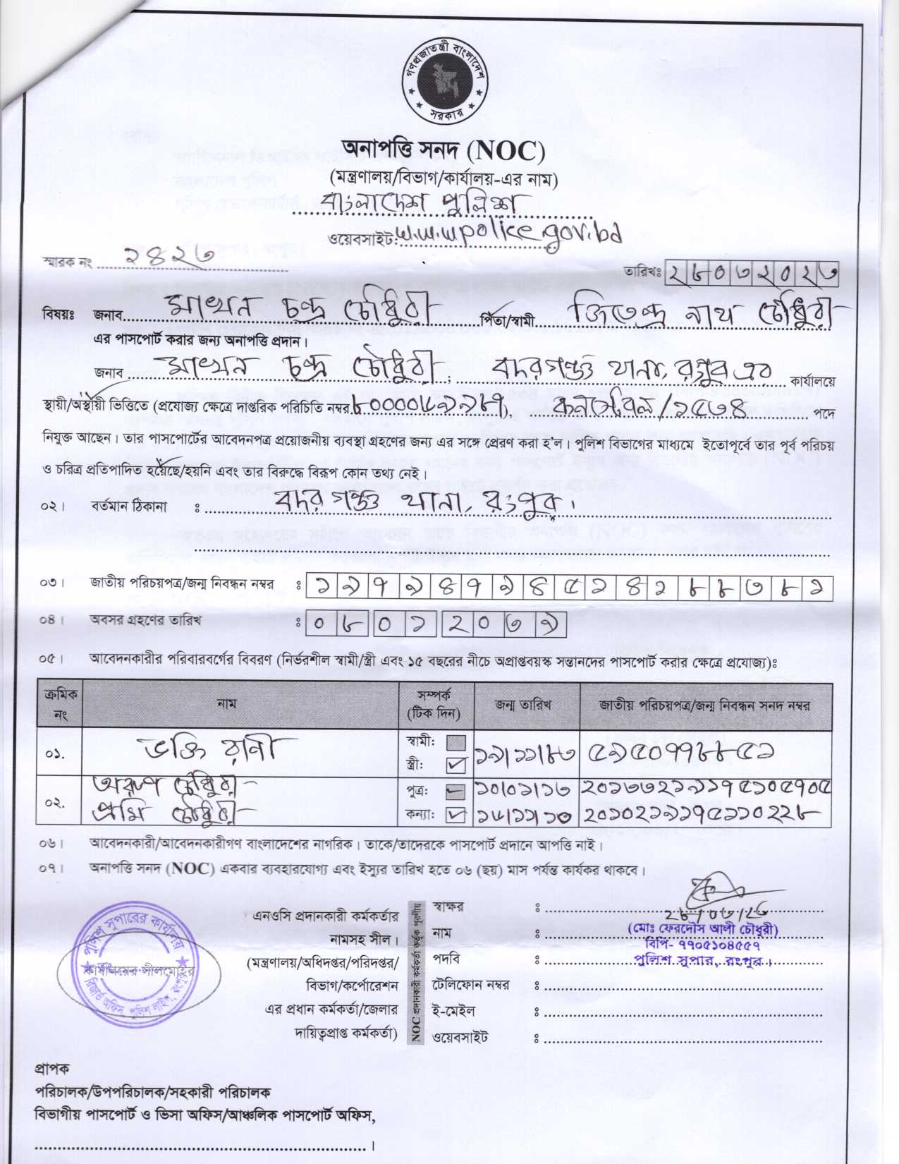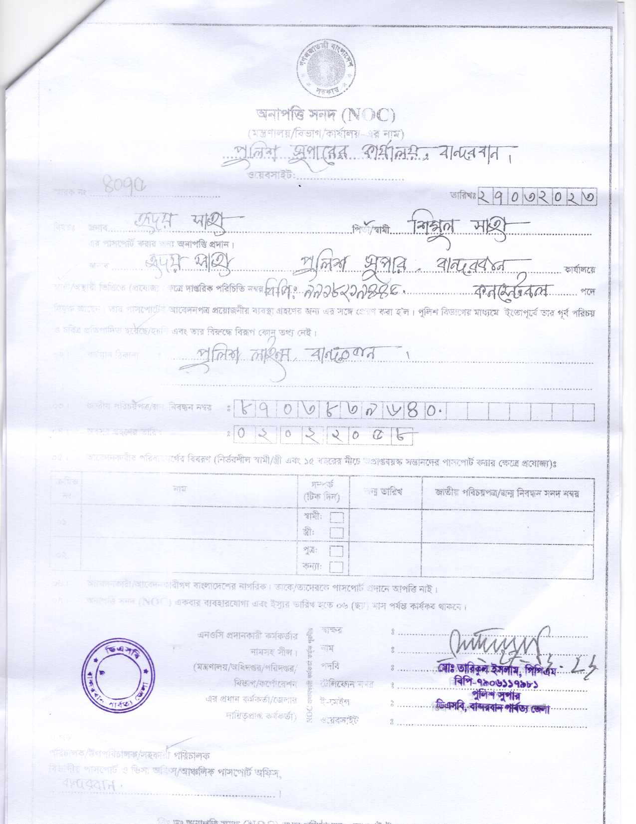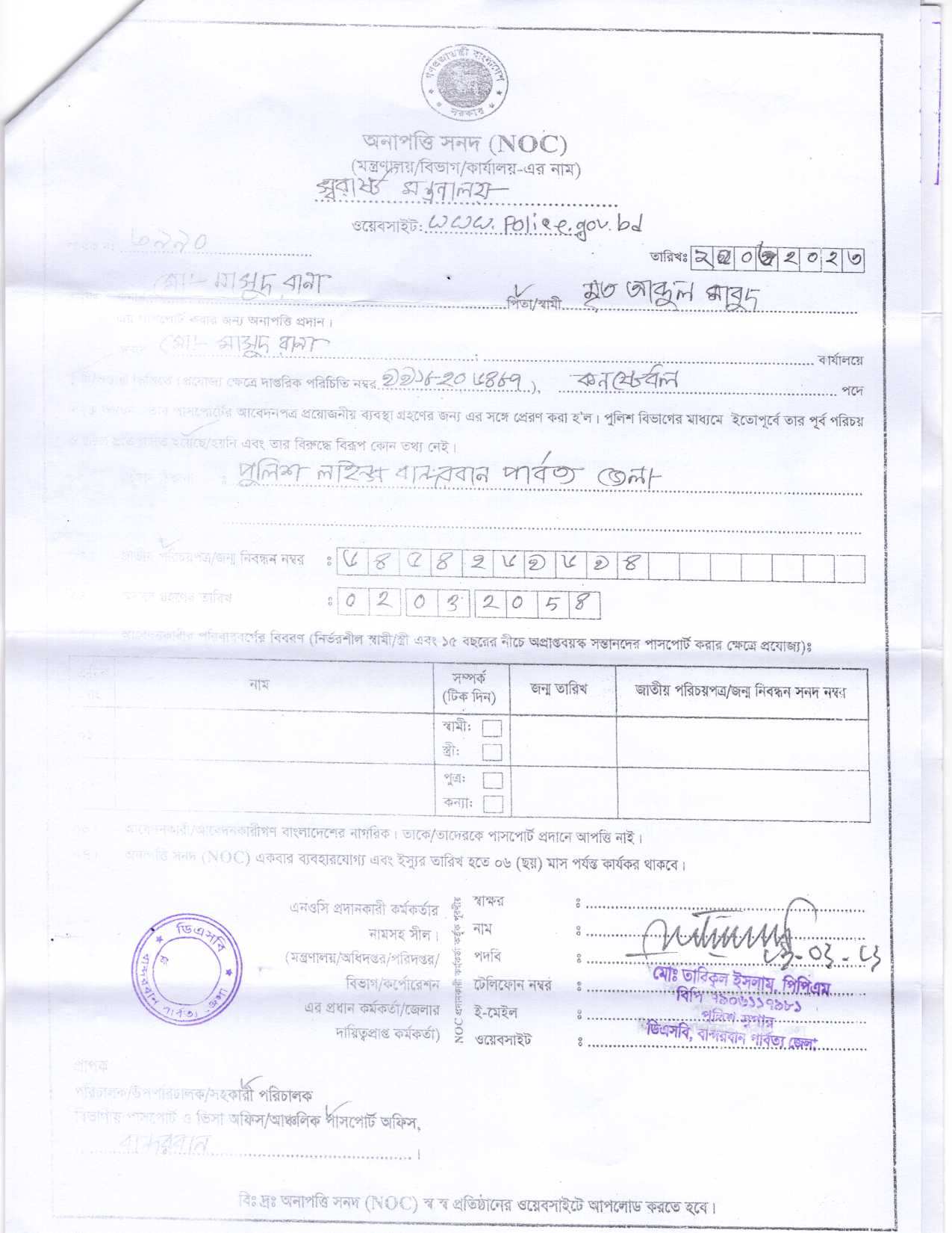 | 5412 | মোঃ নকিব হোসেন, Cons | Jhalokati. | 06-04-2023 | View | Download |