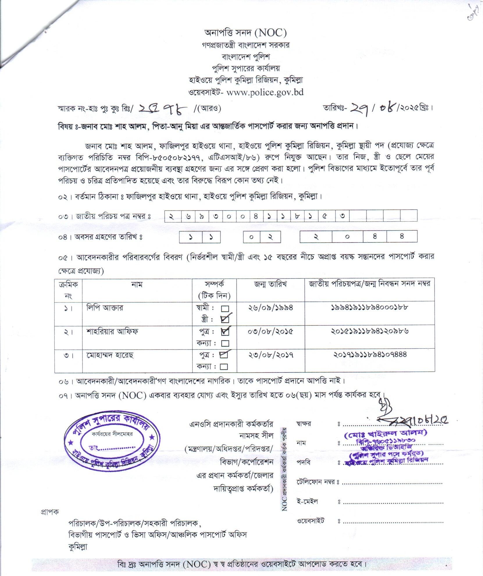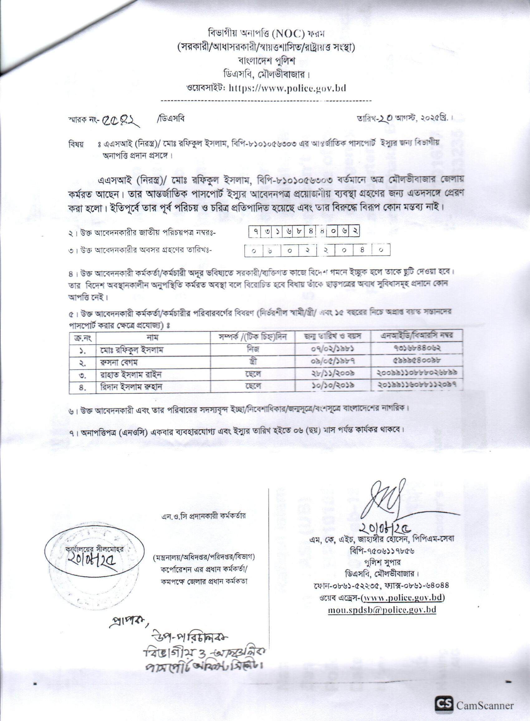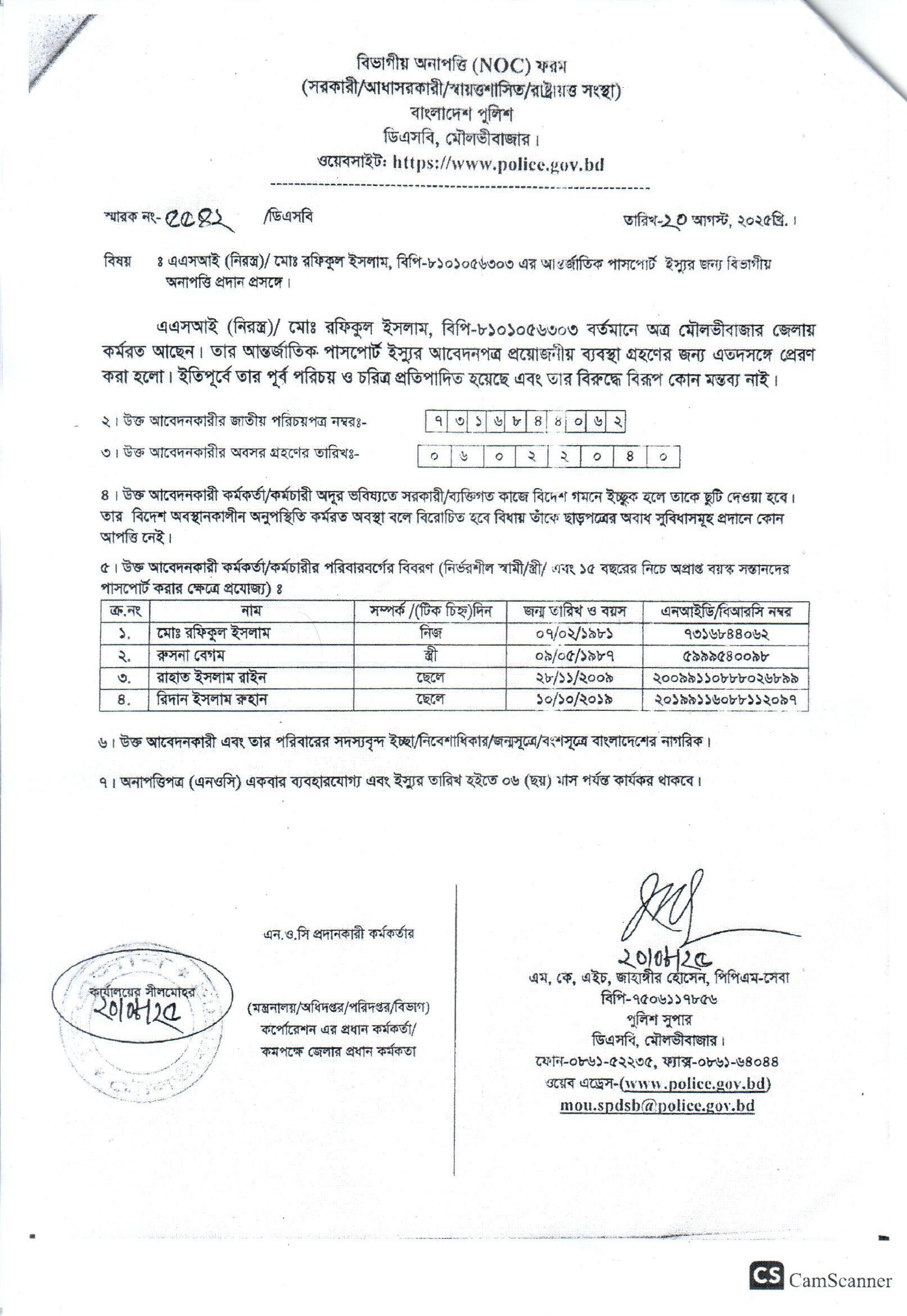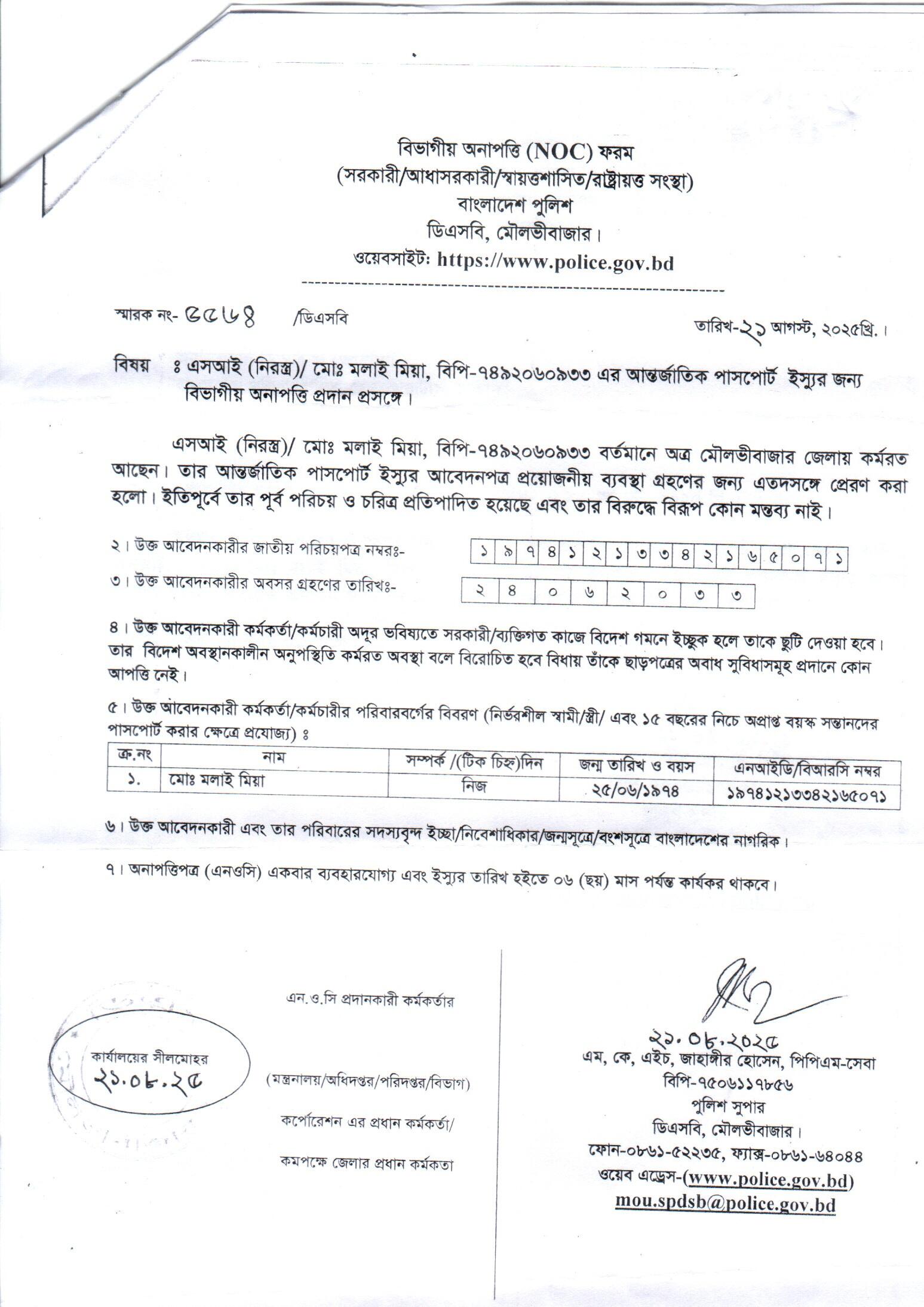 | 111 | মোঃ রফিকুল ইসলাম, ASI | Moulvibazar | 31-08-2025 | View | Download |