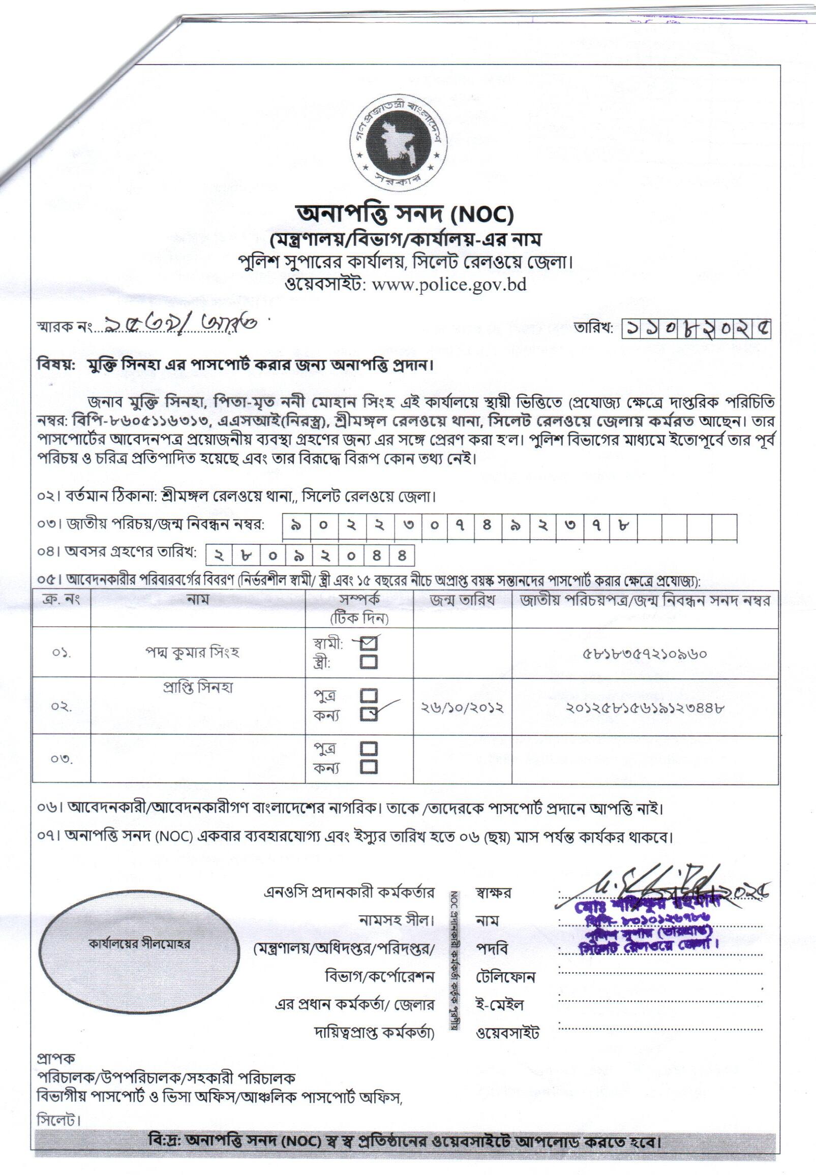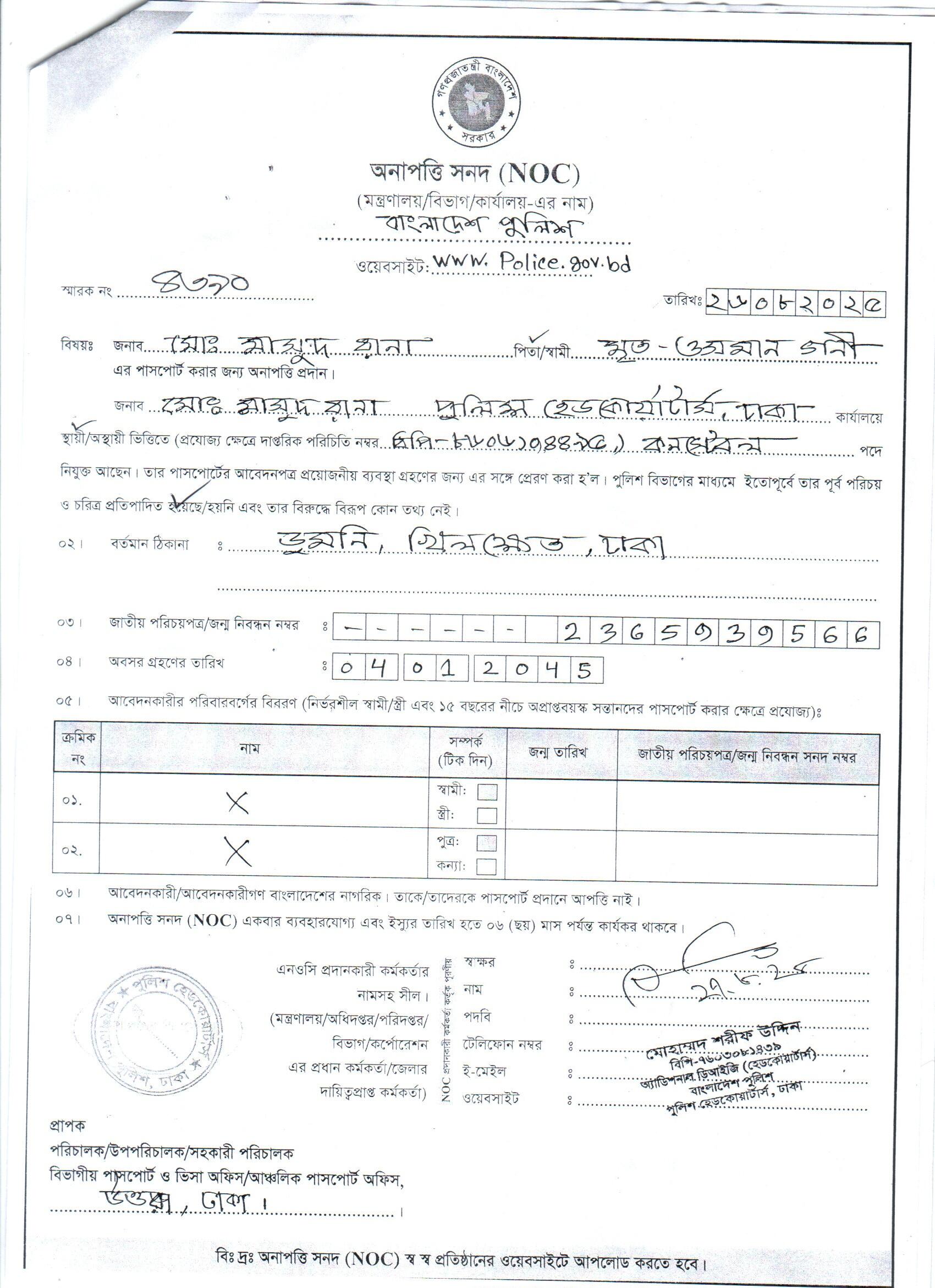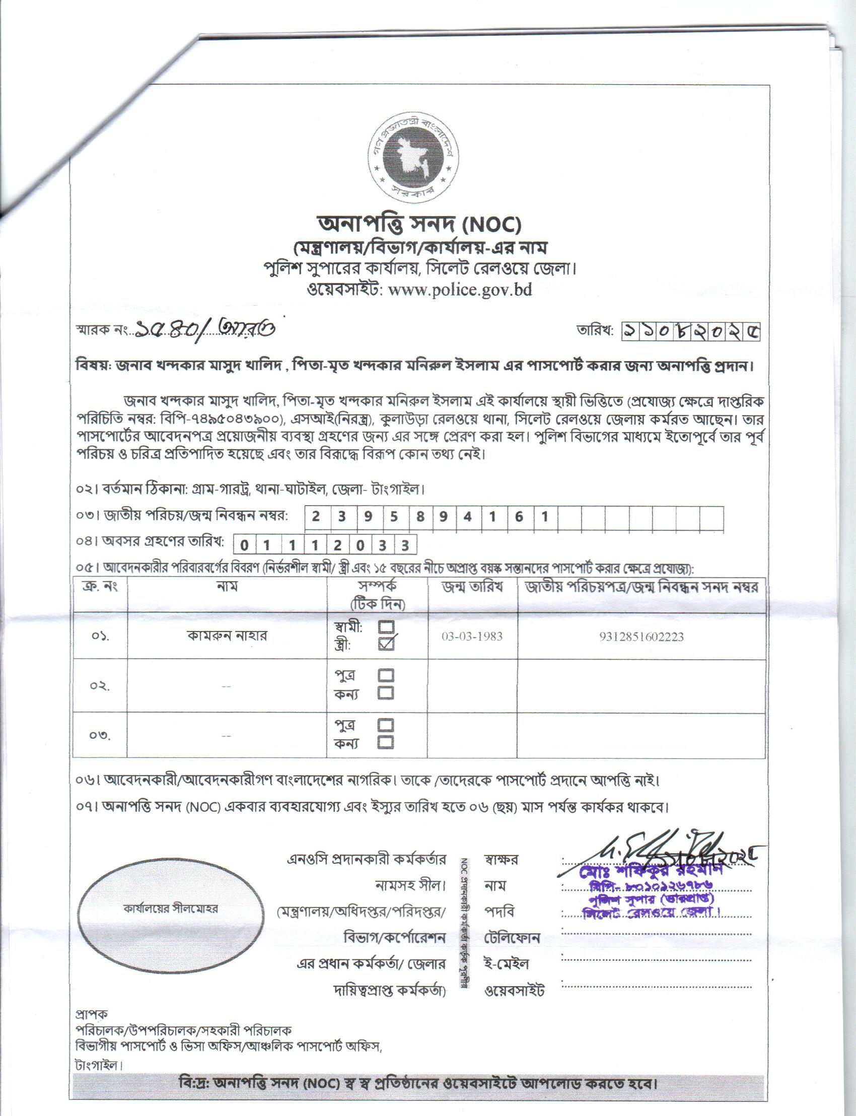 | 111 | মোঃ রফিকুল ইসলাম, ASI | Moulvibazar | 31-08-2025 | View | Download |
