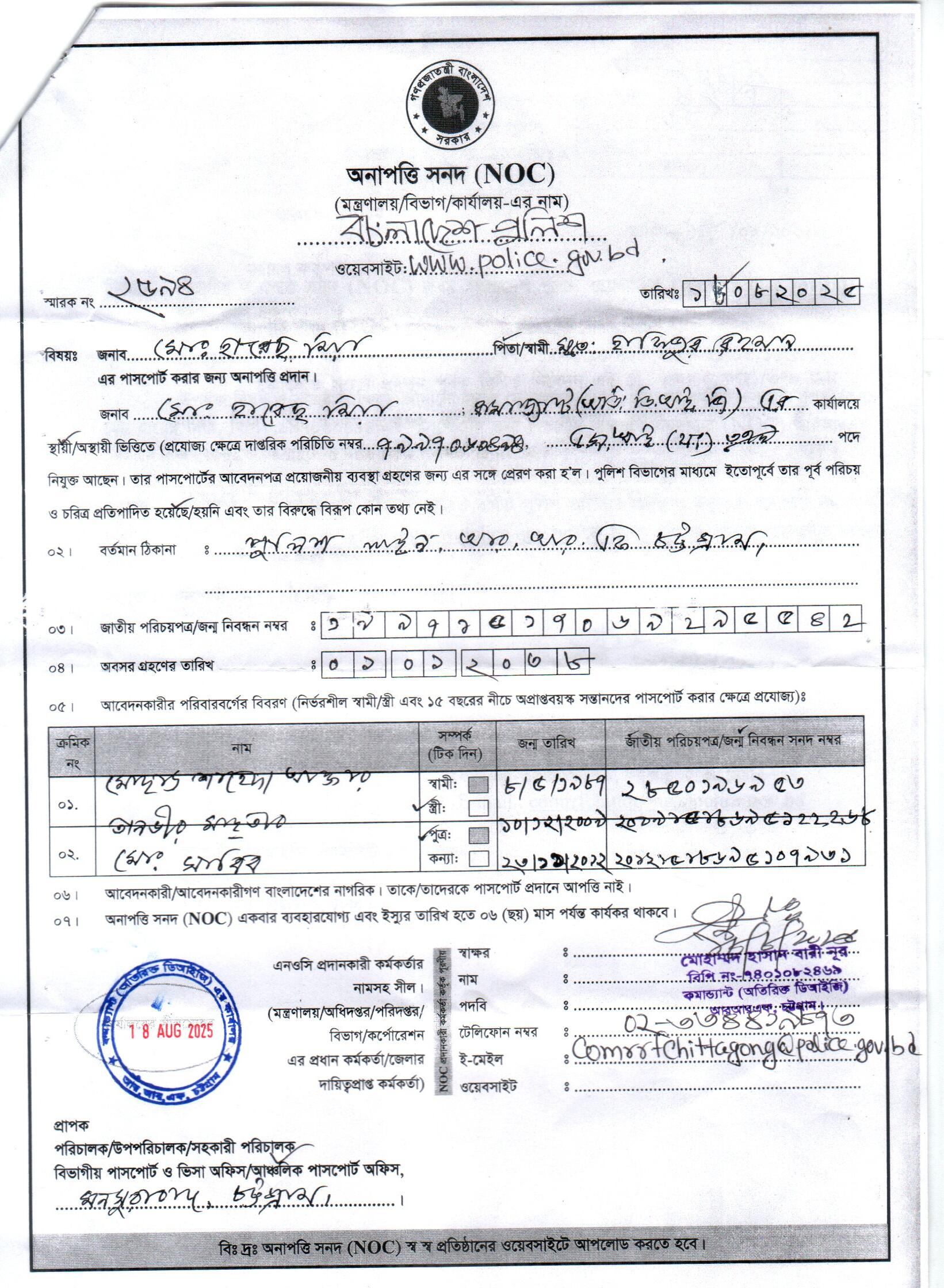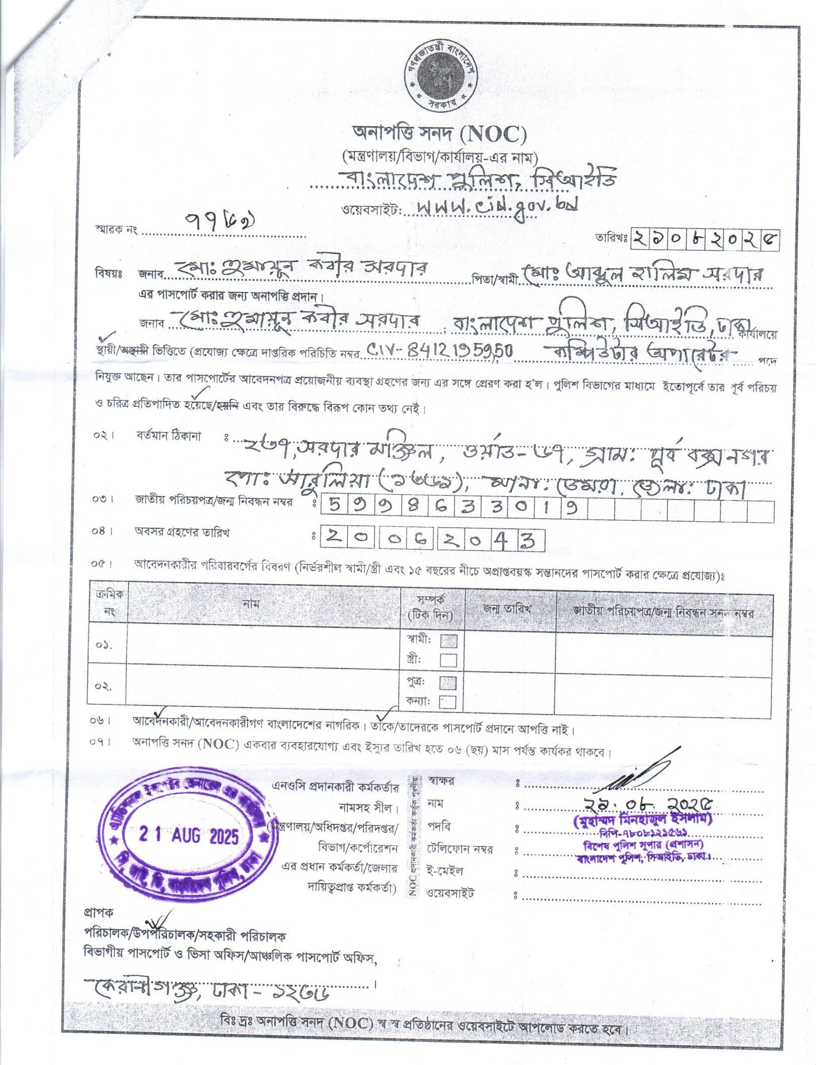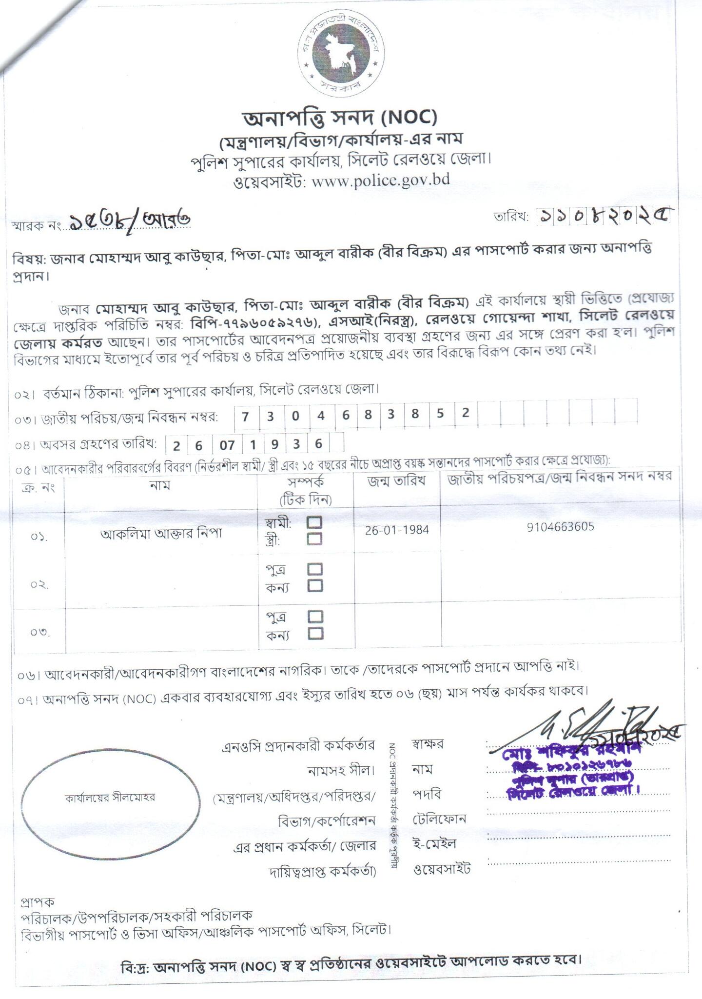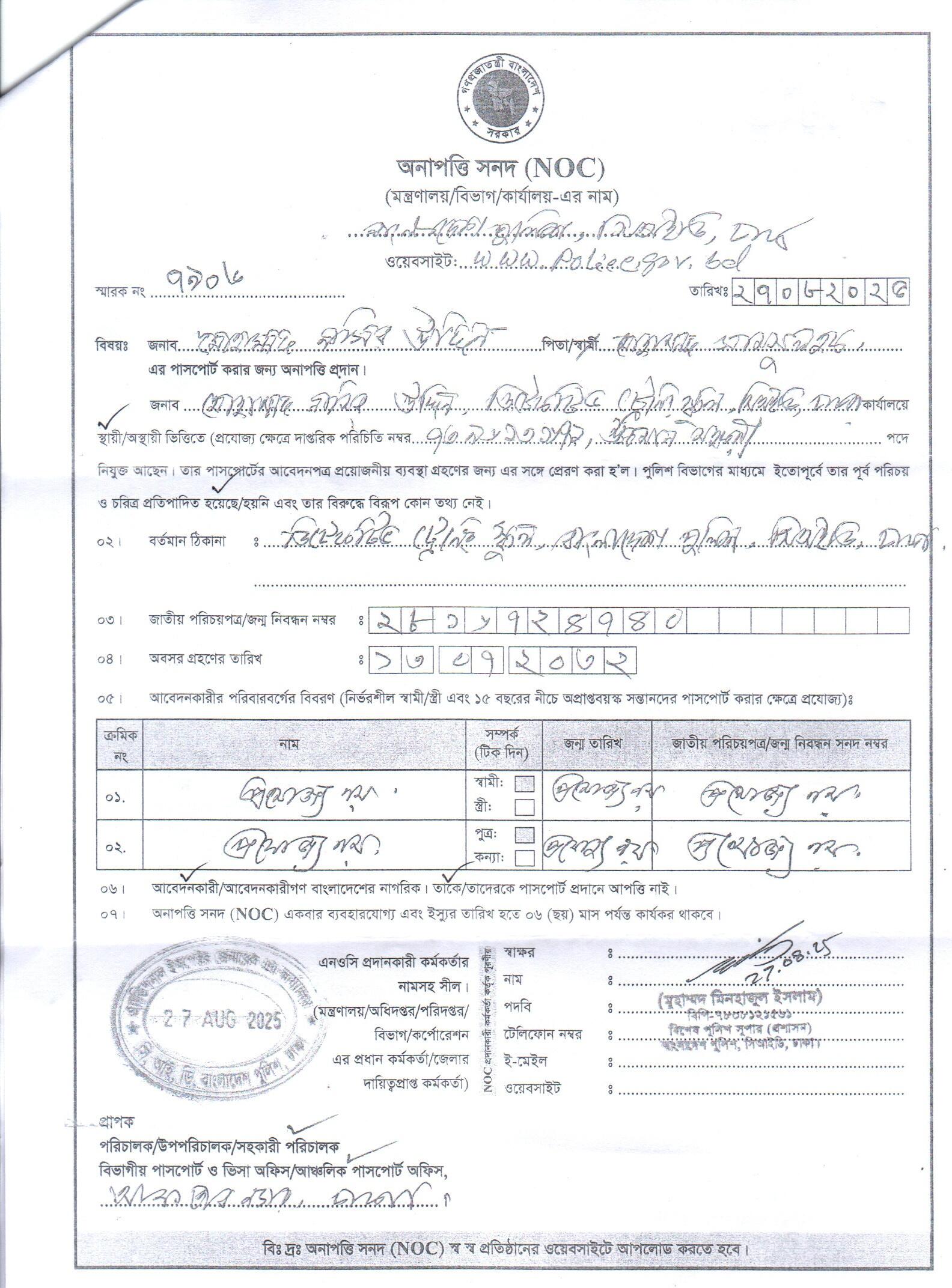 | 111 | মোঃ রফিকুল ইসলাম, ASI | Moulvibazar | 31-08-2025 | View | Download |