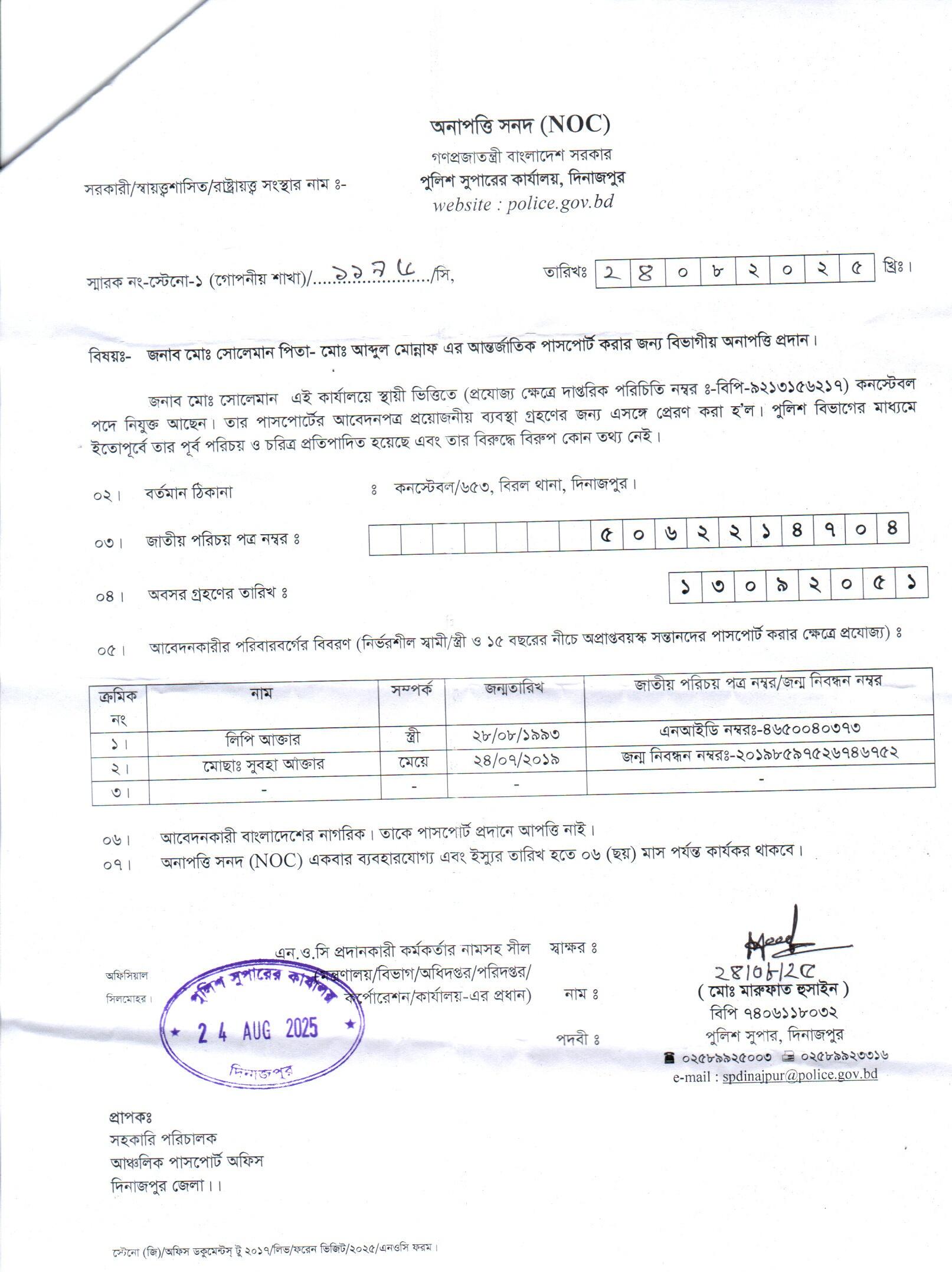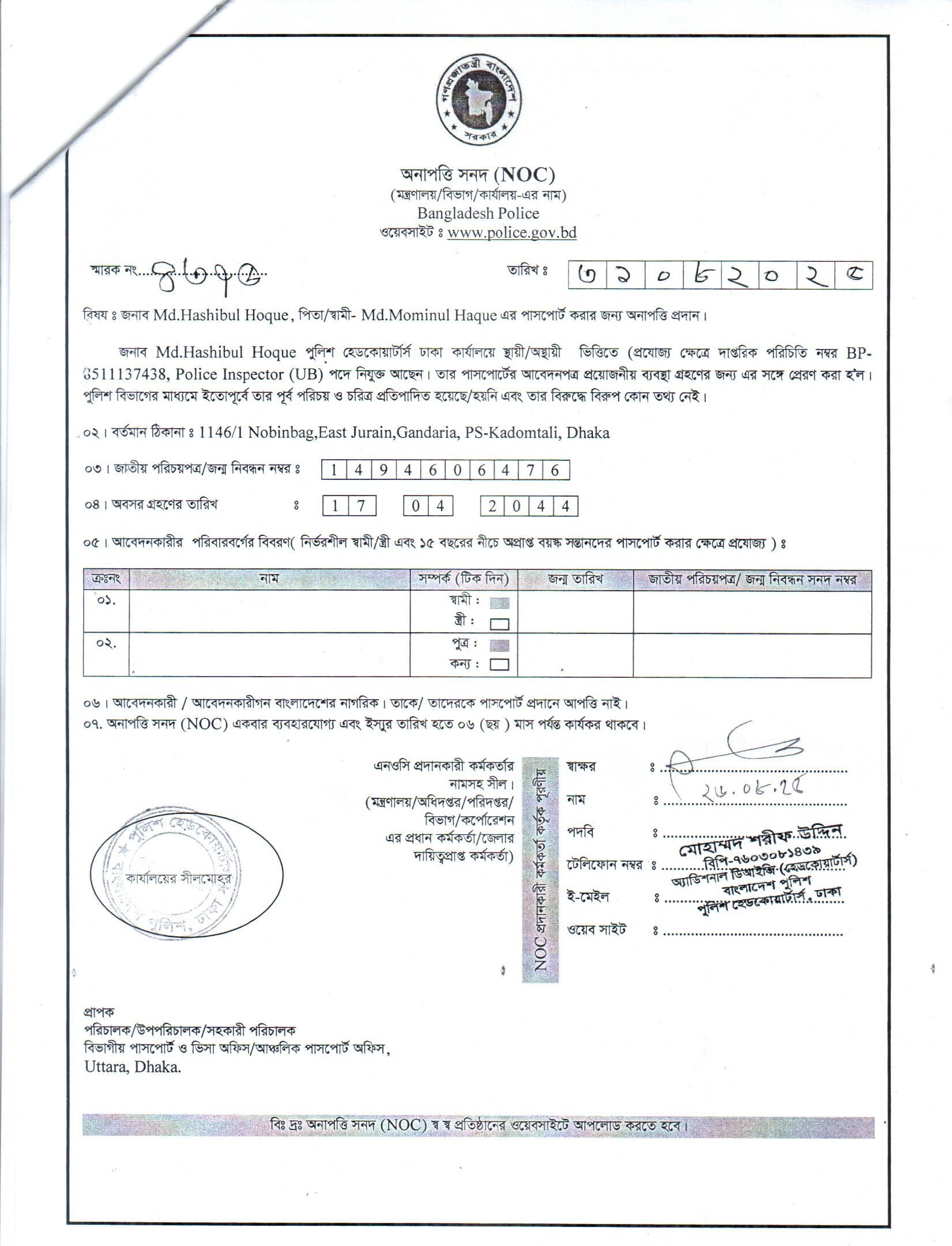 | 145 | মোঃ রফিকুল ইসলাম, ASI | Moulvibazar | 24-08-2025 | View | Download |