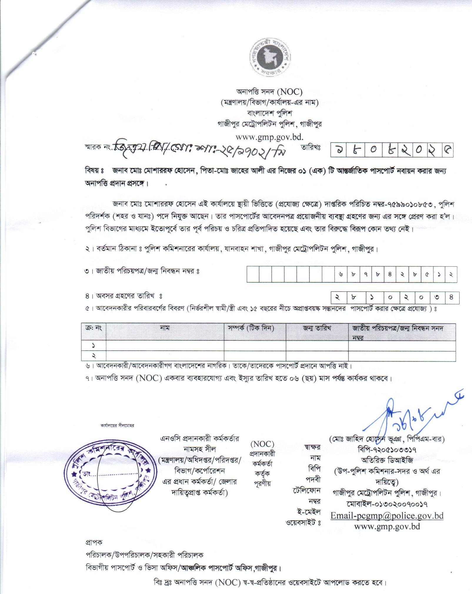 | 150 | মোঃ মোশাররফ হোসেন, Insp | GMP, Gazipur | 21-08-2025 | View | Download |