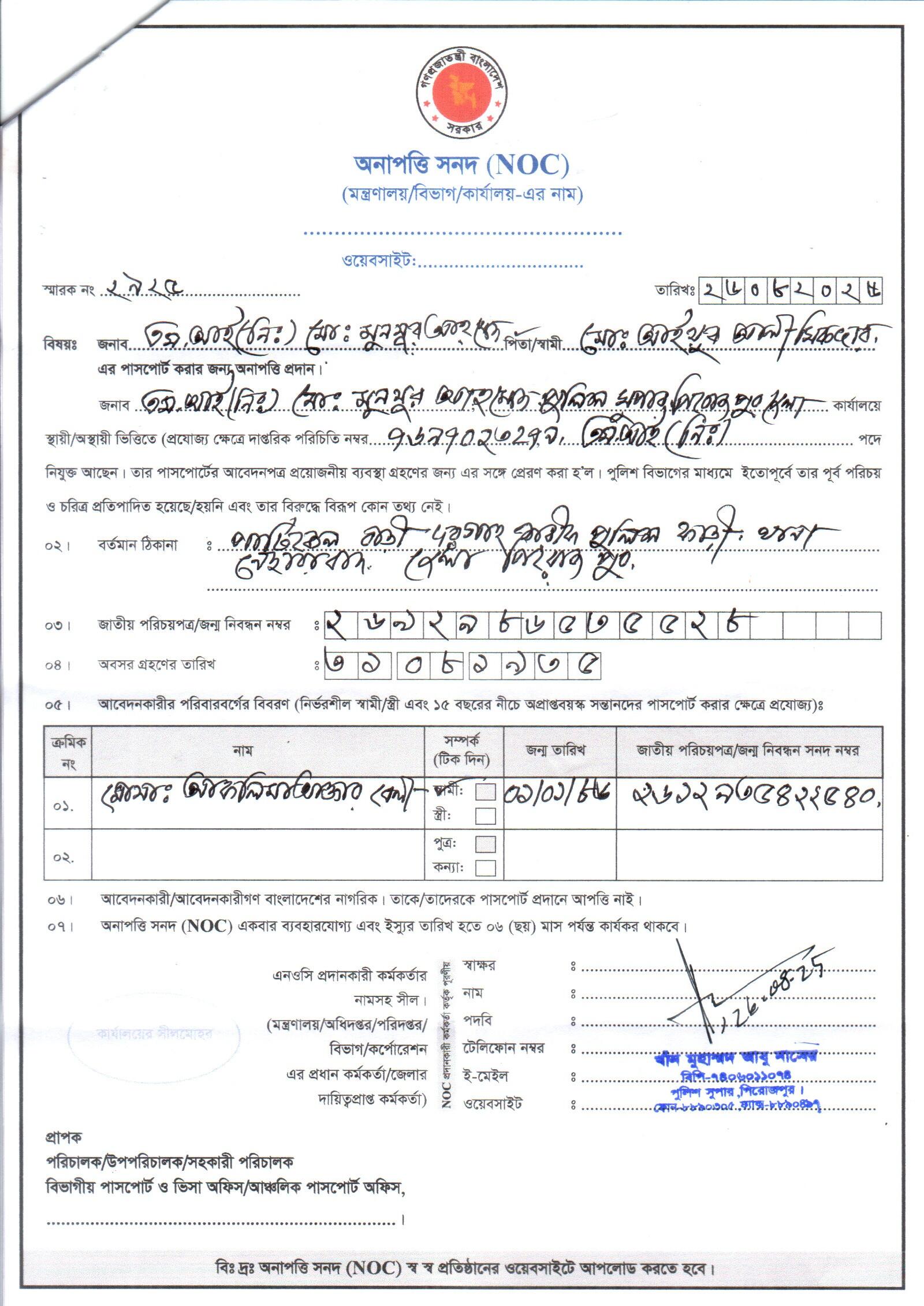 | 139 | মোঃ হারুন, NK | Jhalakathi | 24-08-2025 | View | Download |