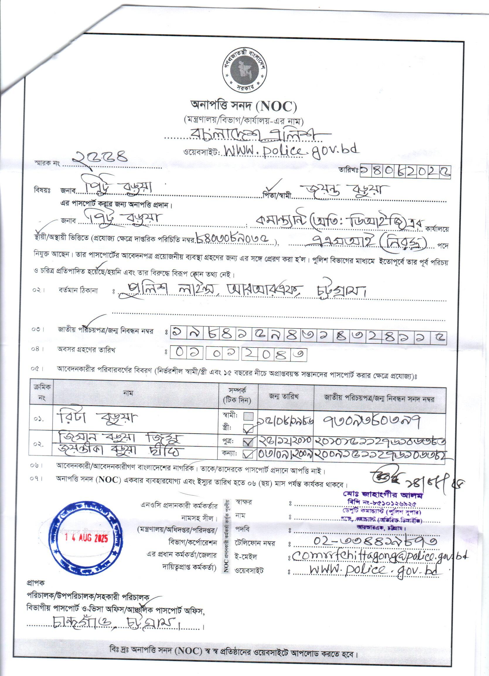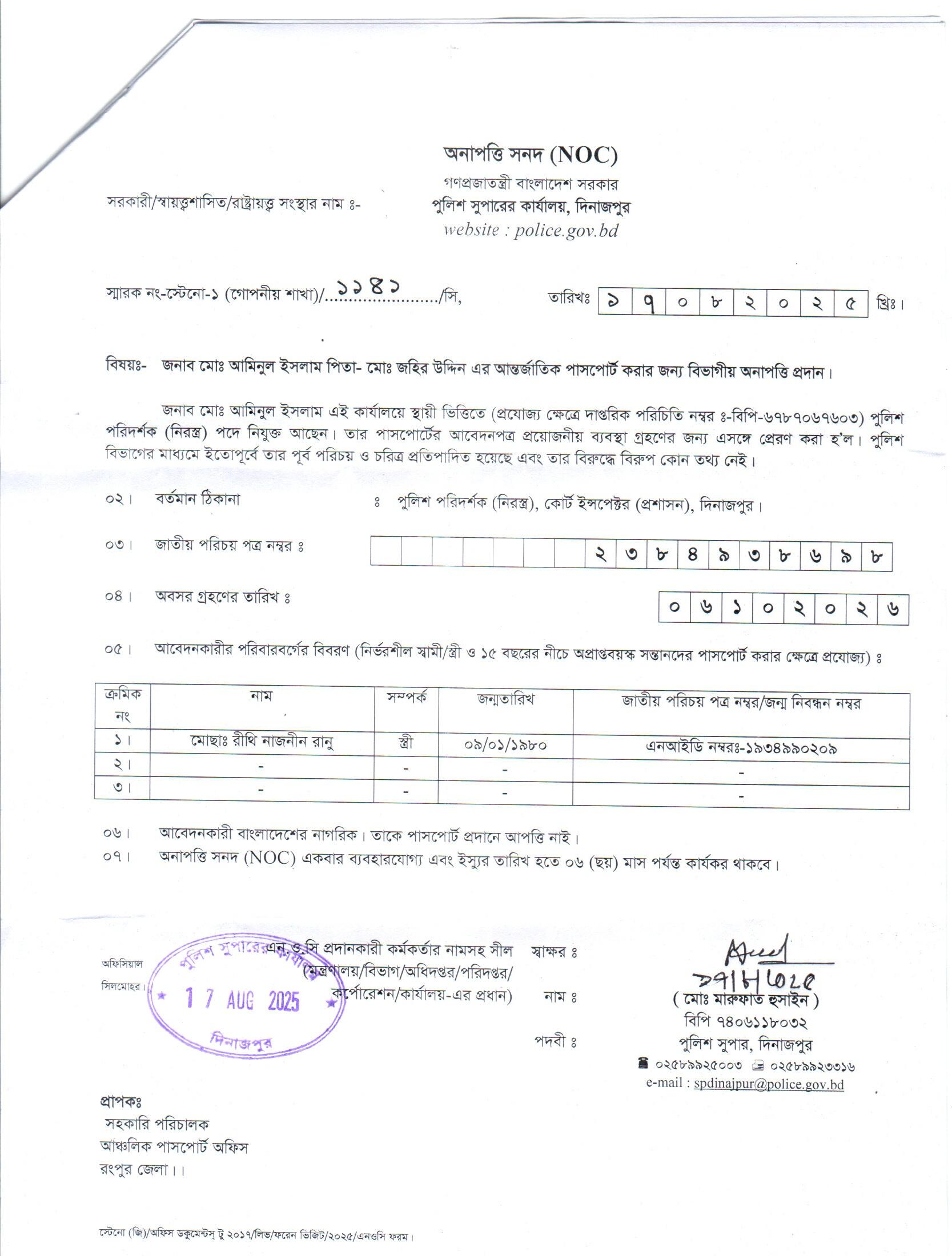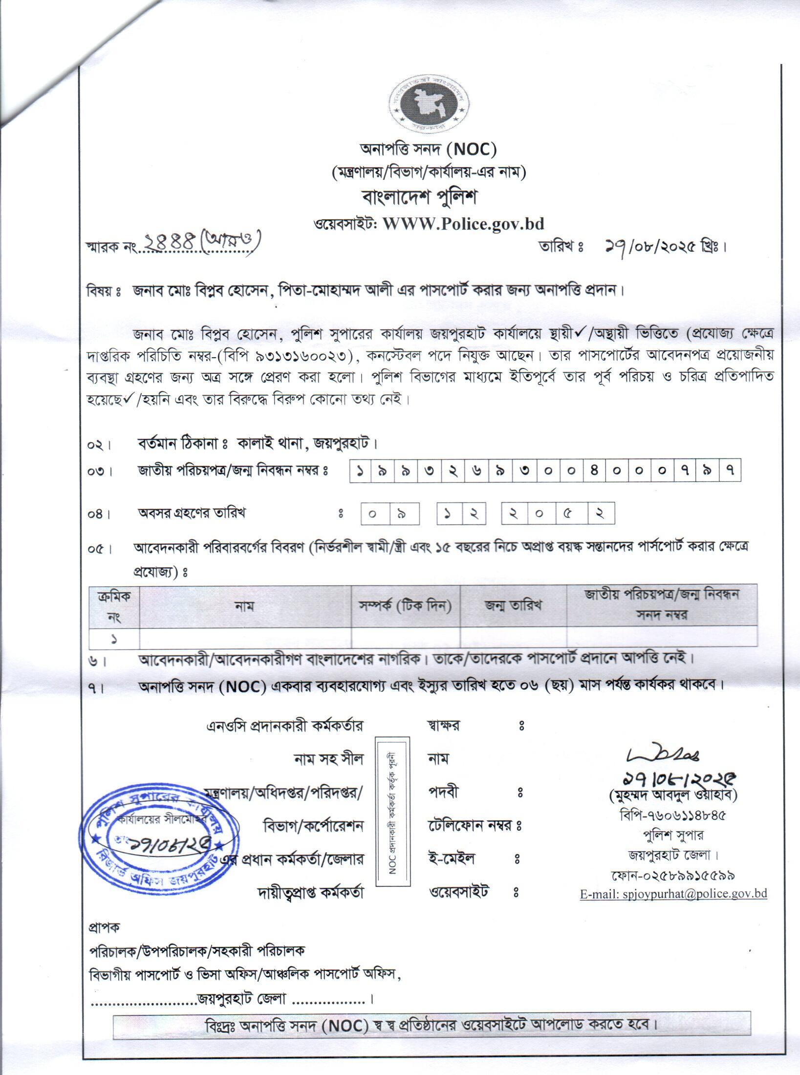 | 153 | মোঃ আবুল হাশেম, ASI | Chapainawabganj | 21-08-2025 | View | Download |