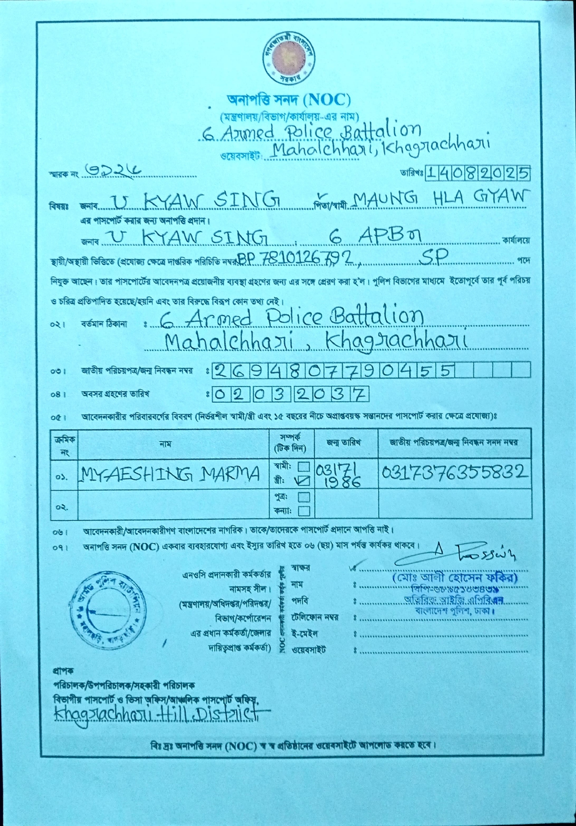 | 173 | U KYAW SING, SP | APBn-6 | 14-08-2025 | View | Download |
