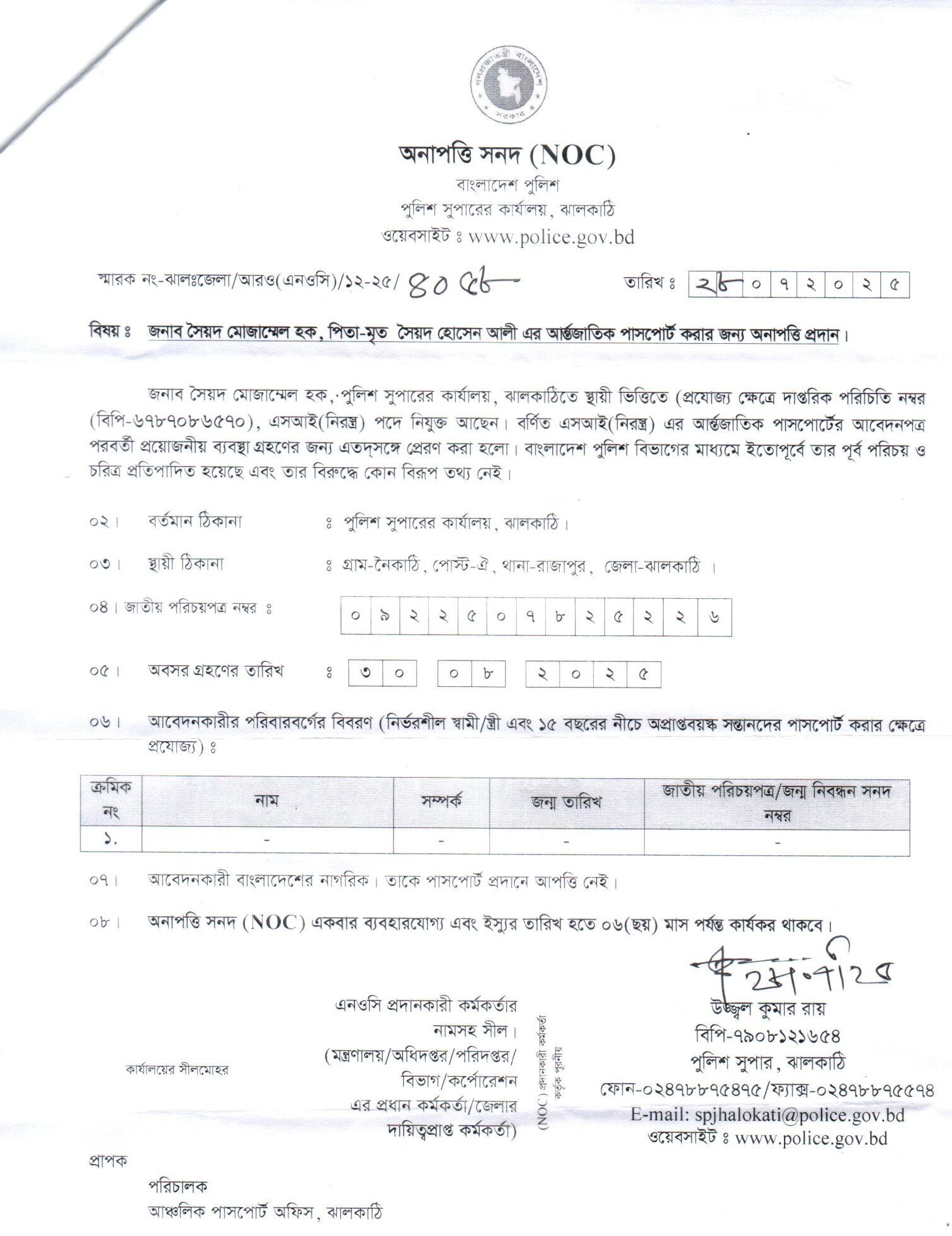 | 189 | সৈয়দ মোজাম্মেল হক, SI | Jhalakathi | 06-08-2025 | View | Download |