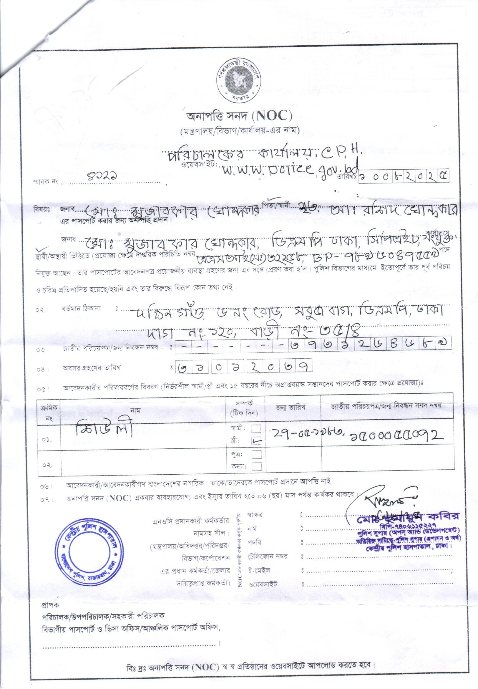 | 157 | মোঃ মুজাবফার খোন্দকার, ASI | CPH, Dhaka. | 21-08-2025 | View | Download |