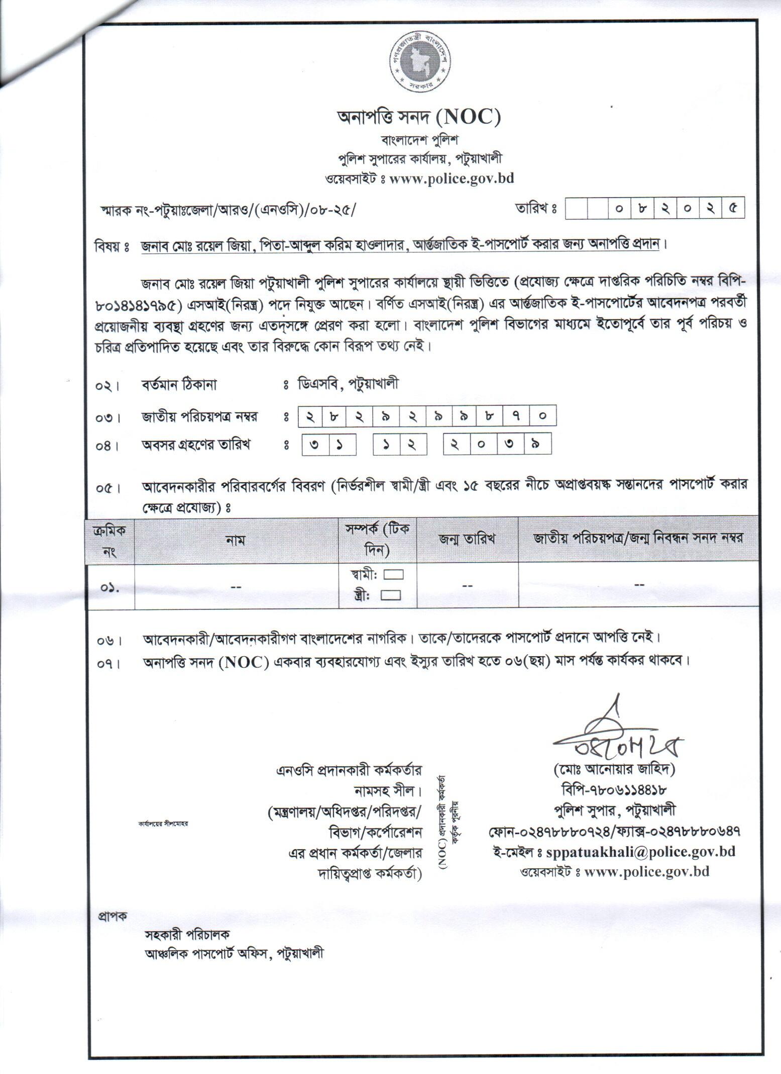 | 184 | মোঃ রয়েল জিয়া, SI | Patuakhali | 07-08-2025 | View | Download |
