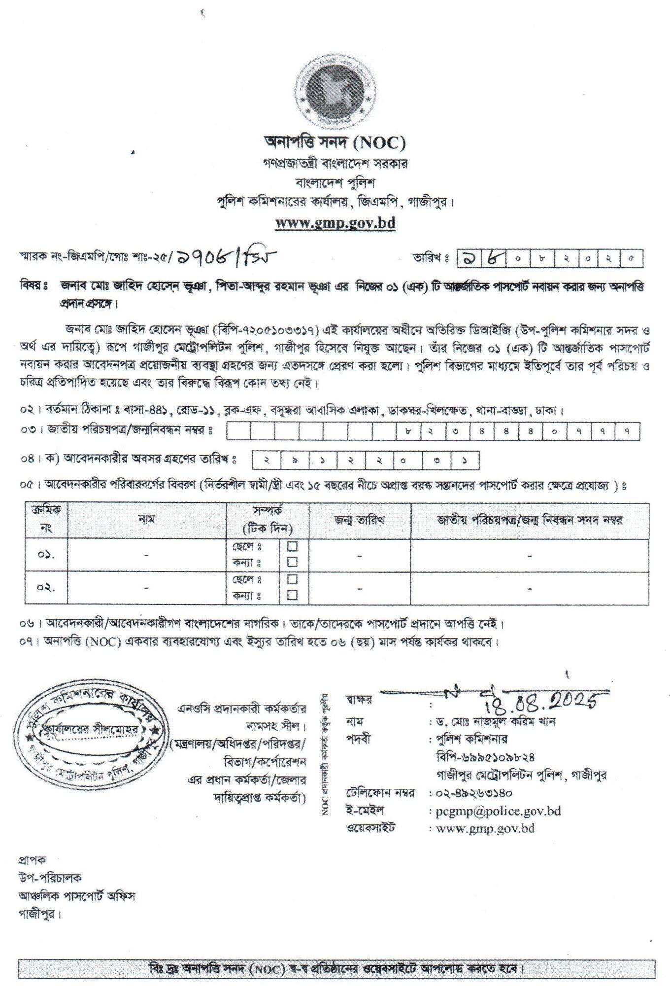 | 151 | মোঃ সজল হক, SI | GMP, Gazipur | 21-08-2025 | View | Download |