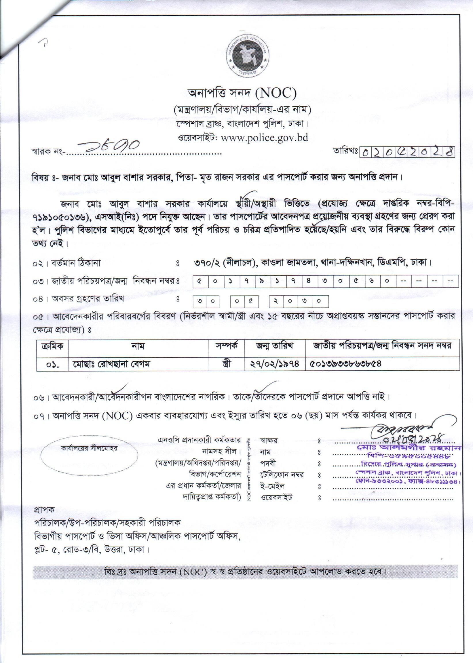 | 2026 | তাসলিমা বেগম, SI | SB, Dhaka | 08-05-2024 | View | Download |