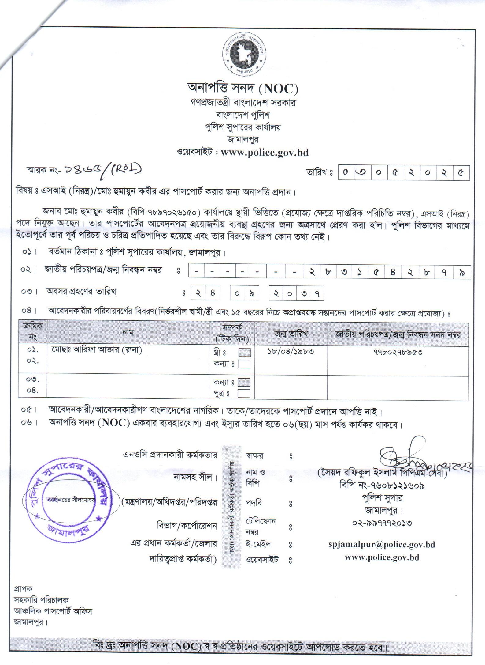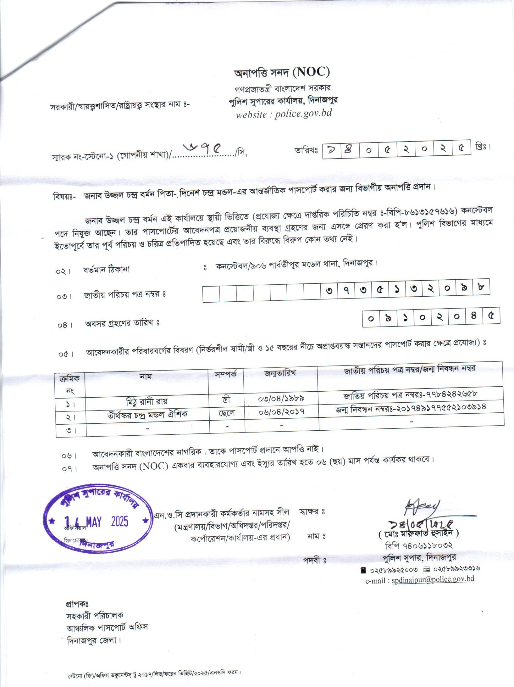| 41 | আরিফুল ইসলাম, SI | Dinajpur | 30-11-2025 | View | Download |