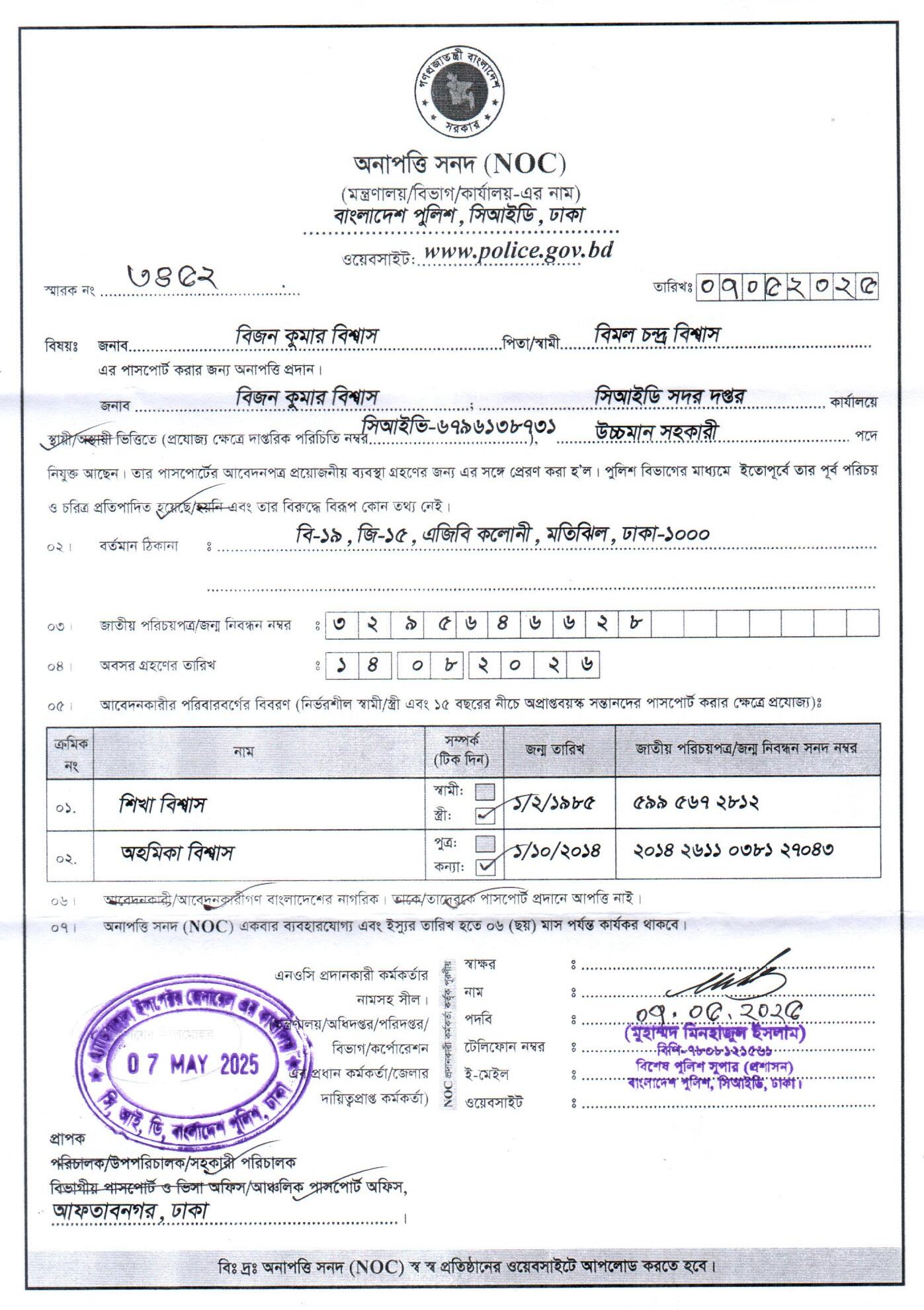 | 35 | সময় প্রিয় চাকমা, ATSI | Dhaka. | 30-11-2025 | View | Download |