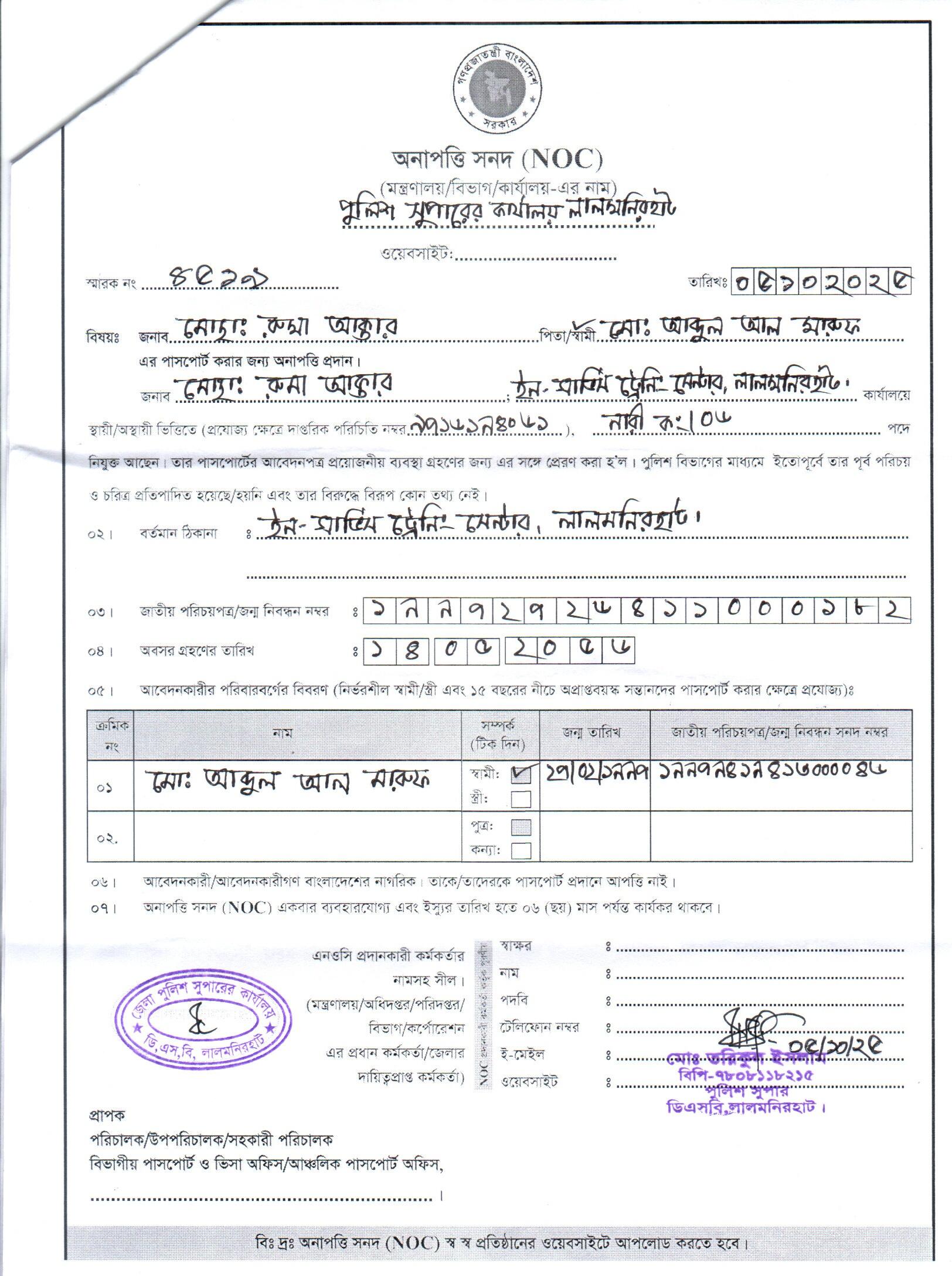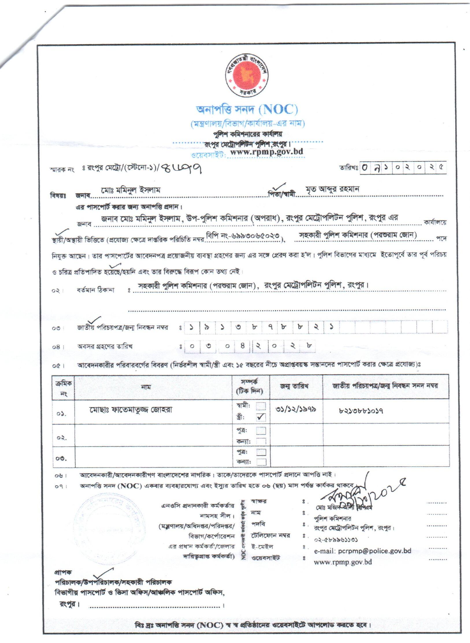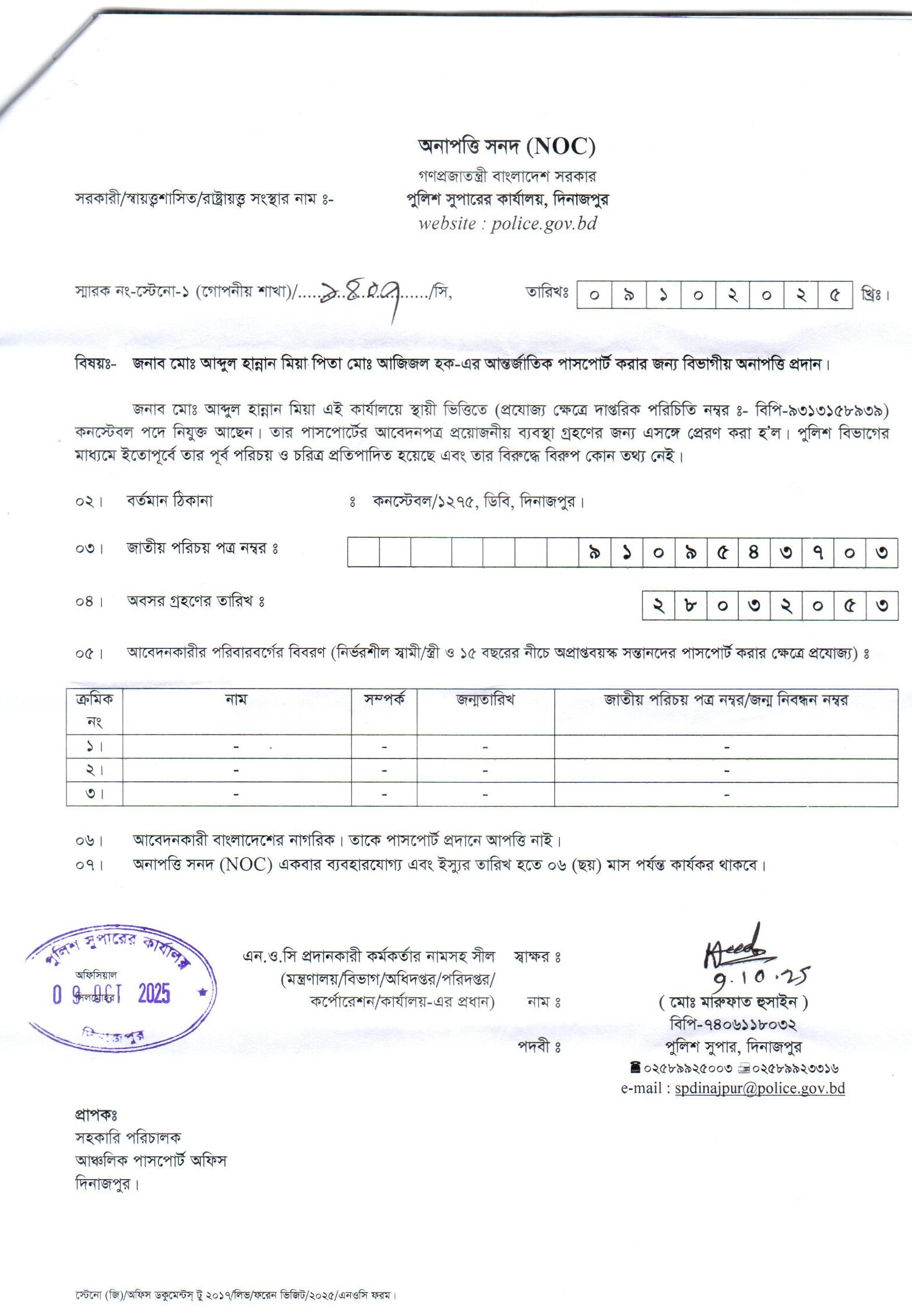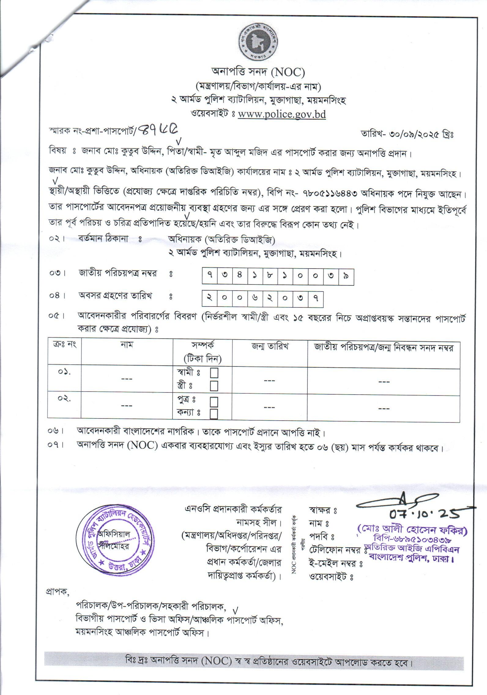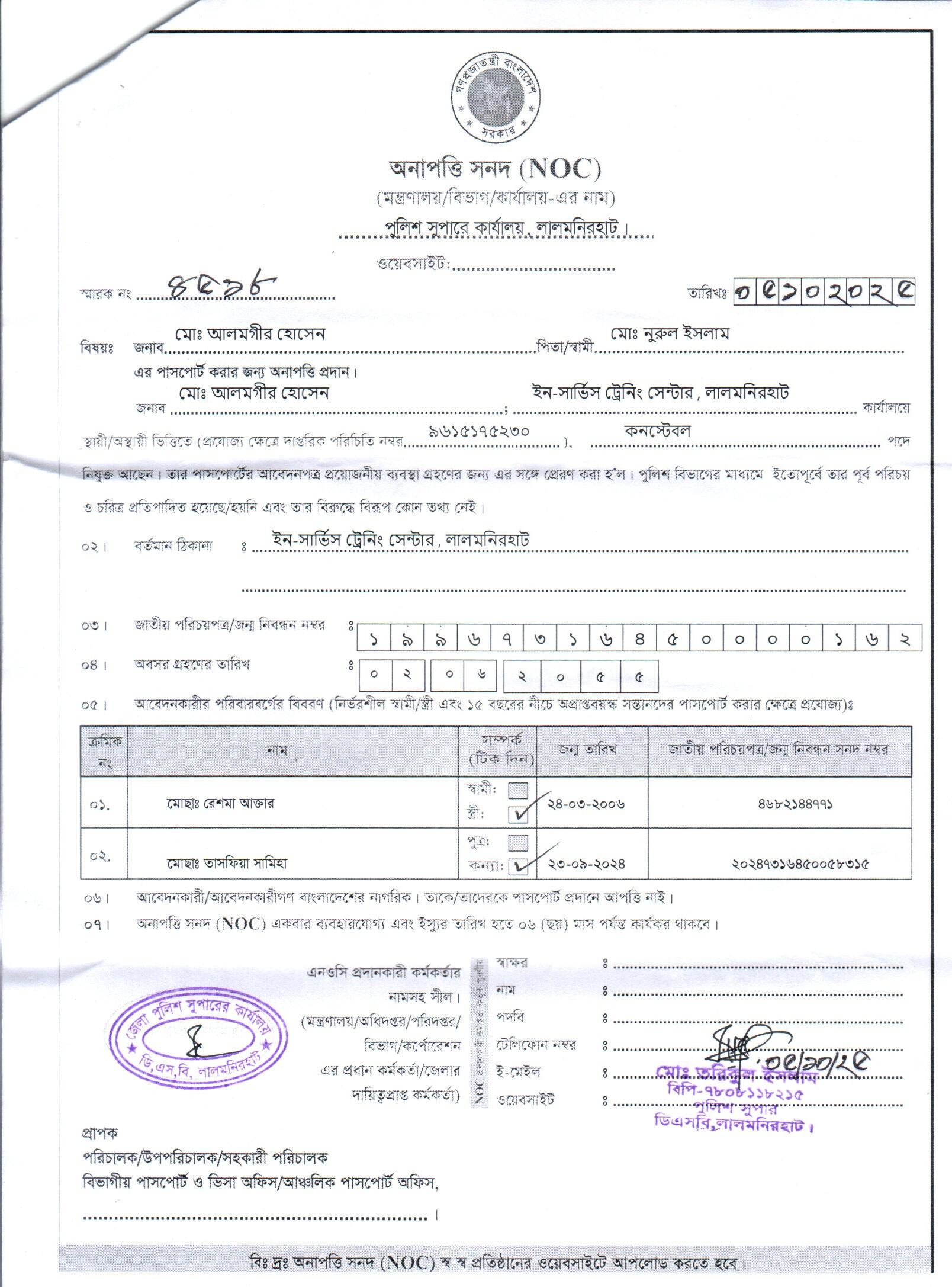 | 140 | মোঃ আলমগীর হোসেন, Cons | Lalmonirhat | 08-10-2025 | View | Download |