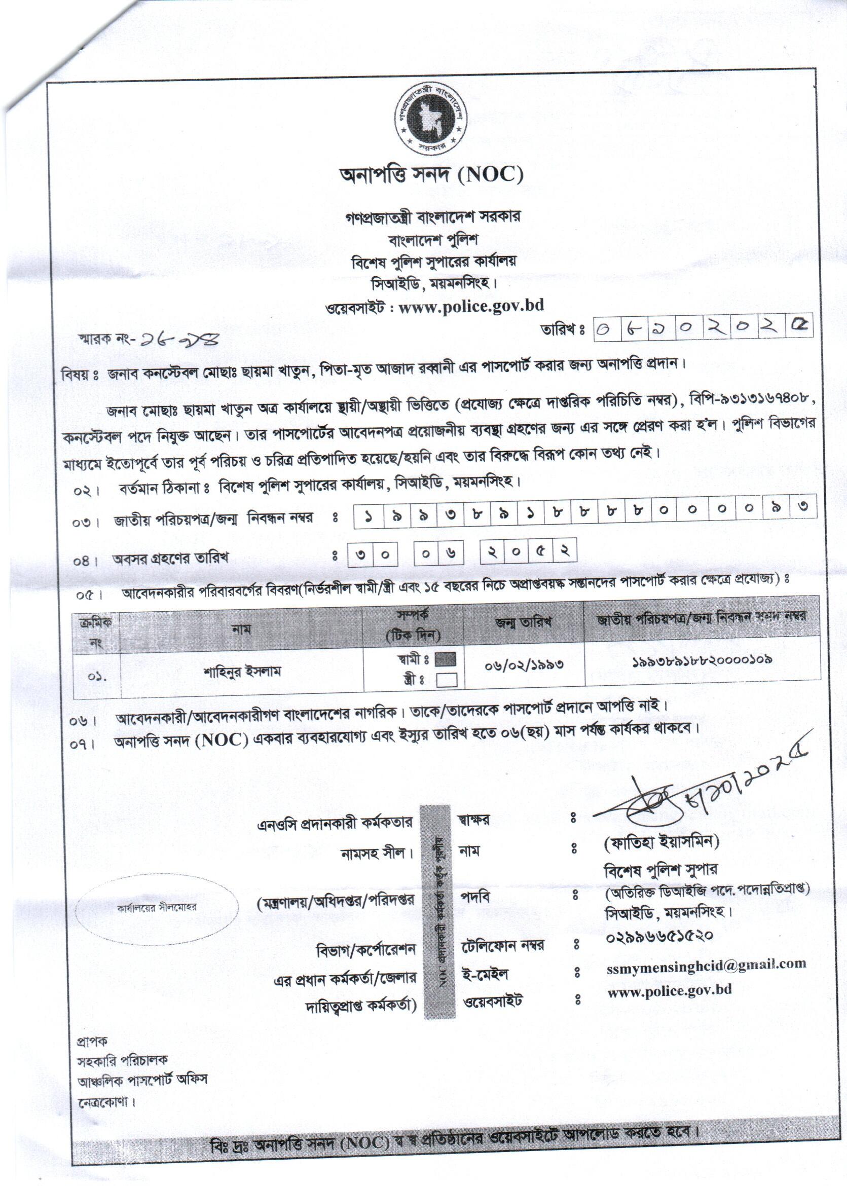 | 138 | মোঃ আশরাফুল আলম টিপু, SI | Jamalpur. | 08-10-2025 | View | Download |