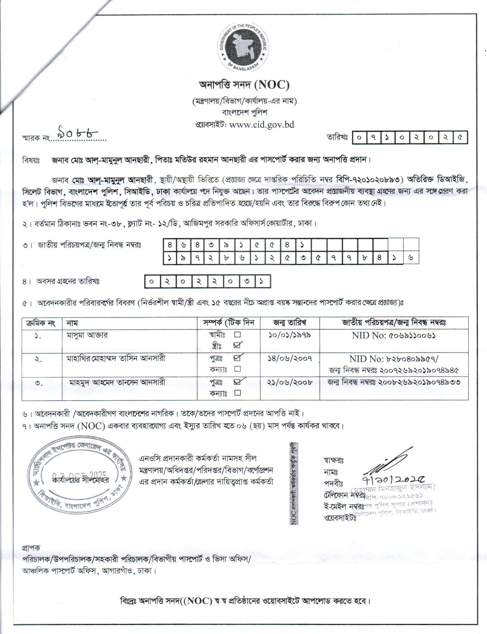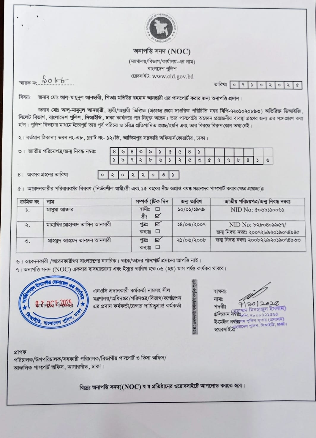 | 136 | মোঃ আল্-মামুনুল আনছারী, Addl DIG | CID, DHAKA | 08-10-2025 | View | Download |