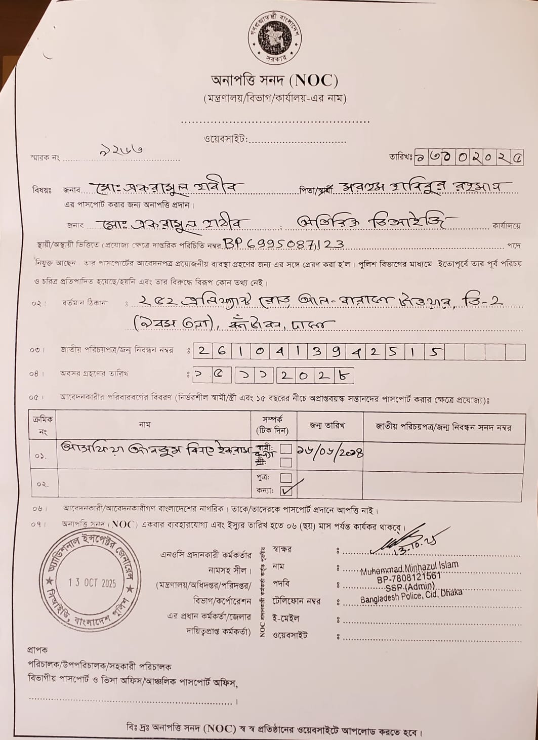 | 126 | মোঃ শহিদুল ইসলাম, ASI | Dhaka. | 12-10-2025 | View | Download |