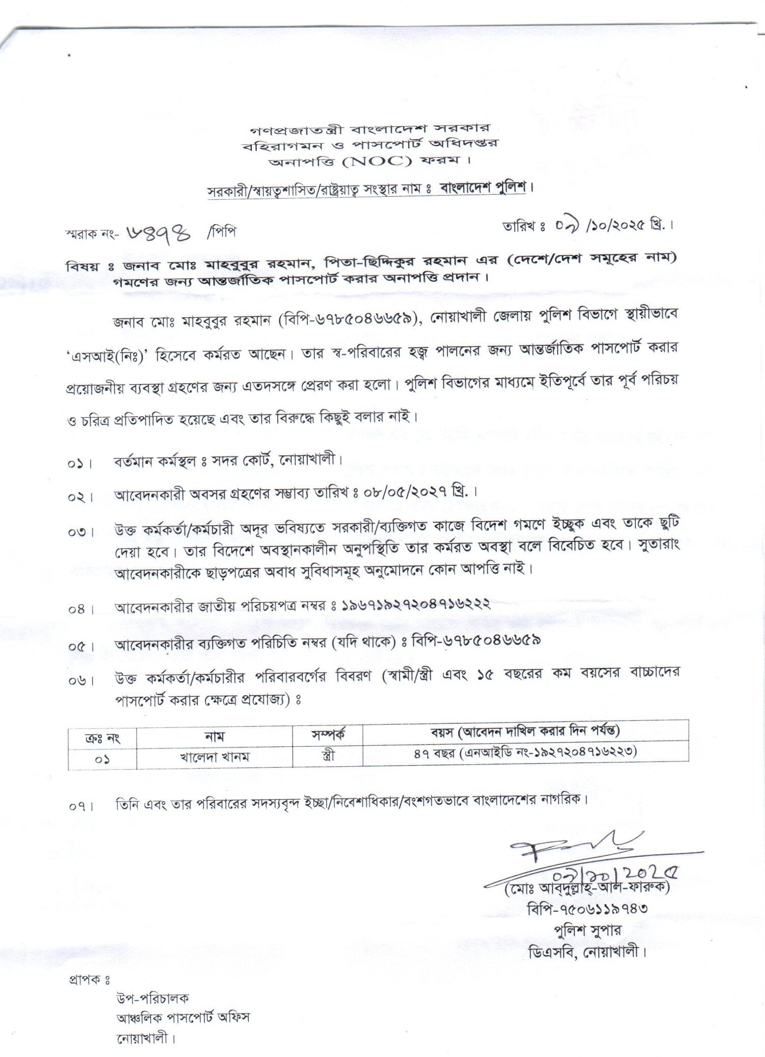 | 121 | মোঃ মাহবুবুর রহমান, SI | Noakhali | 13-10-2025 | View | Download |