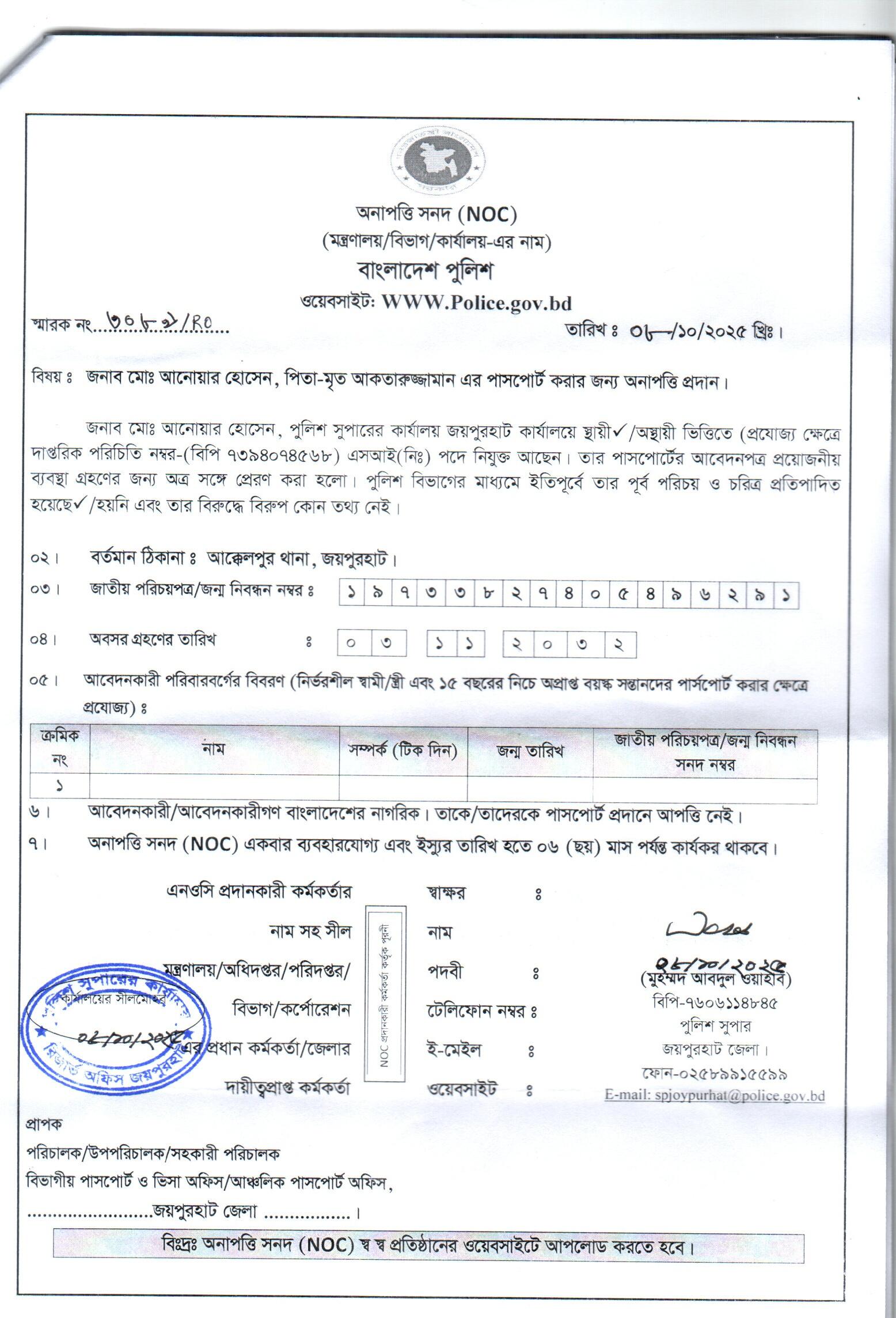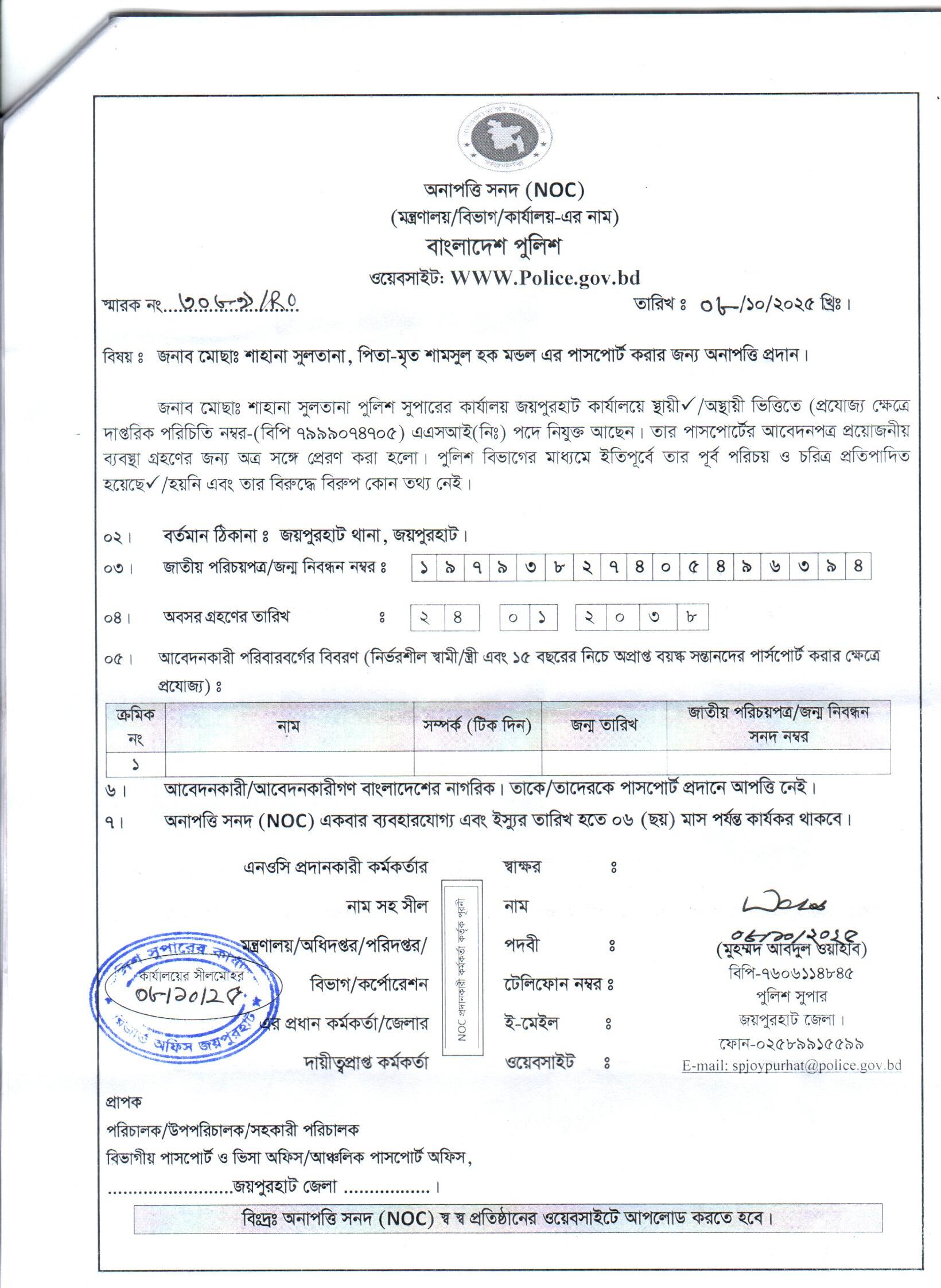 | 120 | মোঃ আনোয়ার হোসেন, SI | Joypurhat | 13-10-2025 | View | Download |