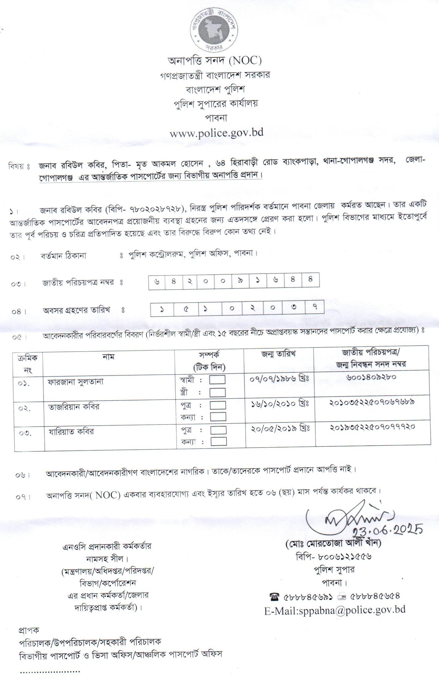 | 159 | রবিউল কবির, Insp | Pabna | 29-06-2025 | View | Download |