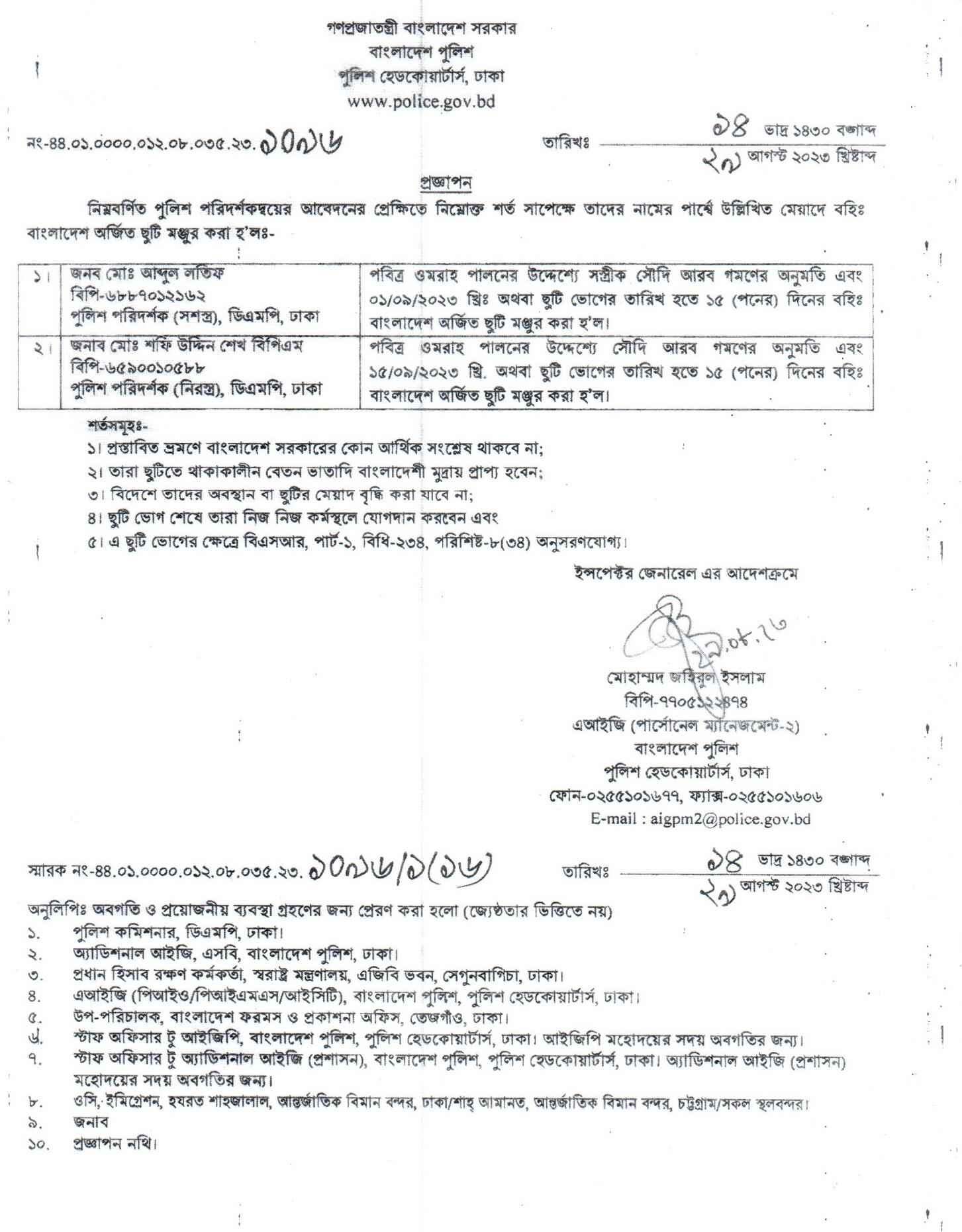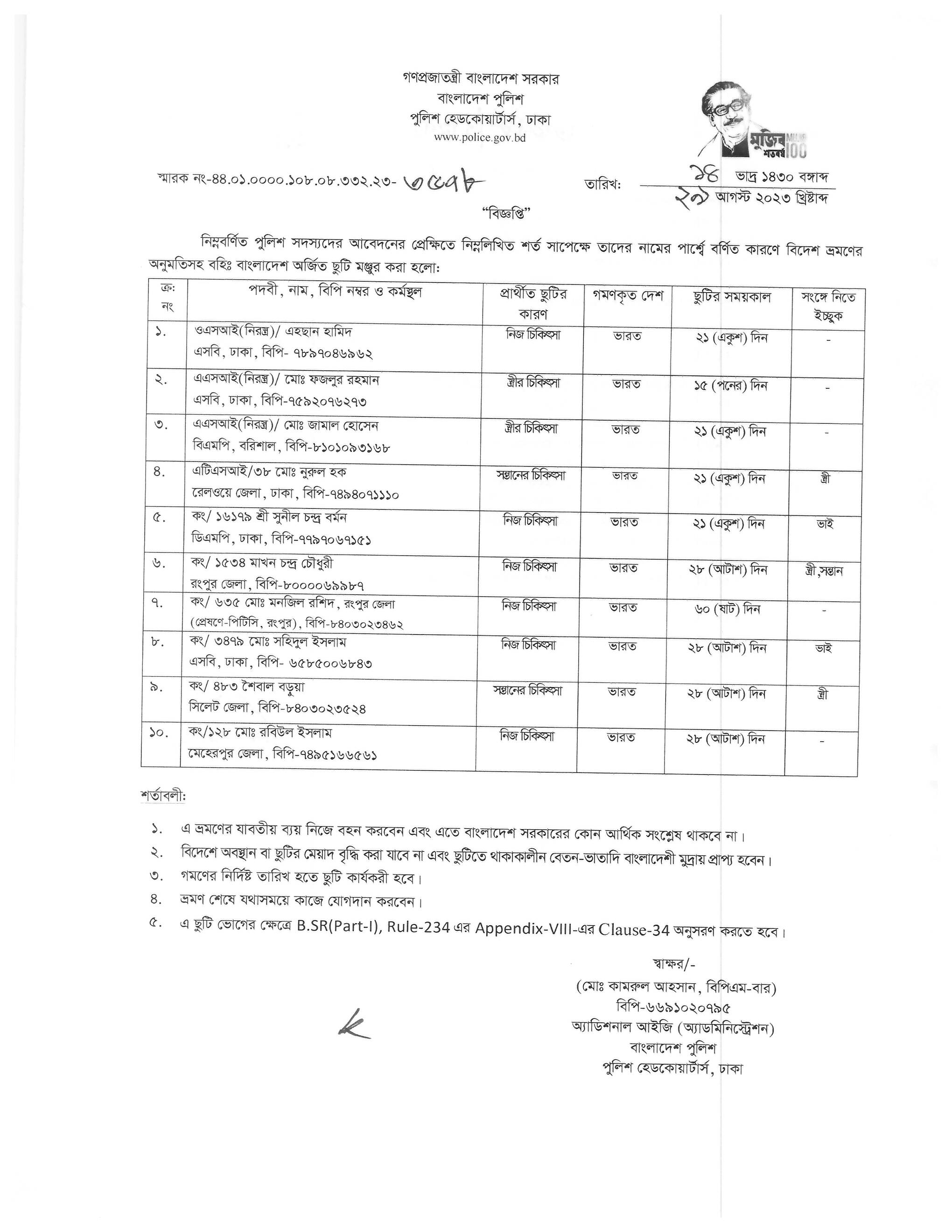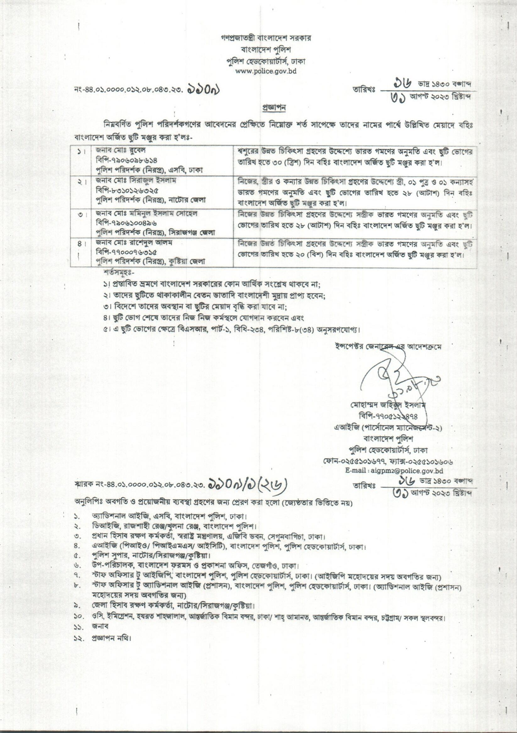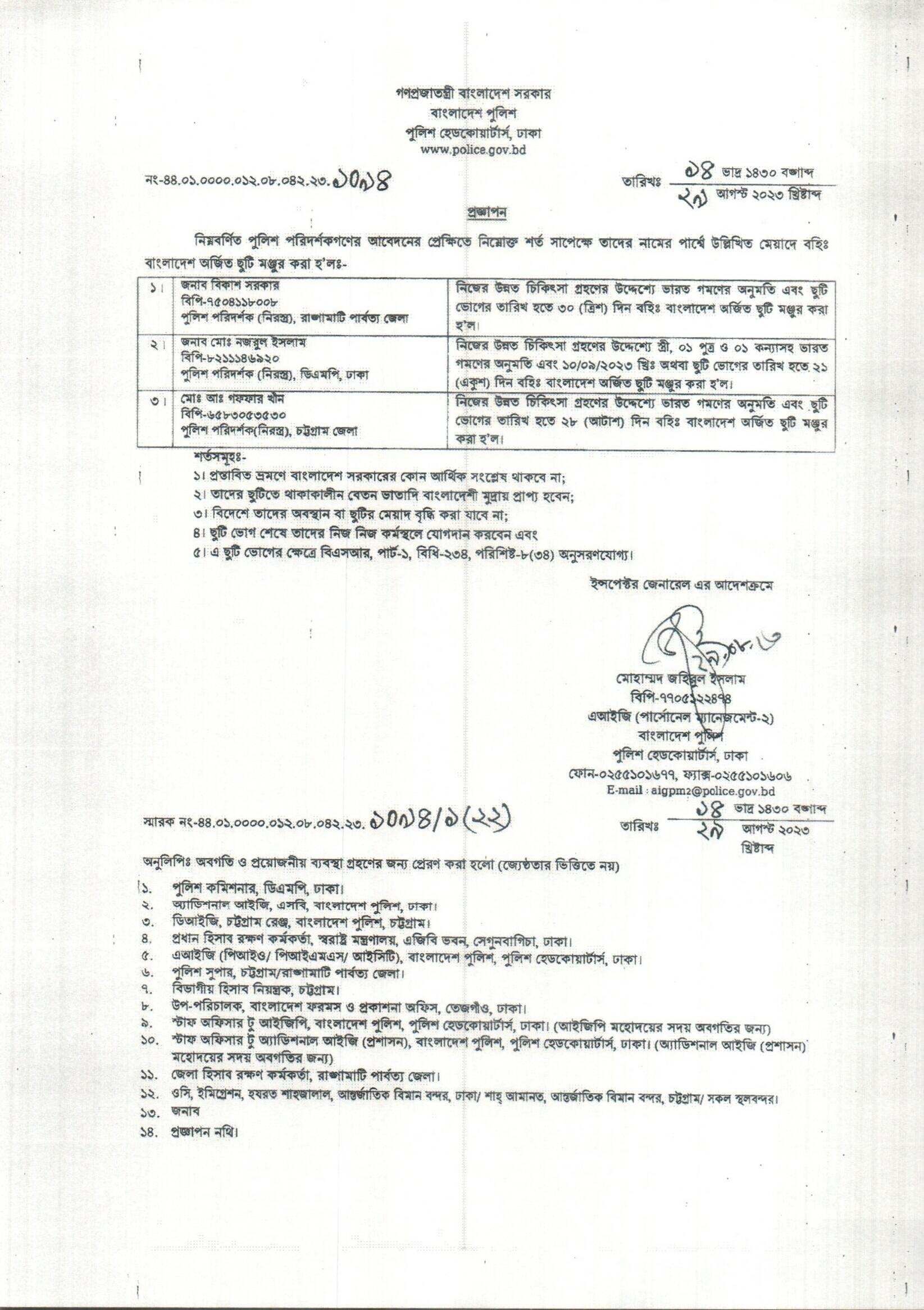 বহিঃ বাংলাদেশ ছুটি, বিজ্ঞপ্তি নং-৩৫২৫, তারিখঃ ২৪/০৮/২০২৩ খ্রিঃ।