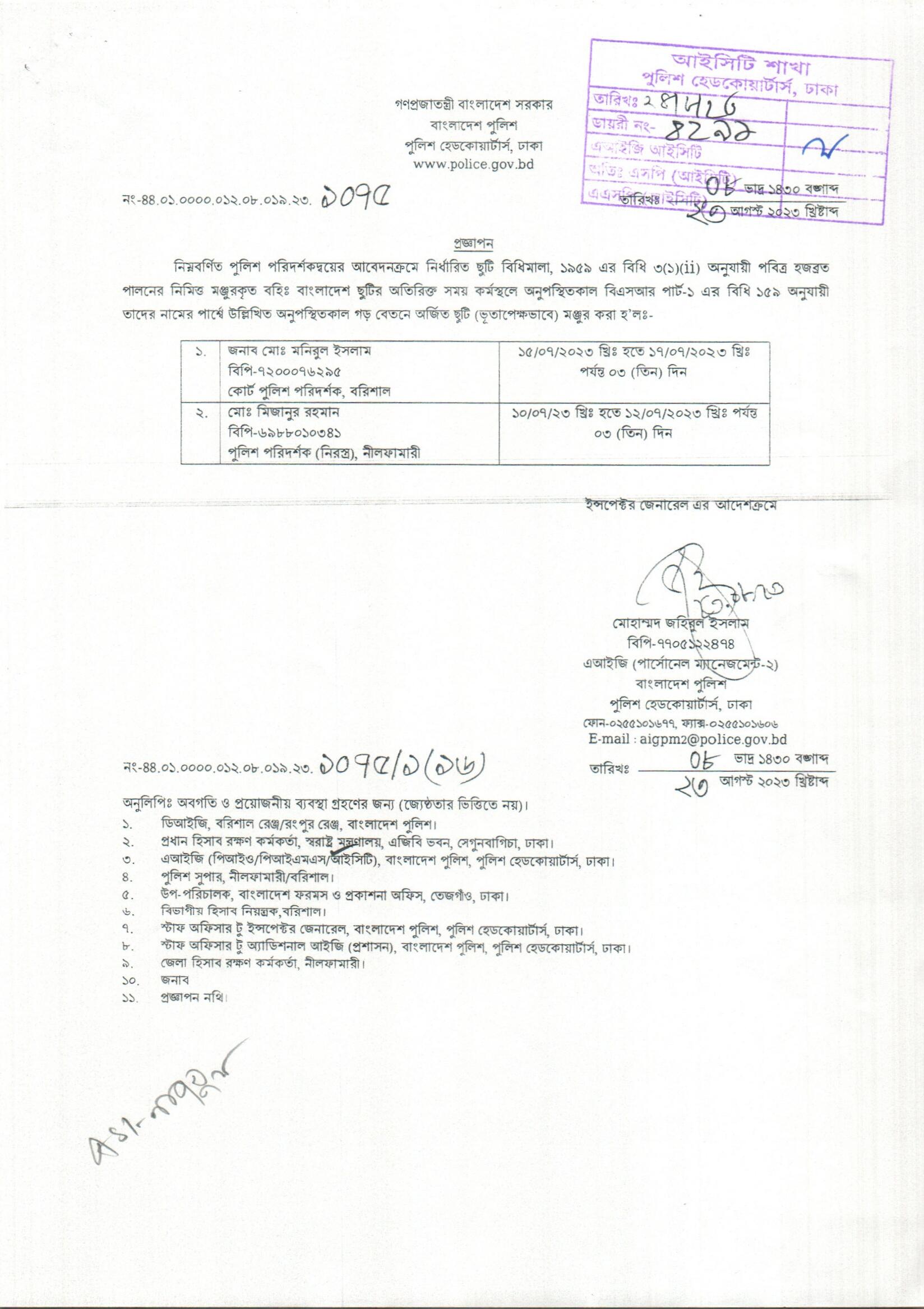 বহিঃ বাংলাদেশ ছুটি, বিজ্ঞপ্তি নং-৩৪৪৬, তারিখঃ ২০/০৮/২০২৩ খ্রিঃ।