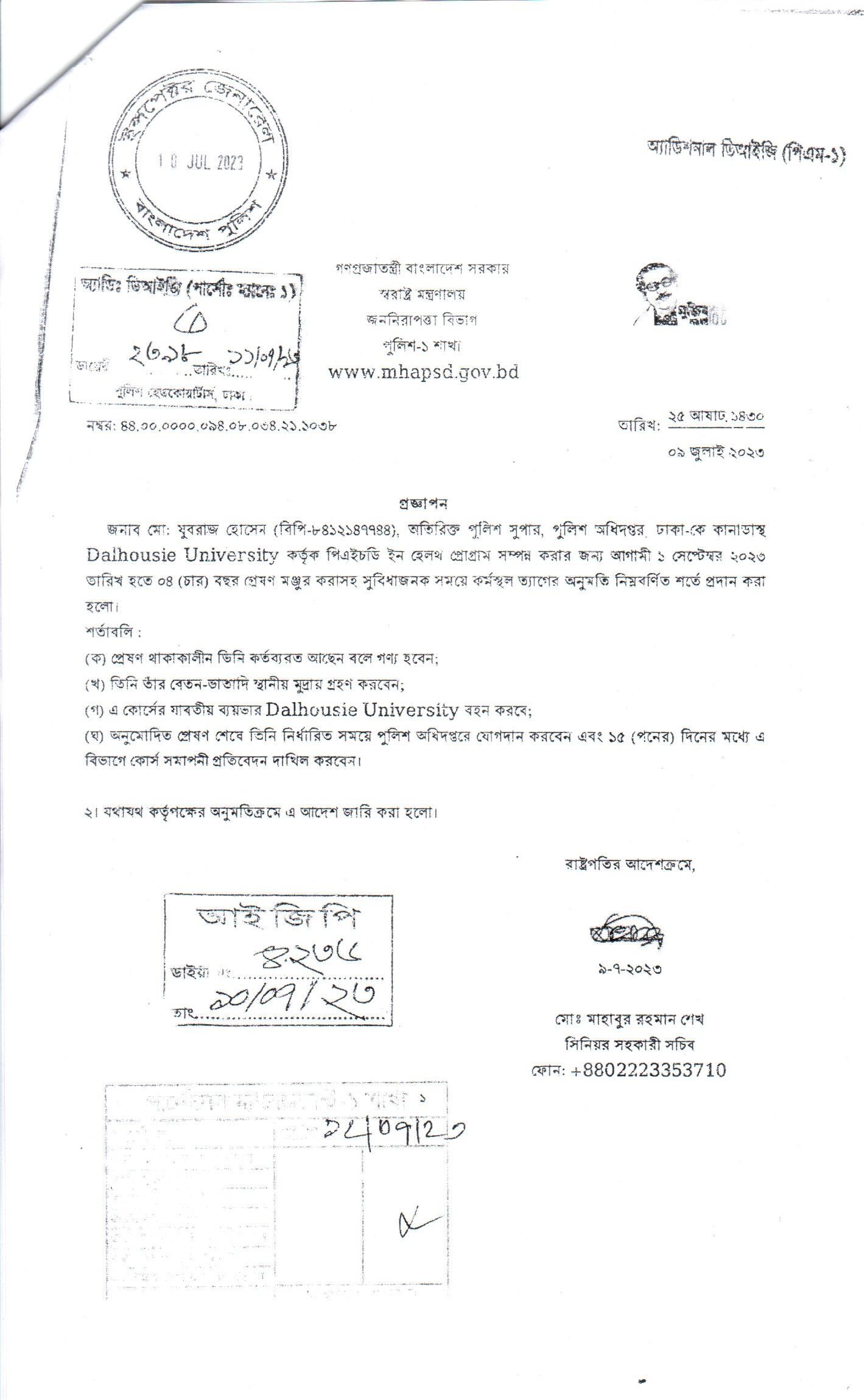 বহিঃ বাংলাদেশ ছুটি, বিজ্ঞপ্তি নং-৩৪৪৯, তারিখঃ ২০/০৮/২০২৩ খ্রিঃ।
