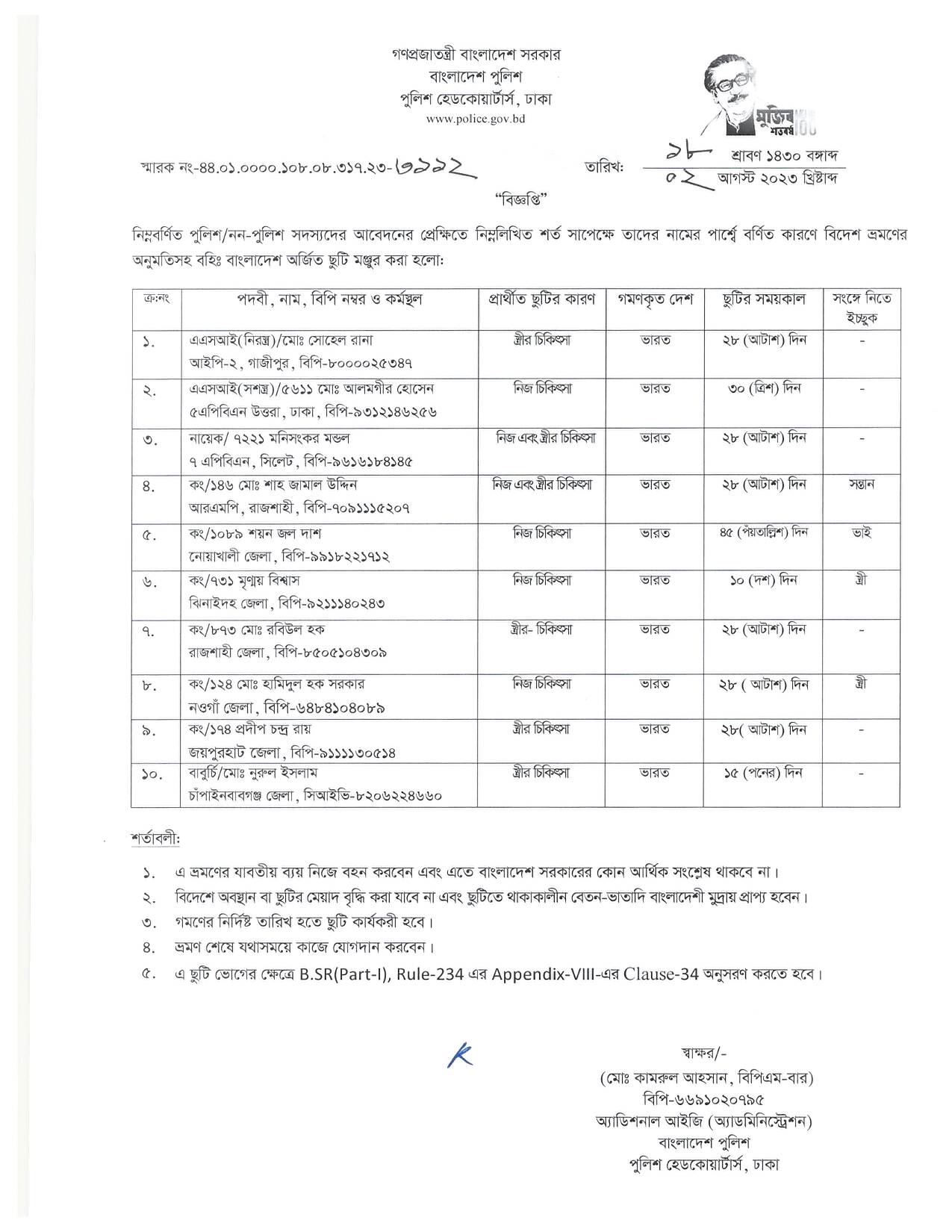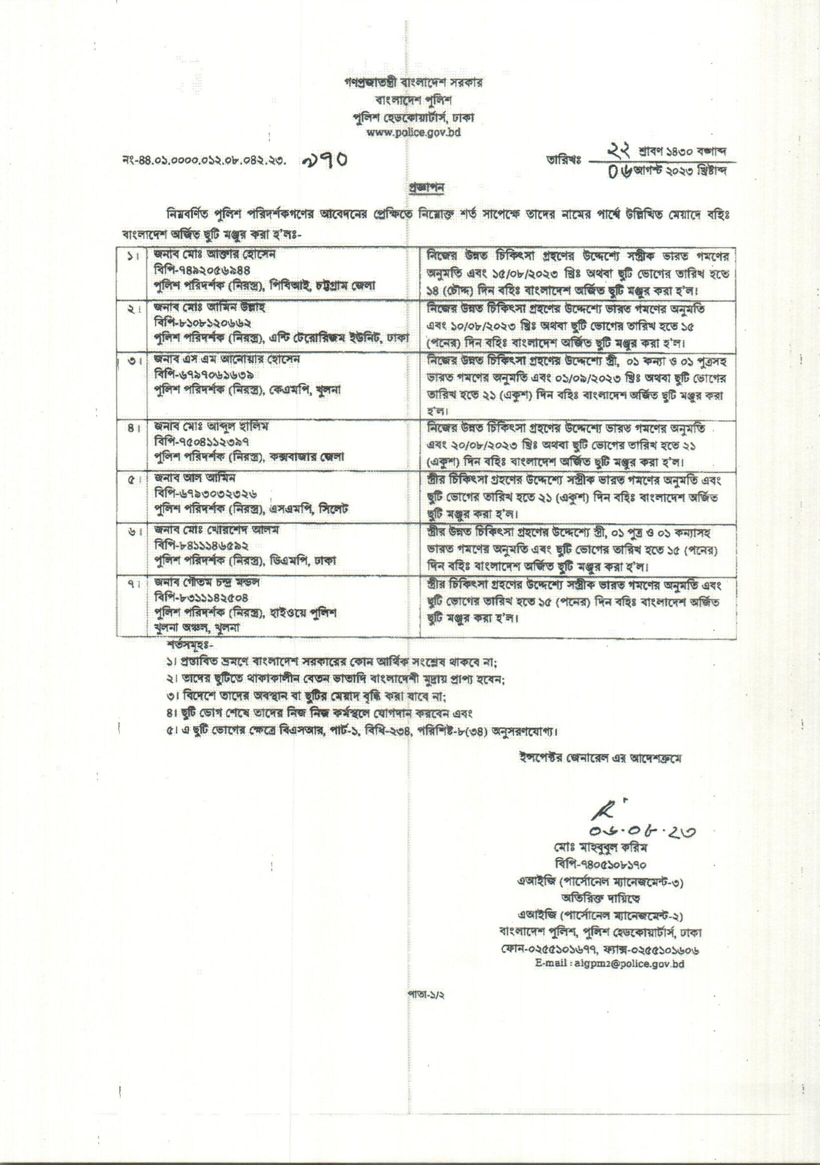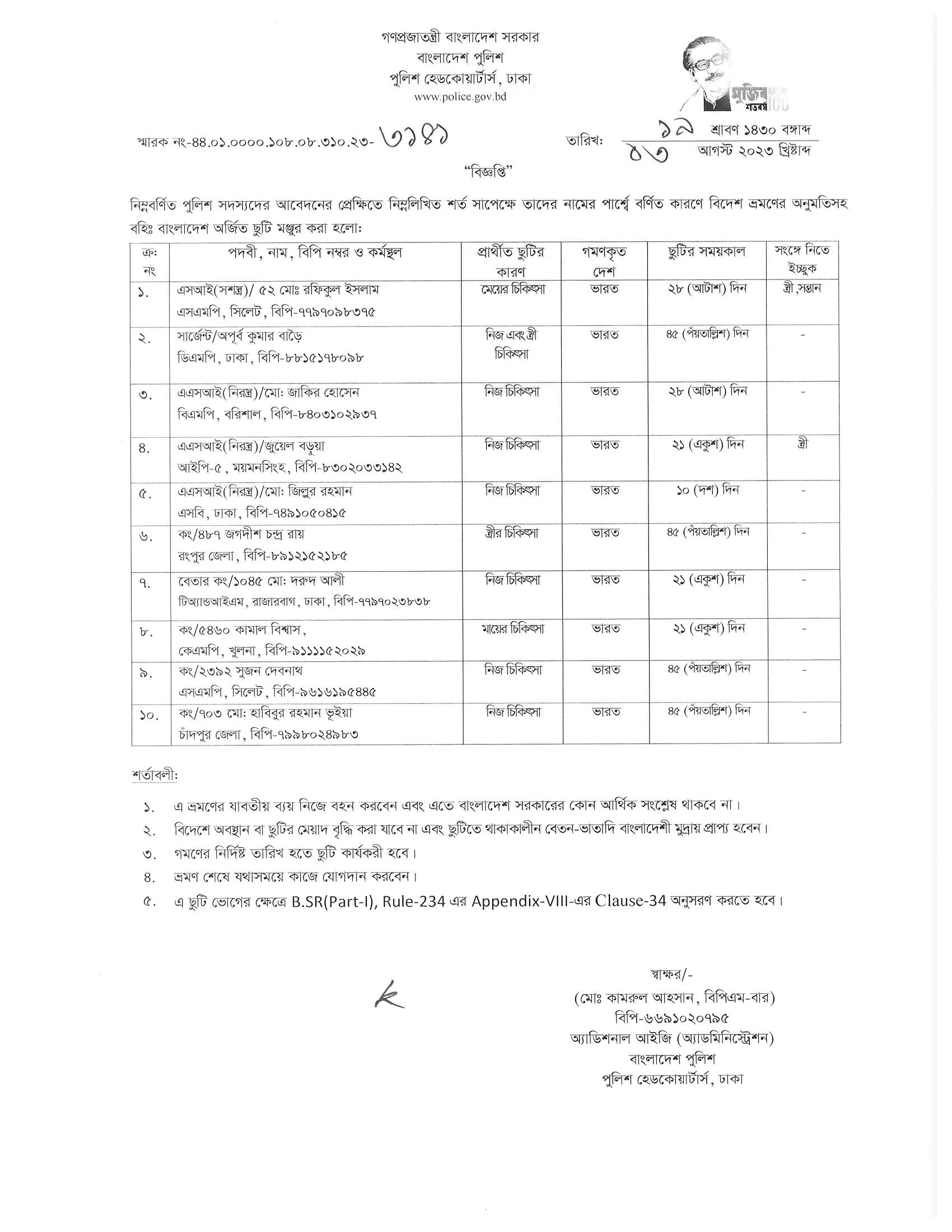 বহিঃ বাংলাদেশ ছুটি, প্রজ্ঞাপন নং- ৯৬৭, তারিখঃ ০৬/০৮/২০২৩ খ্রিঃ।