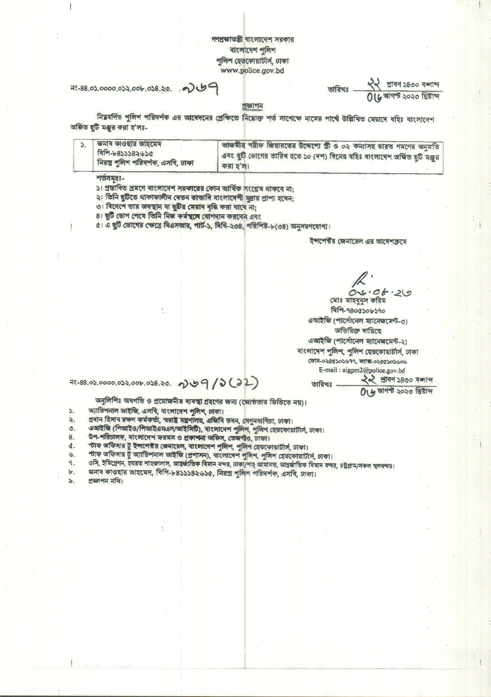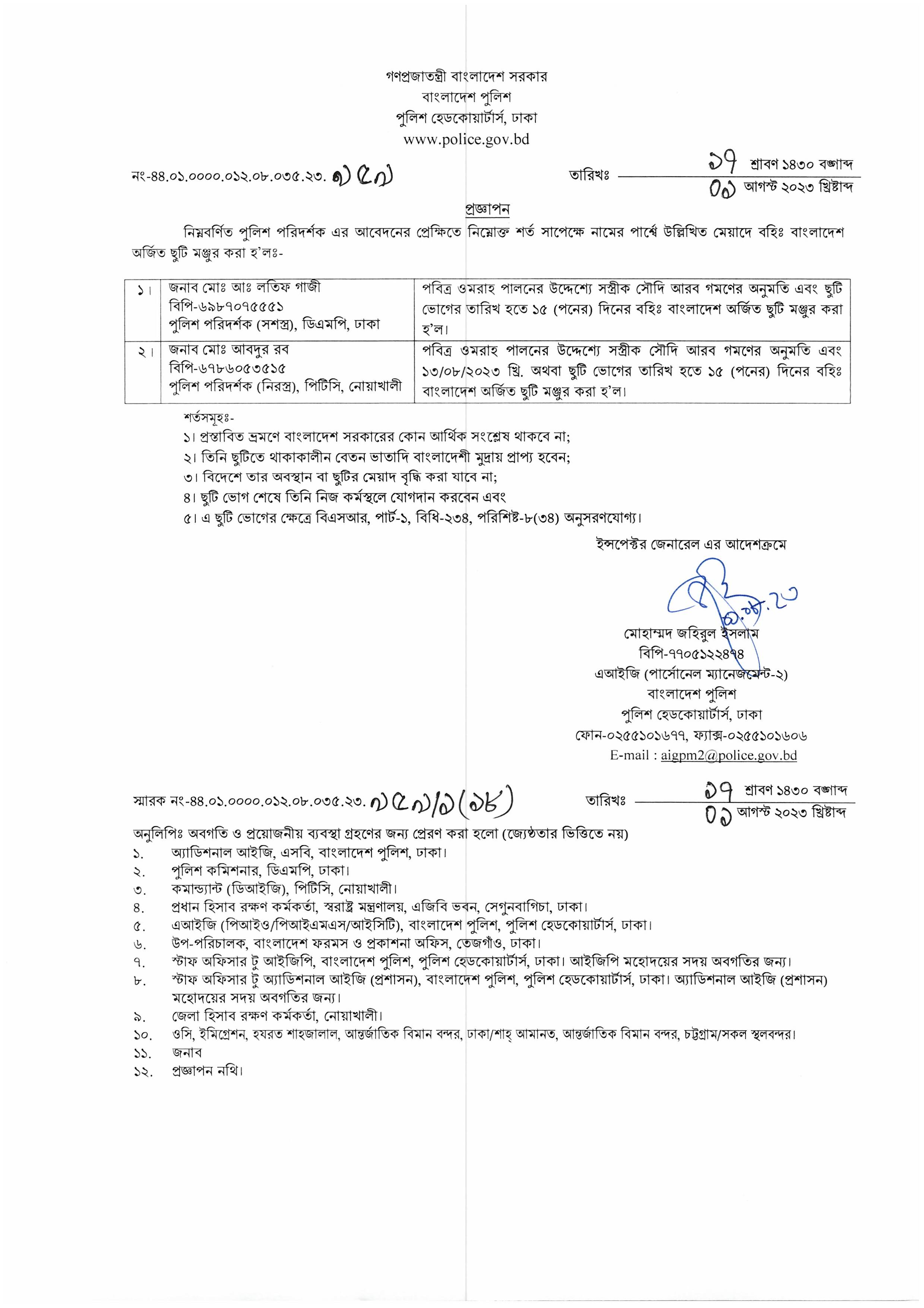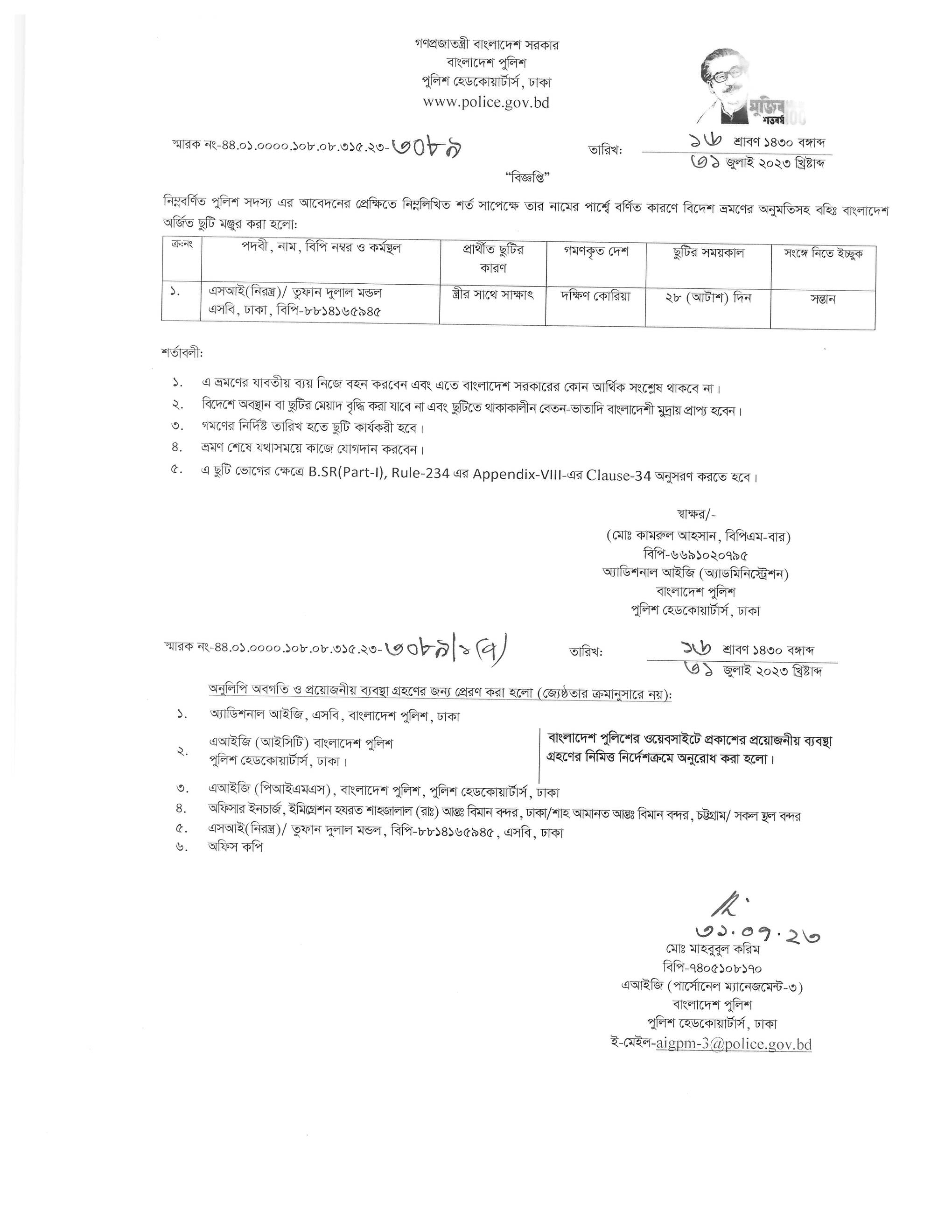 বহিঃ বাংলাদেশ ছুটি, বিজ্ঞপ্তি নং-৩০৬৮, তারিখঃ ৩০/০৭/২০২৩ খ্রিঃ।