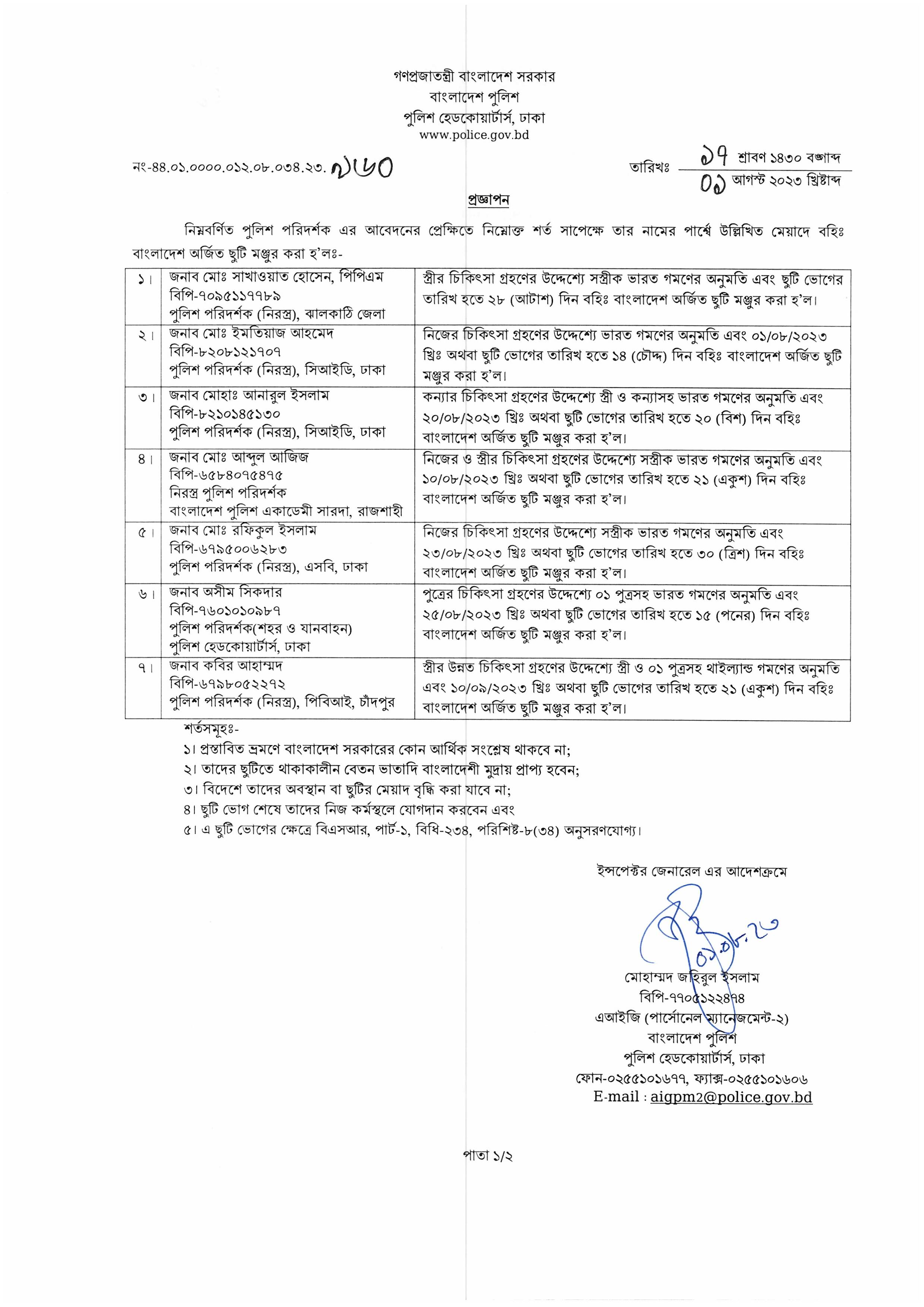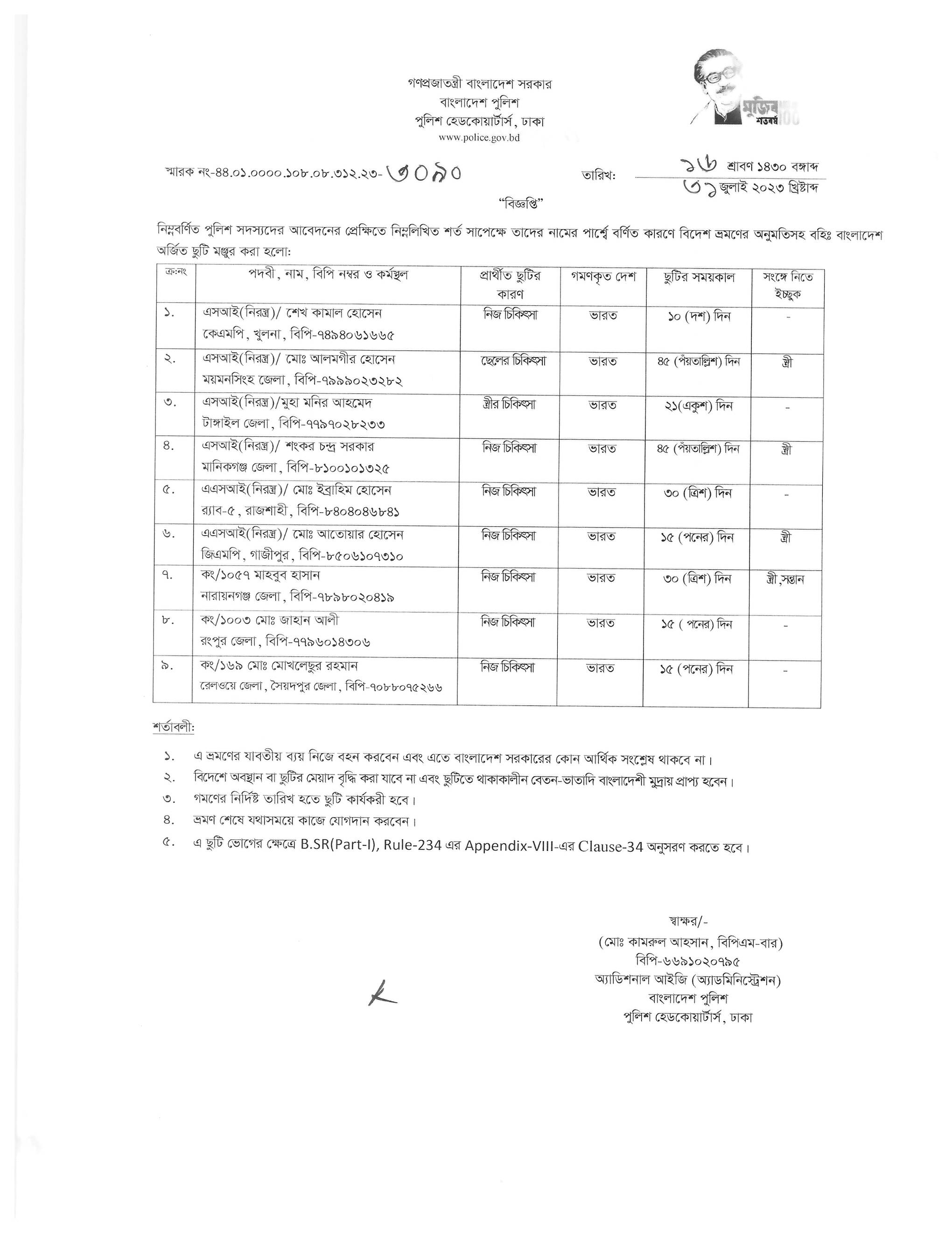 বহিঃ বাংলাদেশ ছুটি, প্রজ্ঞাপন নং- ৯৪৫, তারিখঃ ২৬/০৭/২০২৩ খ্রিঃ।