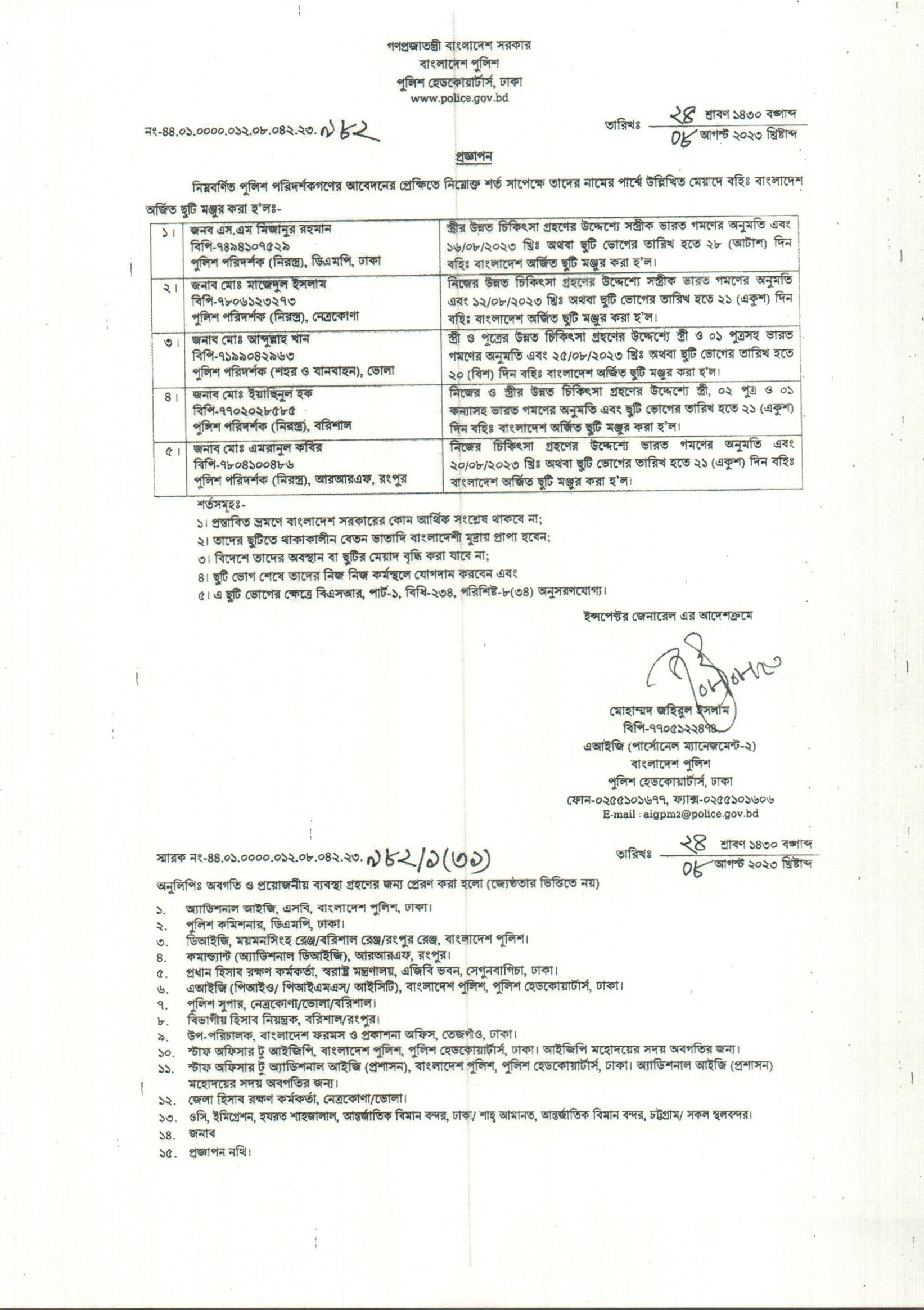 বহিঃ বাংলাদেশ ছুটি, বিজ্ঞপ্তি নং-৩১৩০, তারিখঃ ০৩/০৮/২০২৩ খ্রিঃ।