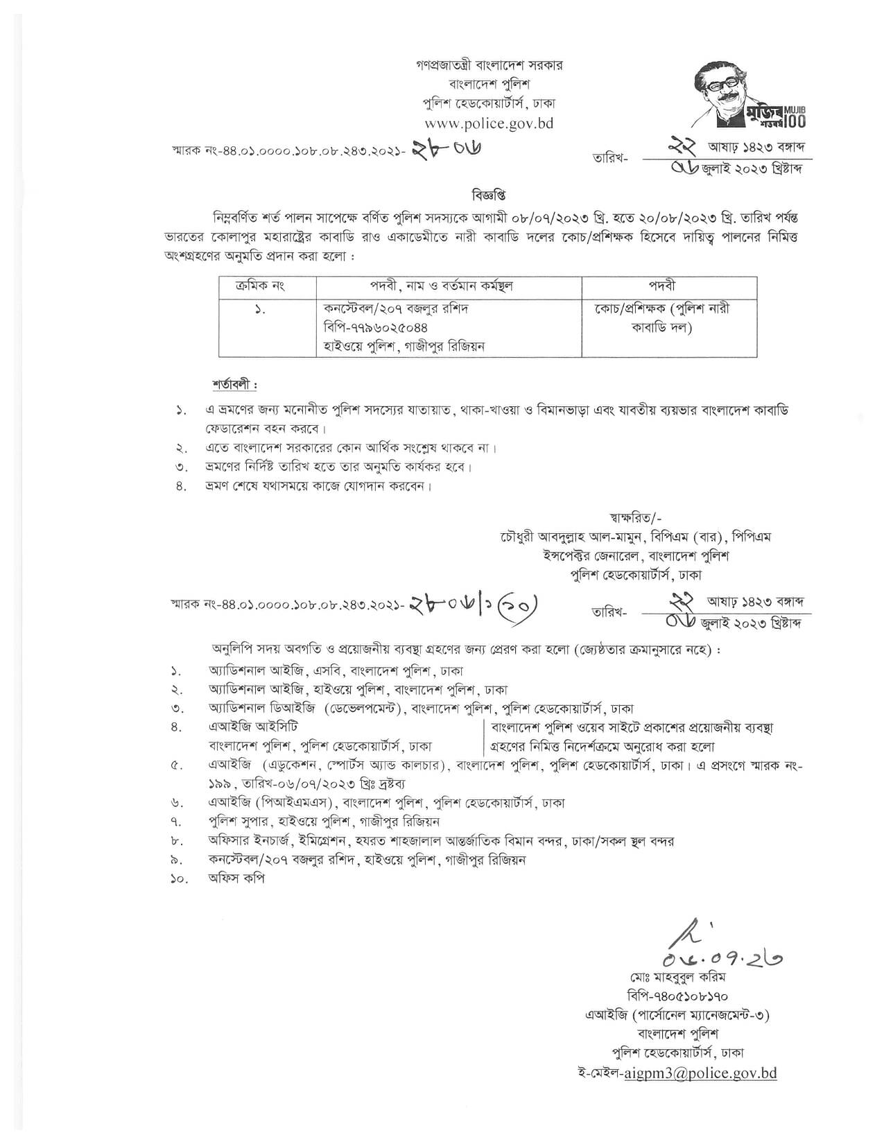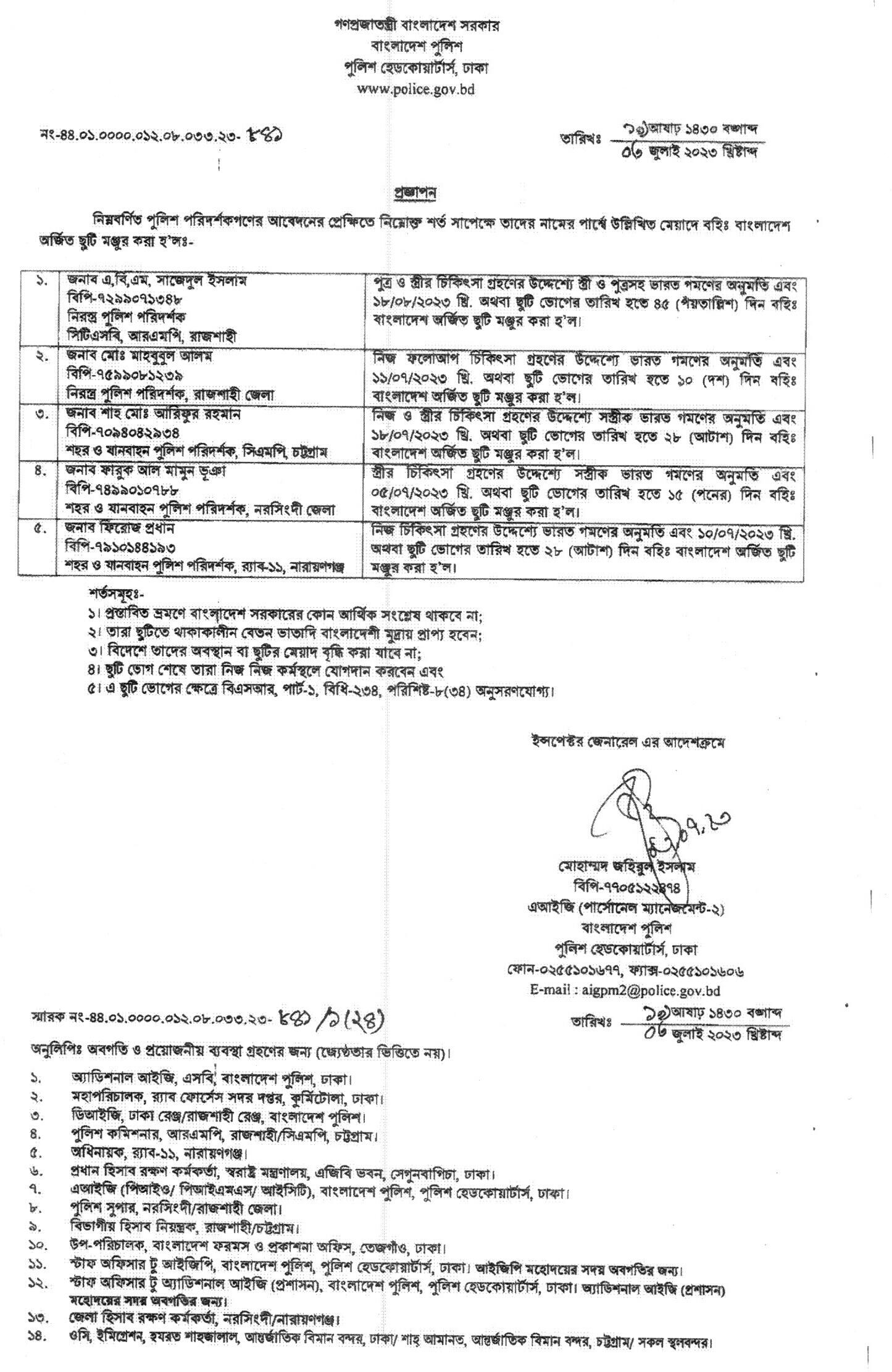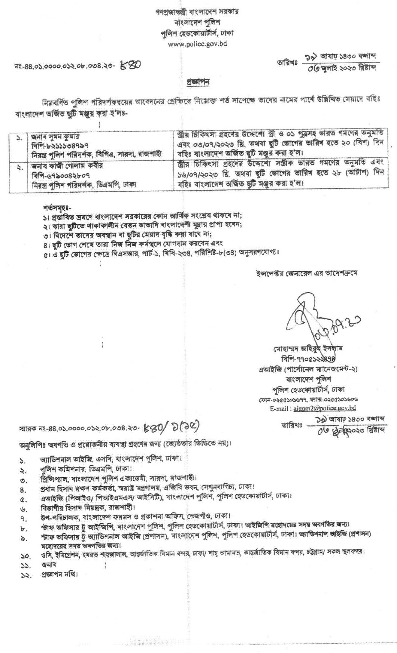 বহিঃ বাংলাদেশ ছুটি, বিজ্ঞপ্তি নং-২৮০৬, তারিখঃ ০৬/০৭/২০২৩ খ্রিঃ।