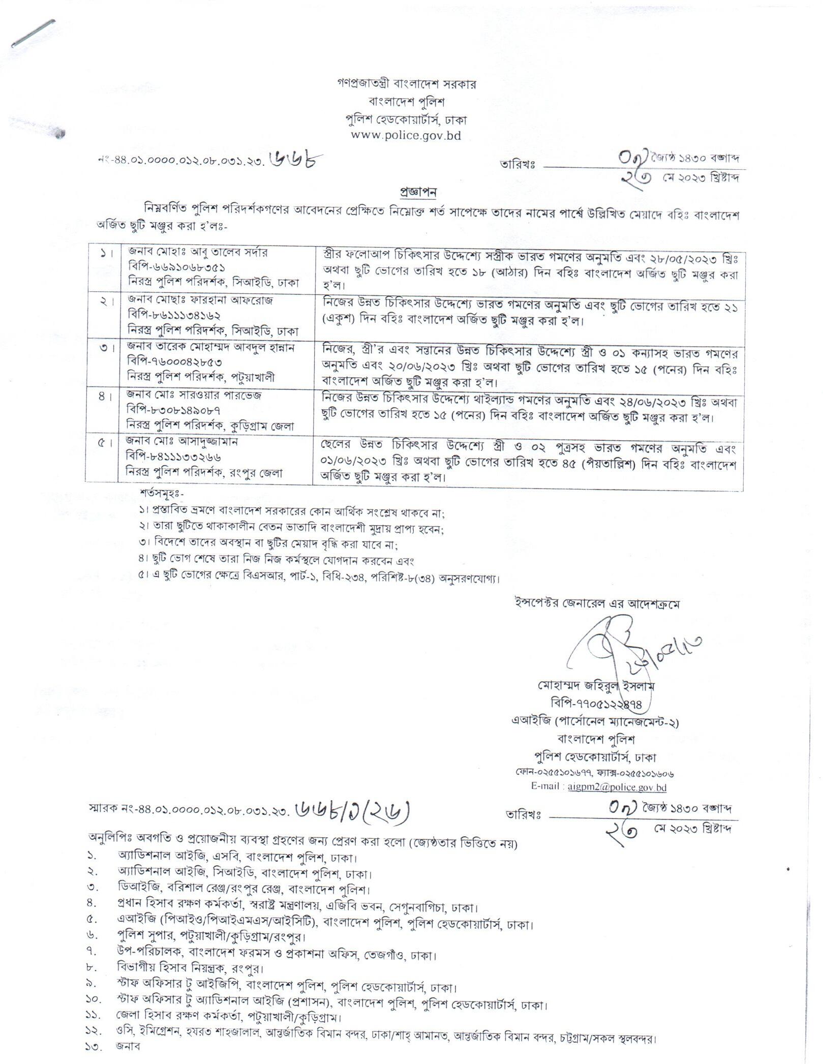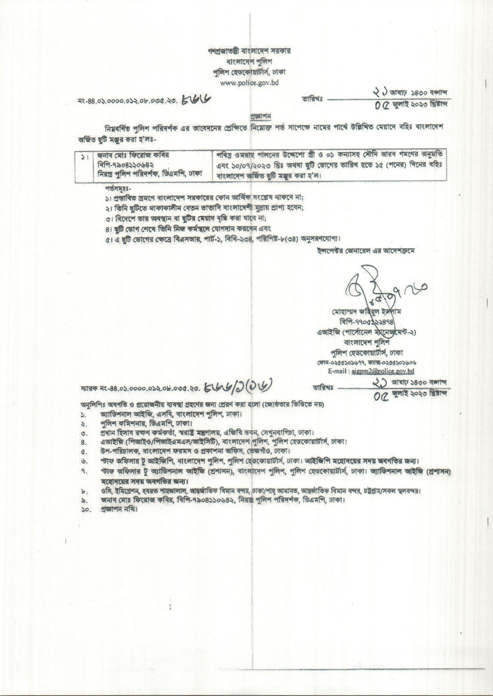 বহিঃ বাংলাদেশ ছুটি, বিজ্ঞপ্তি নং-২৭৬৮, তারিখঃ ০৫/০৭/২০২৩ খ্রিঃ।