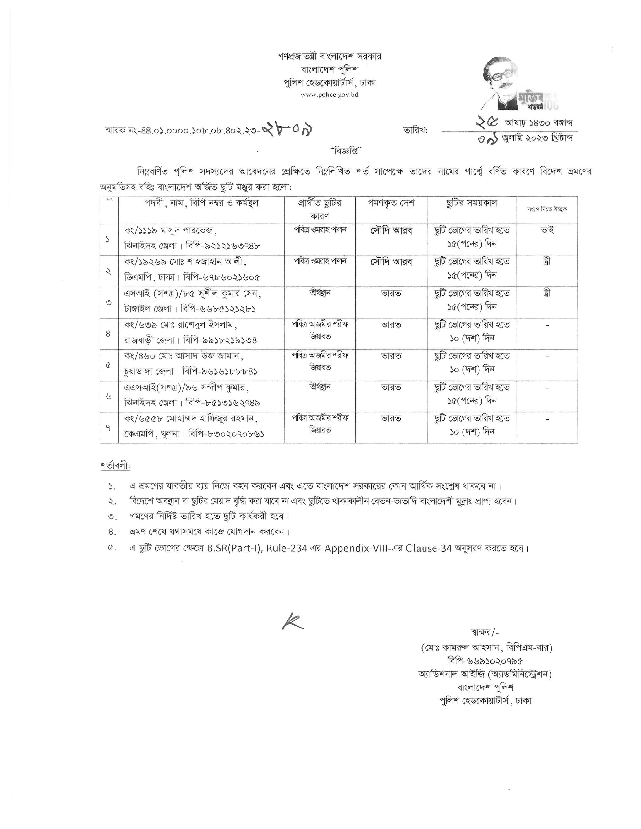 বহিঃ বাংলাদেশ ছুটি, বিজ্ঞপ্তি নং-২৭৬৯, তারিখঃ ০৫/০৭/২০২৩ খ্রিঃ।