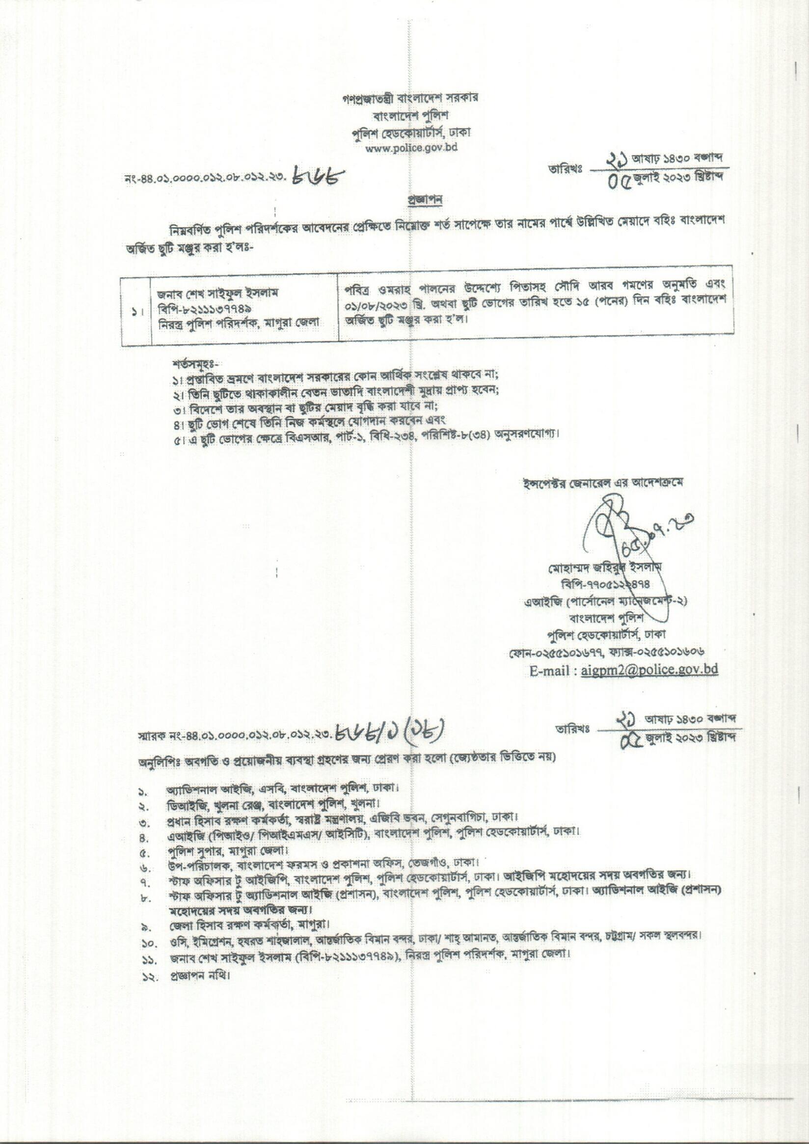 বহিঃ বাংলাদেশ ছুটি, বিজ্ঞপ্তি নং-২৮৪৬, তারিখঃ ১২/০৭/২০২৩ খ্রিঃ।
