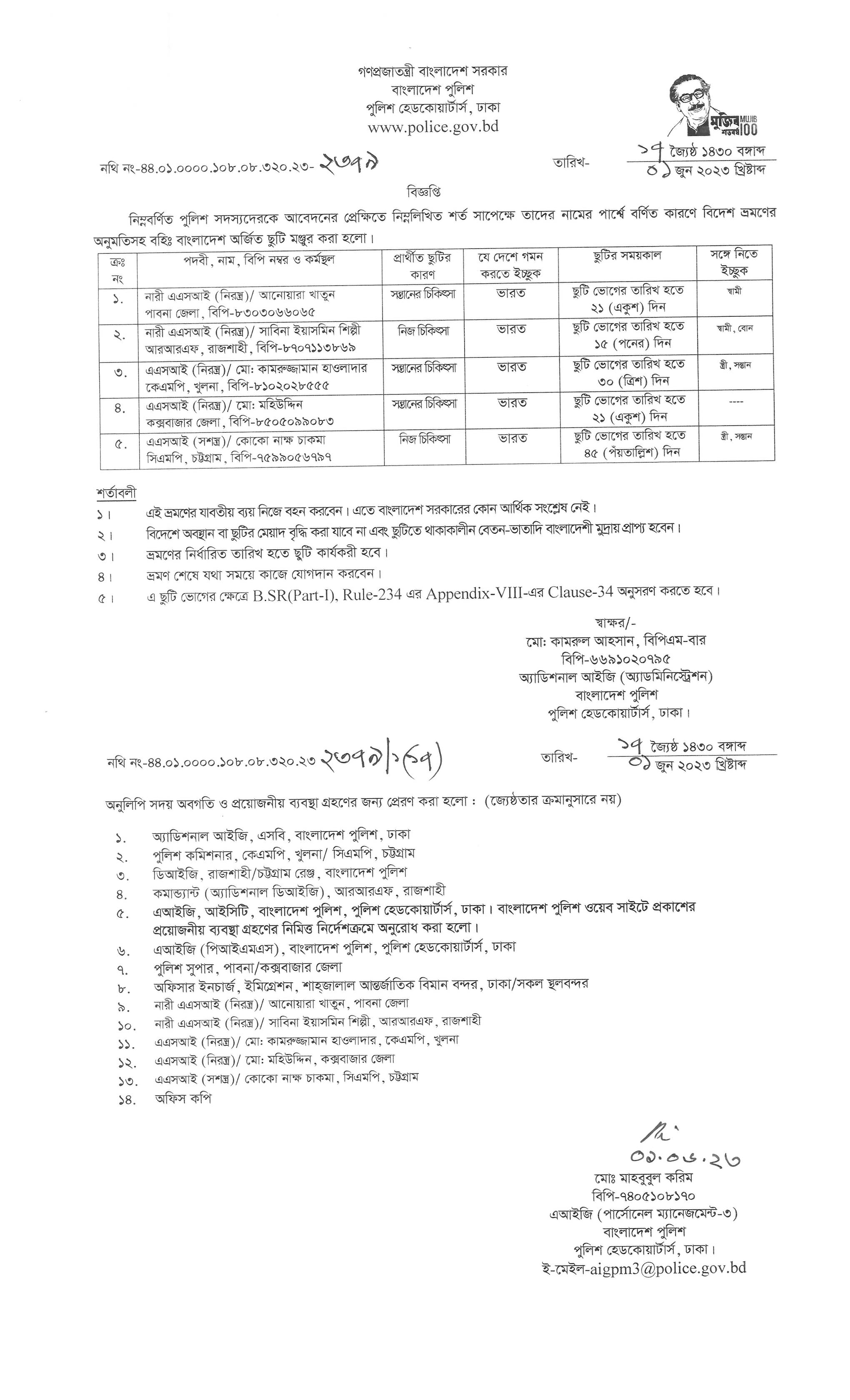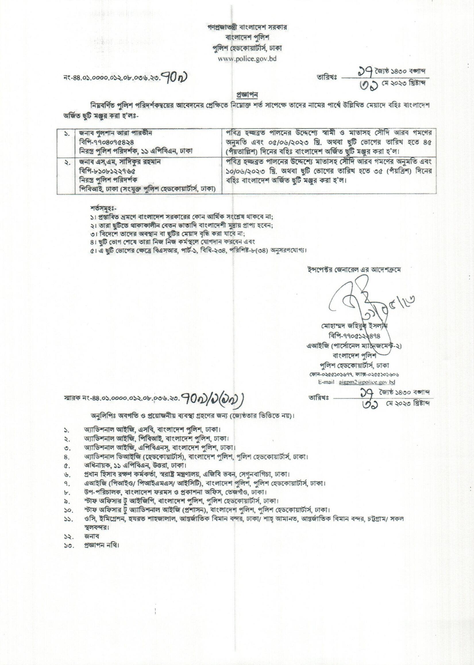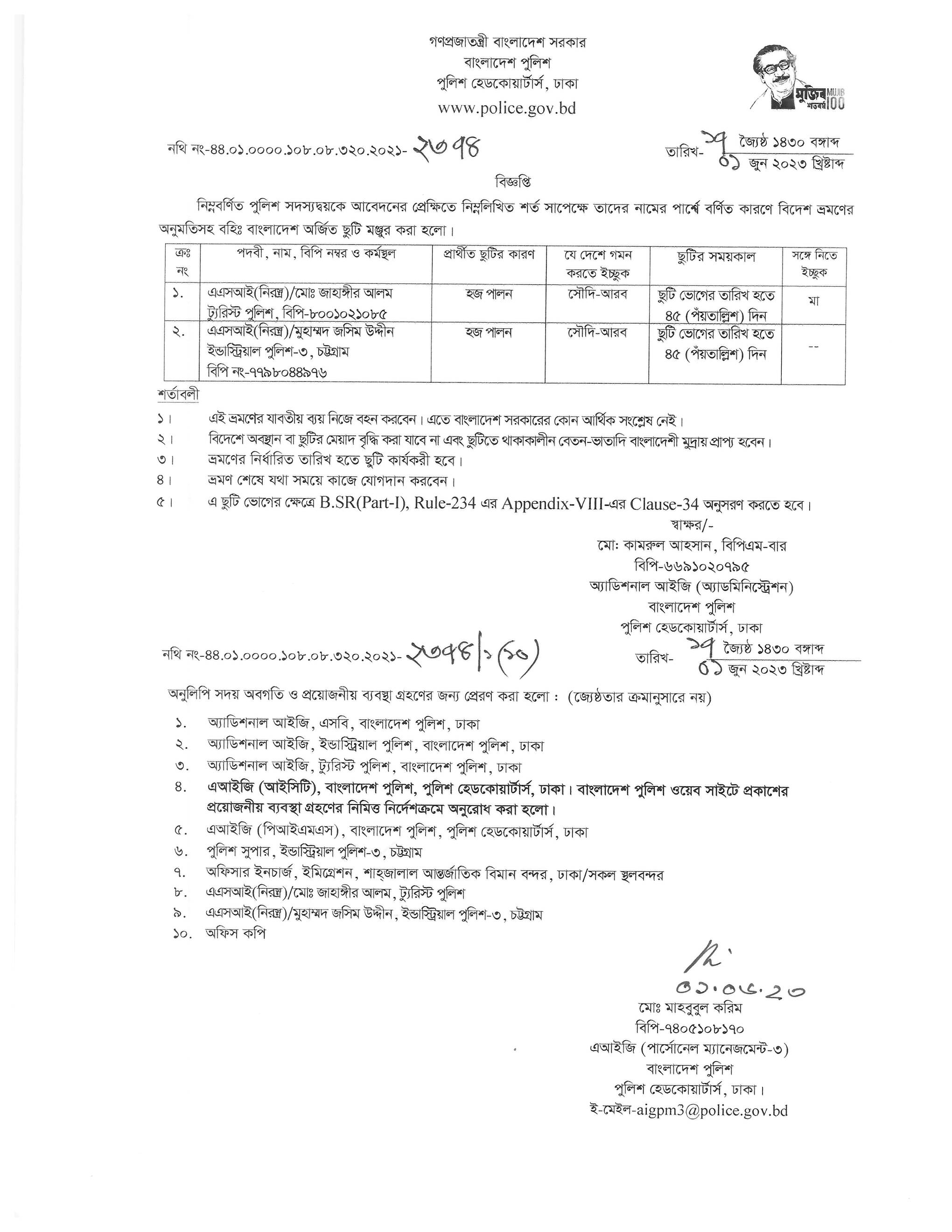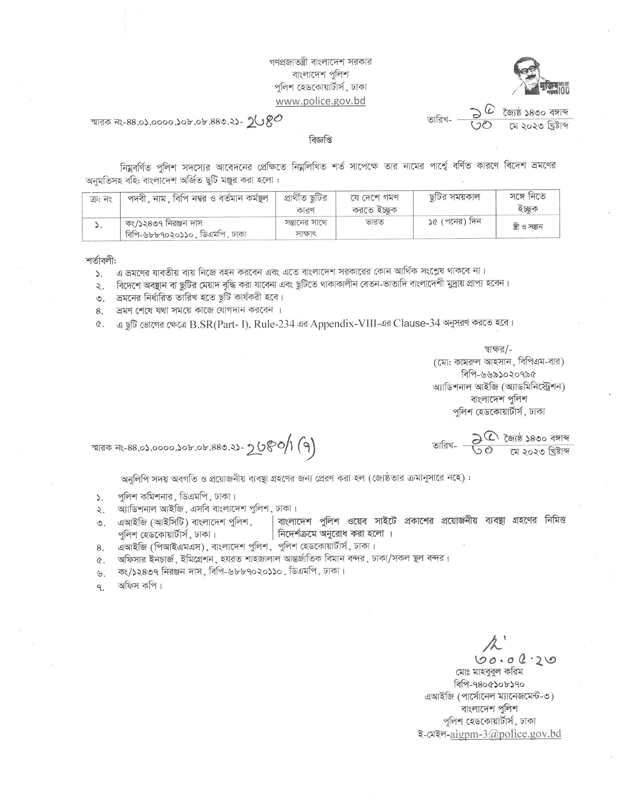 বহিঃ বাংলাদেশ ছুটি, বিজ্ঞপ্তি নং-২৩৪১ , তারিখঃ ৩০/০৫/২০২৩ খ্রিঃ।