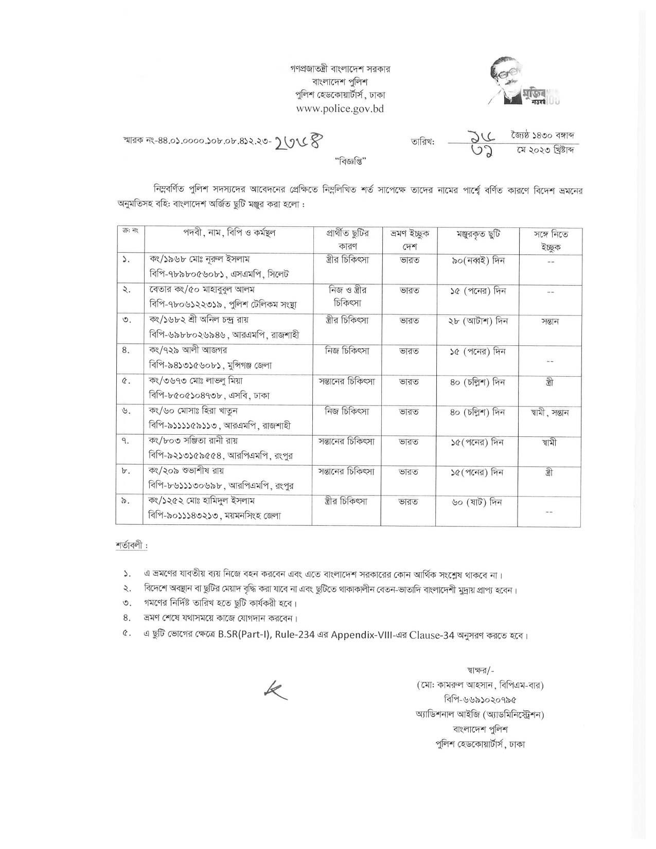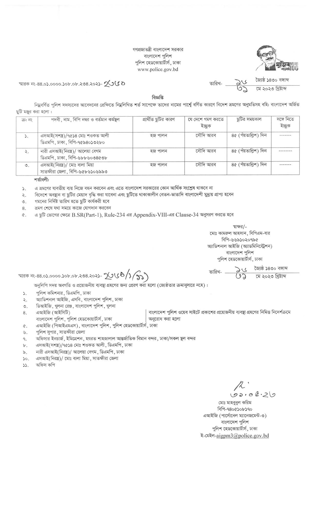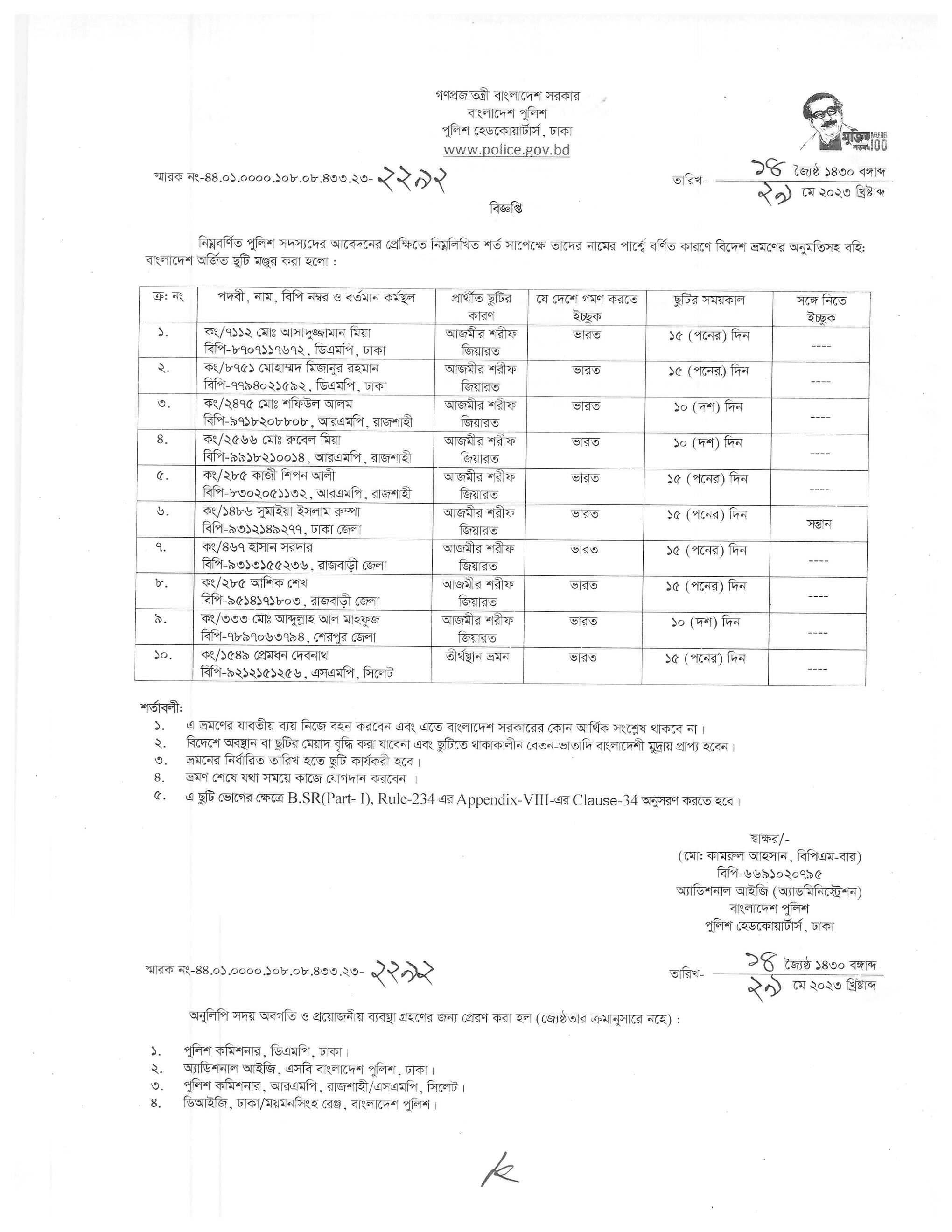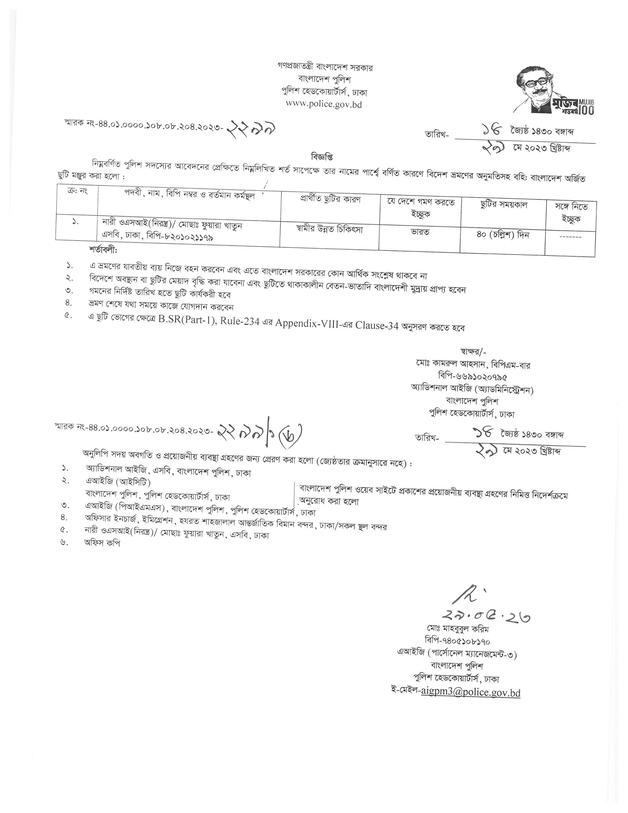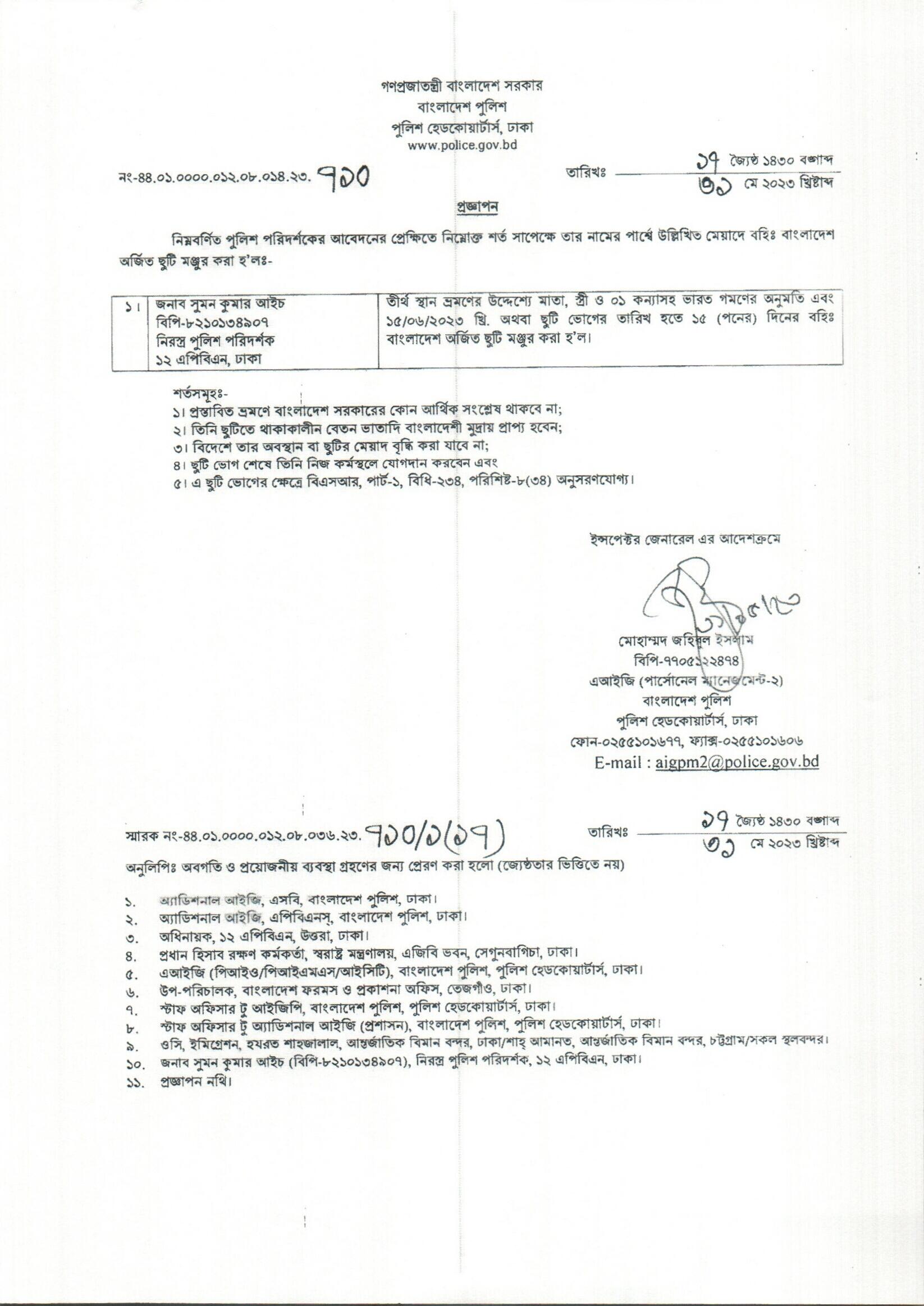 বহিঃ বাংলাদেশ ছুটি, বিজ্ঞপ্তি নং-২৩৪১ , তারিখঃ ৩০/০৫/২০২৩ খ্রিঃ।