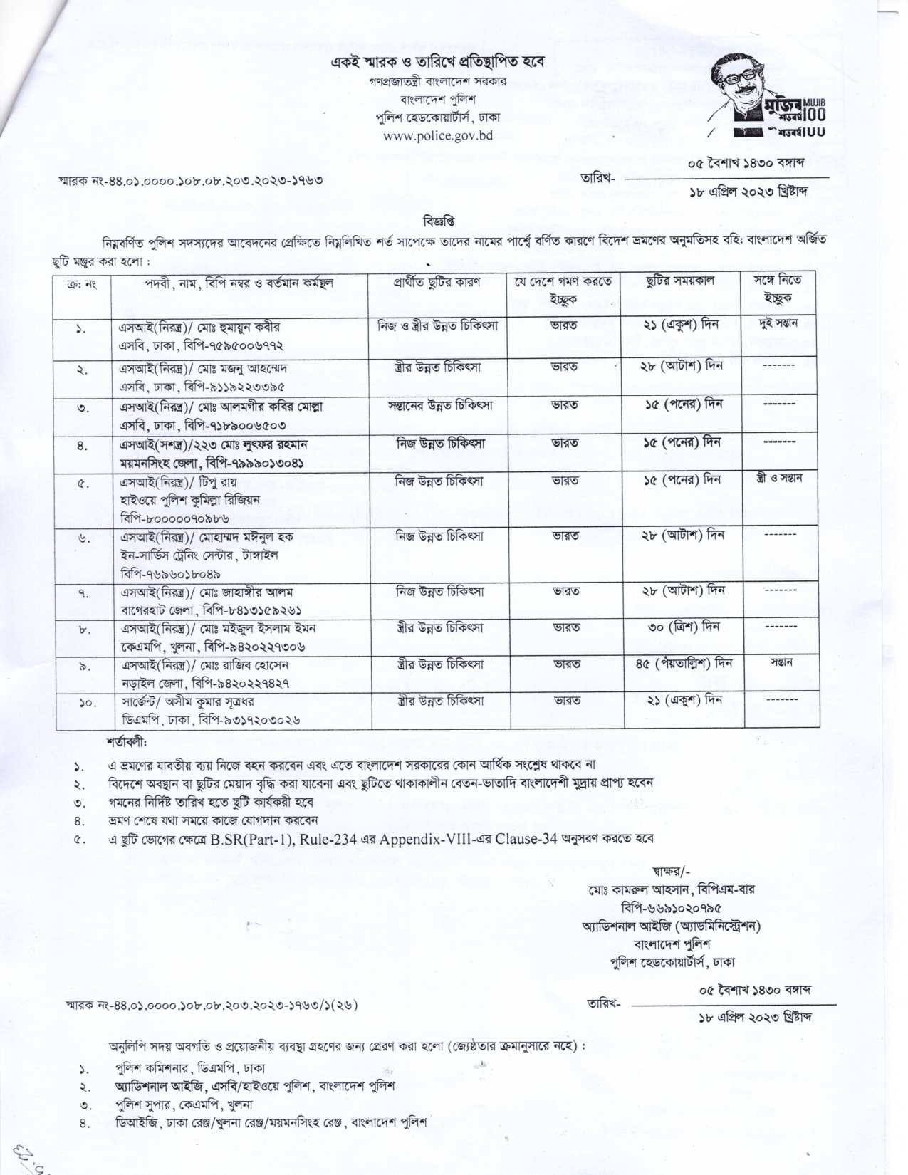 বহিঃ বাংলাদেশ ছুটি, বিজ্ঞপ্তি নং-১৭৬৩ , তারিখঃ ১৮/০৪/২০২৩ খ্রিঃ।