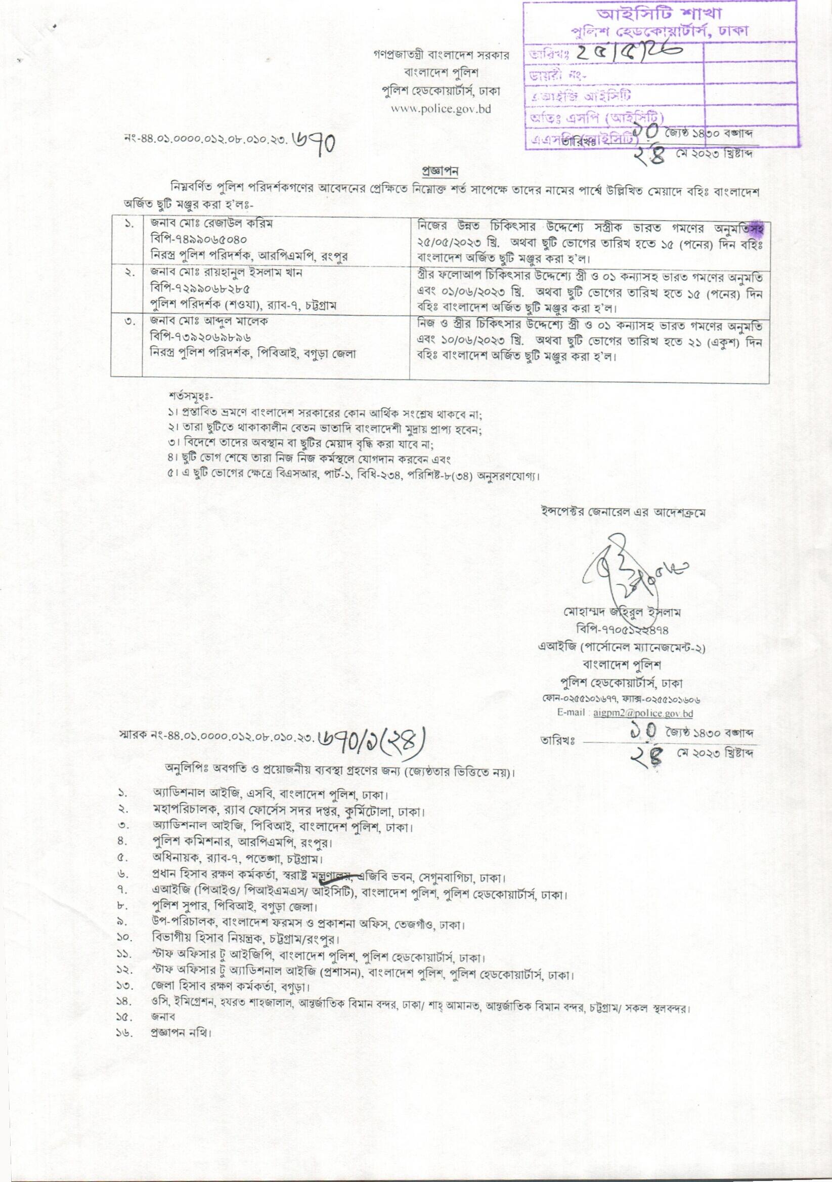 বহিঃ বাংলাদেশ ছুটি, প্রজ্ঞাপন নং-৬৭০ , তারিখঃ ২৪/০৫/২০২৩ খ্রিঃ।