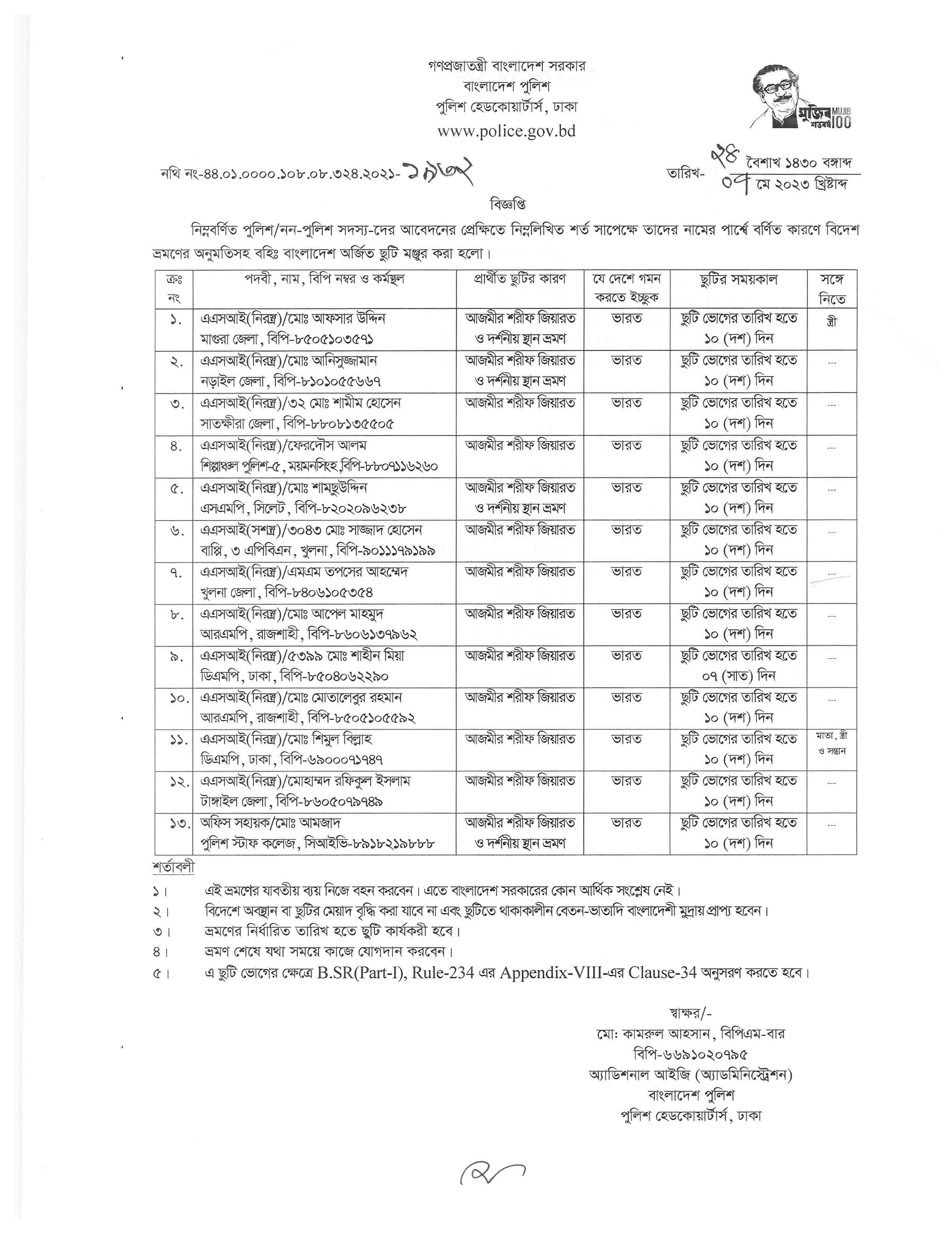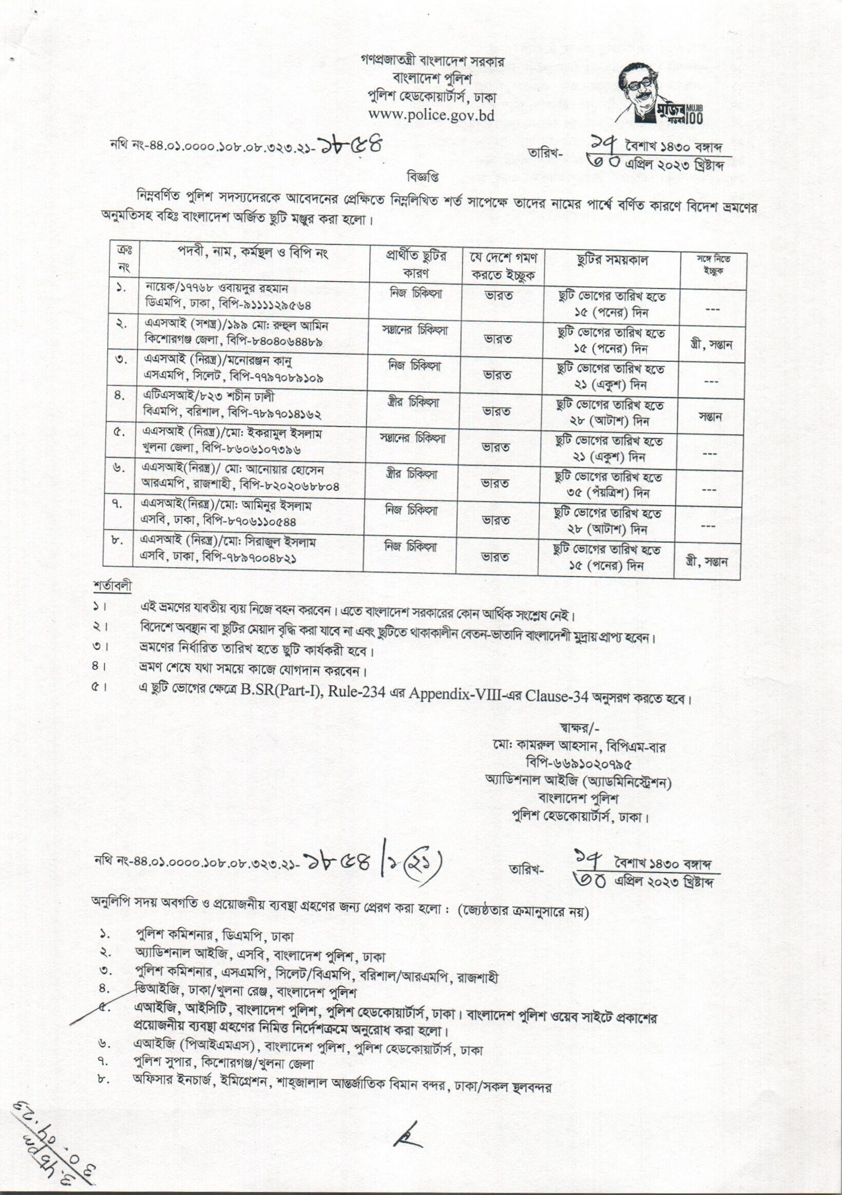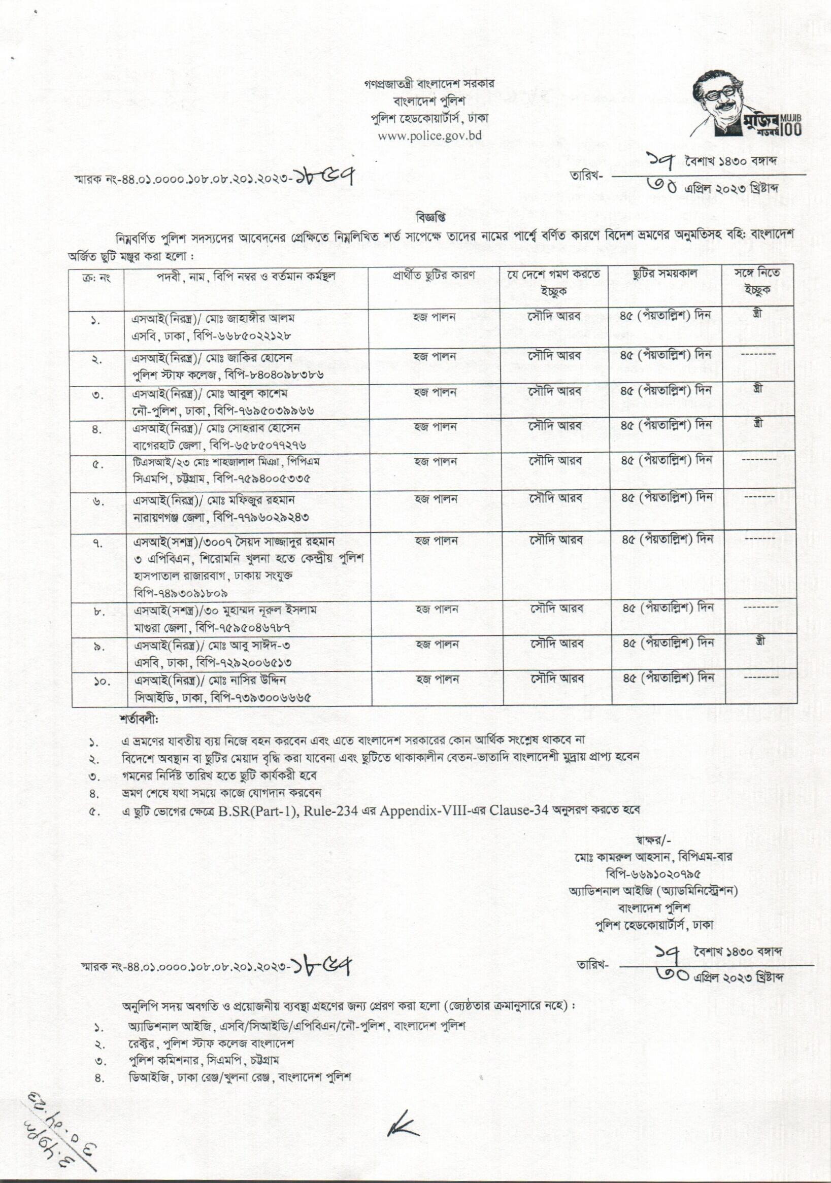 বহিঃ বাংলাদেশ ছুটি, বিজ্ঞপ্তি নং- ১৯৬০, তারিখঃ ০৯/০৫/২০২৩ খ্রিঃ।