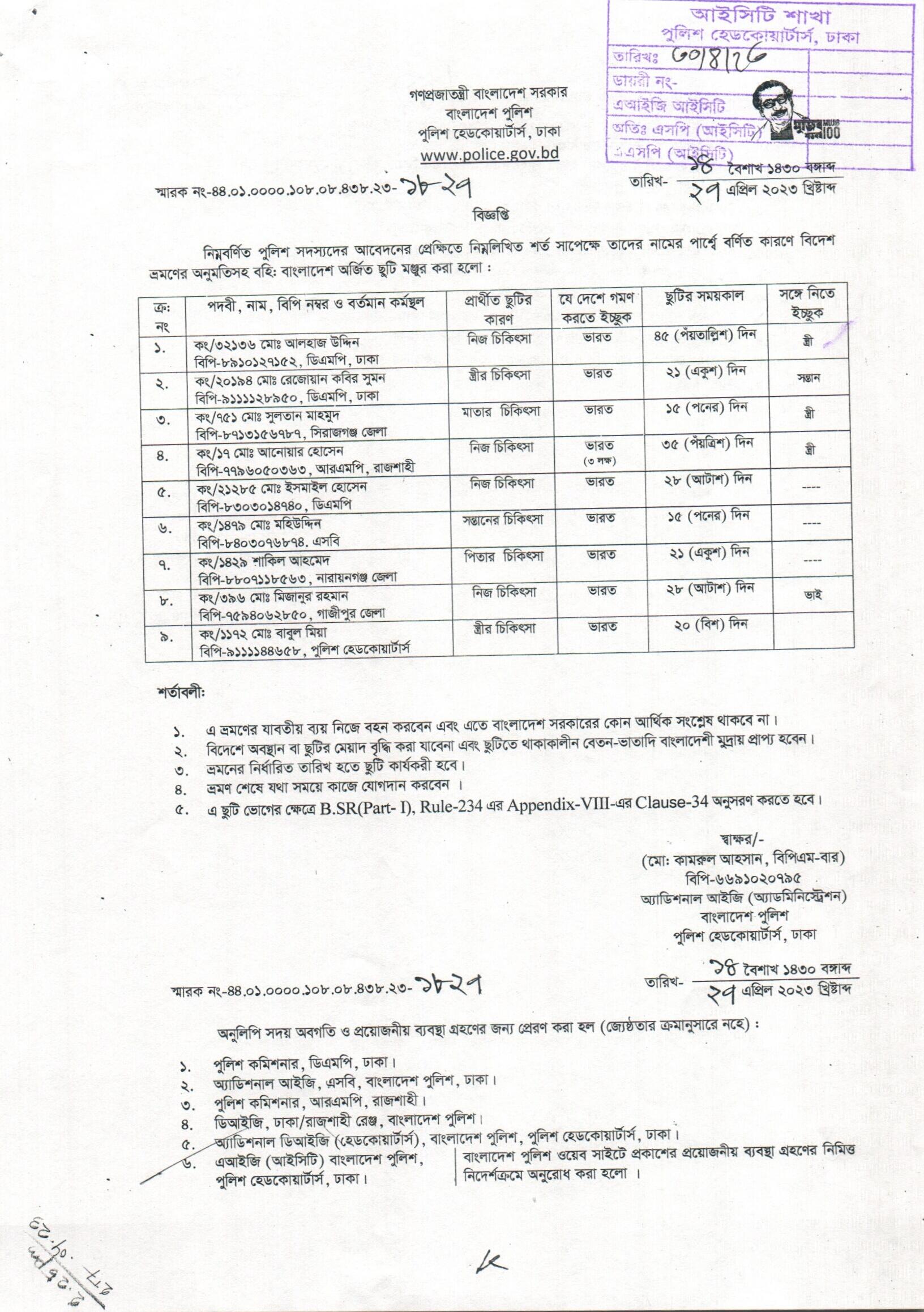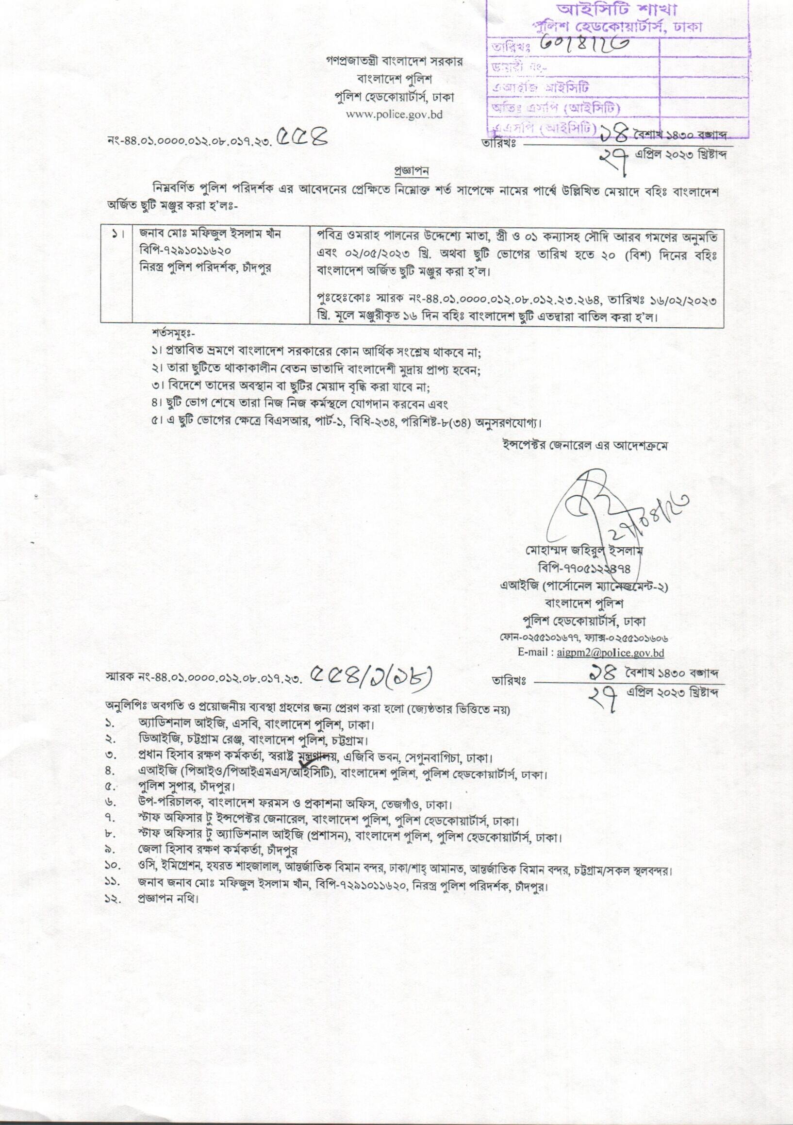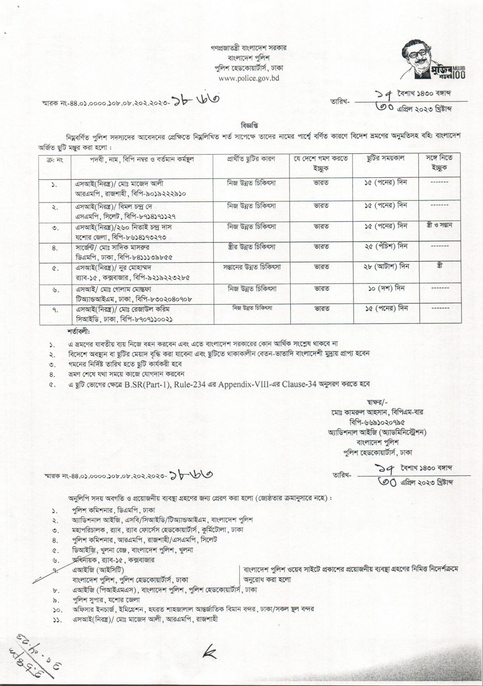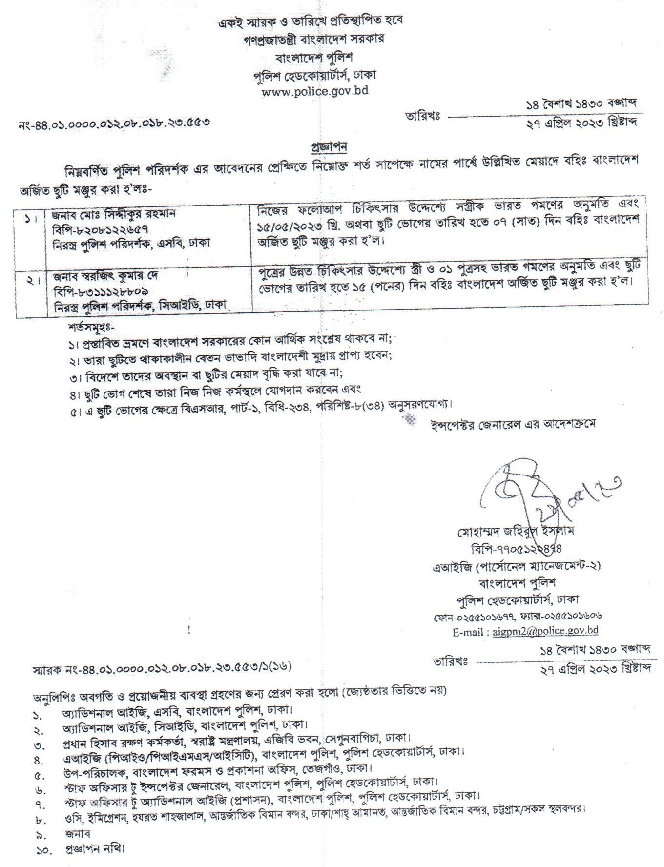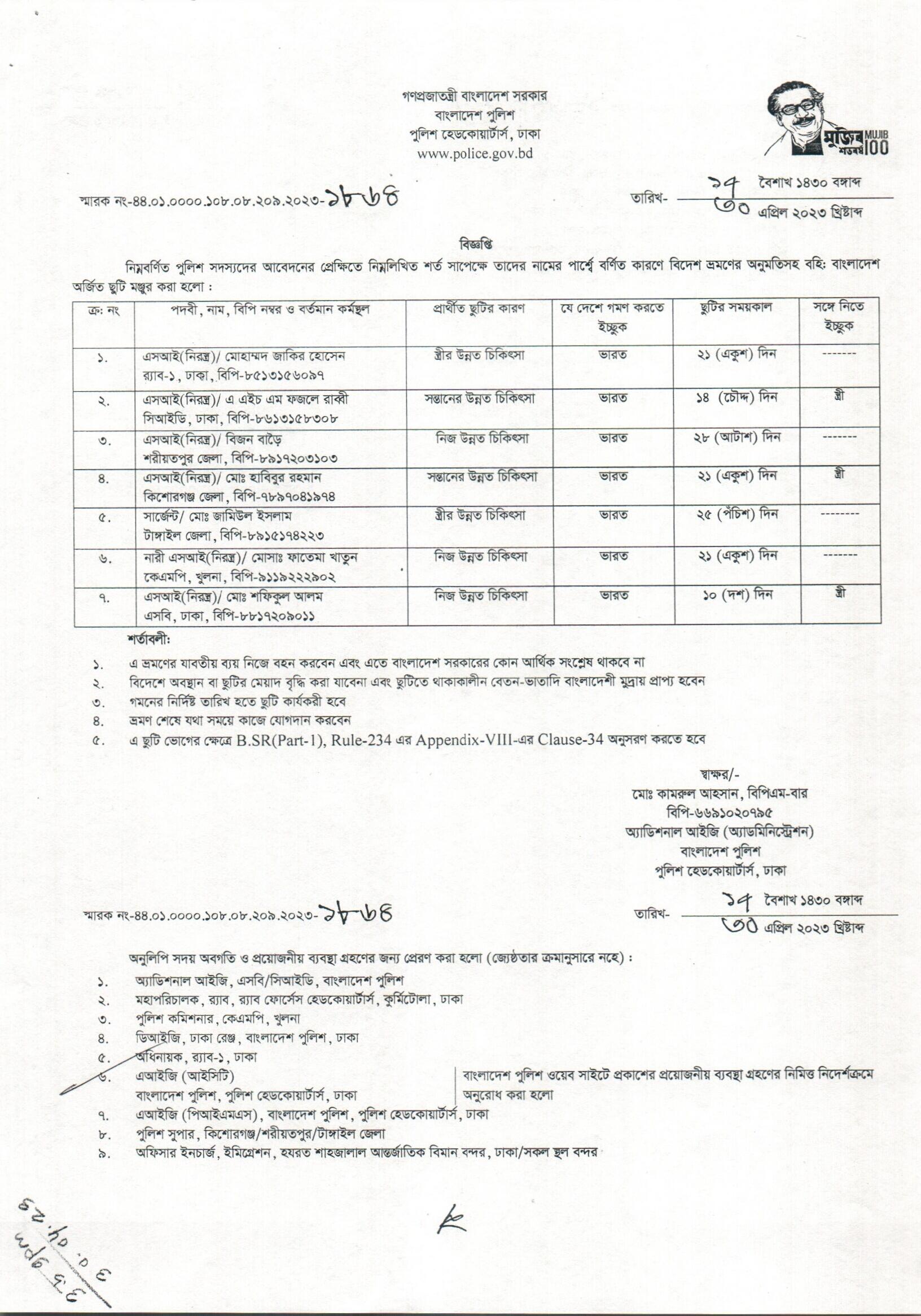 বহিঃ বাংলাদেশ ছুটি, বিজ্ঞপ্তি নং- ১৮১৮, তারিখঃ ২৬/০৪/২০২৩ খ্রিঃ।