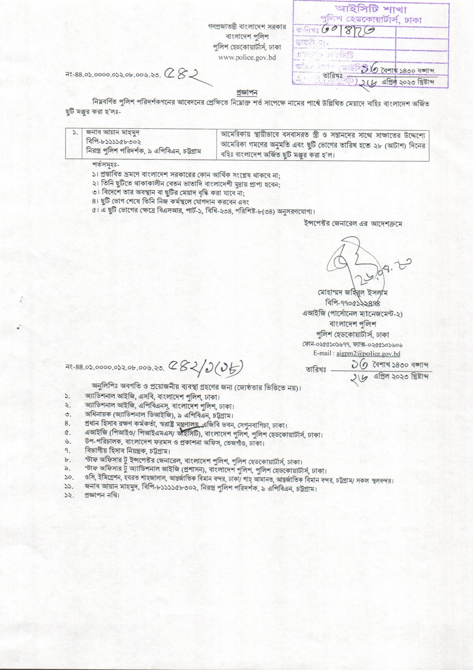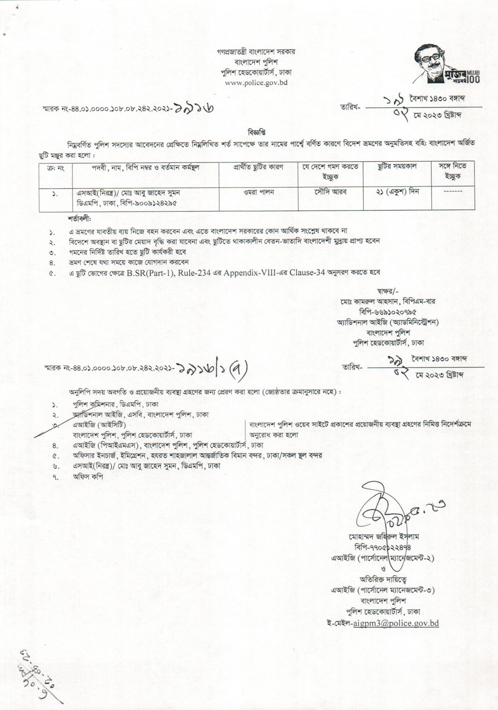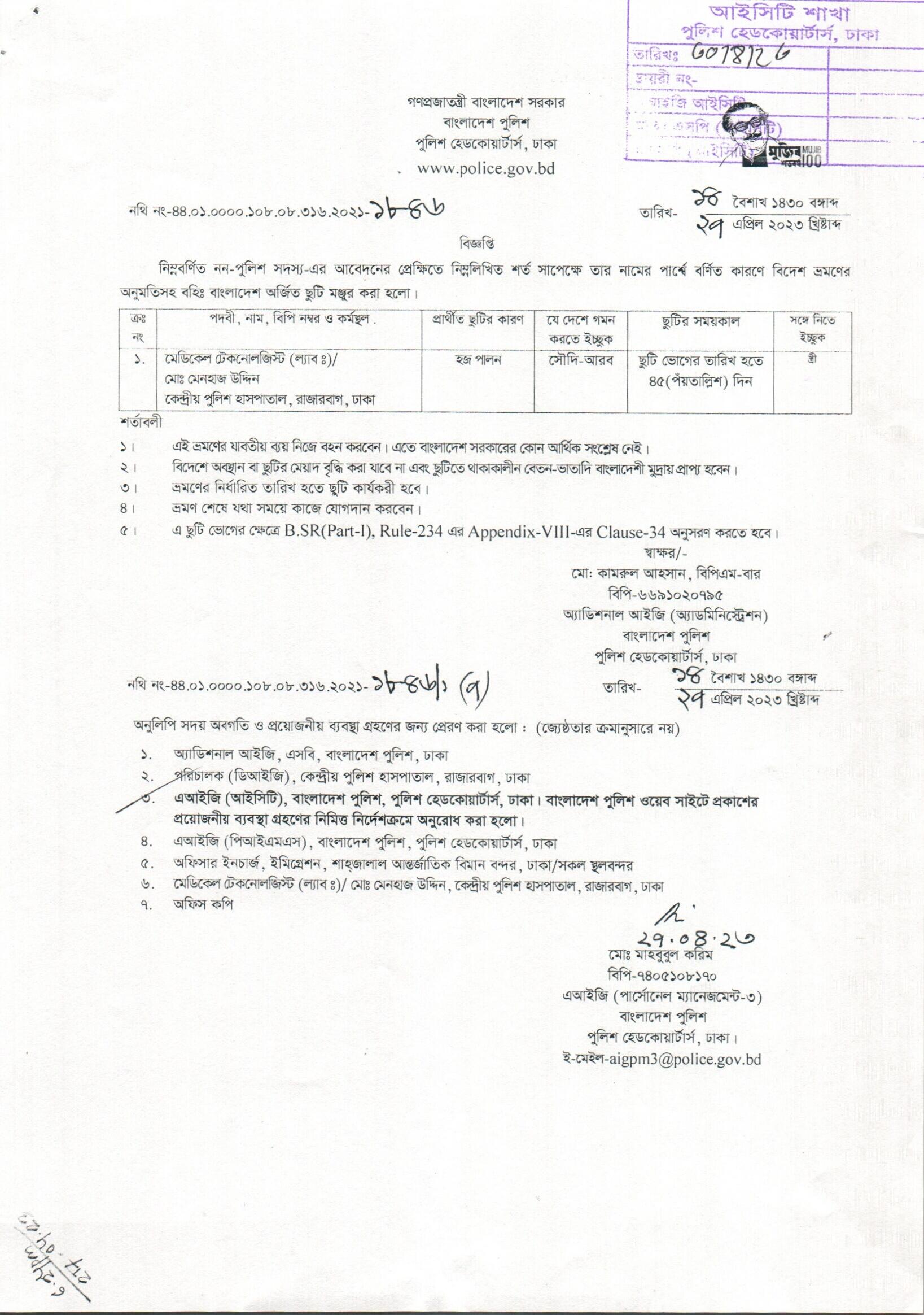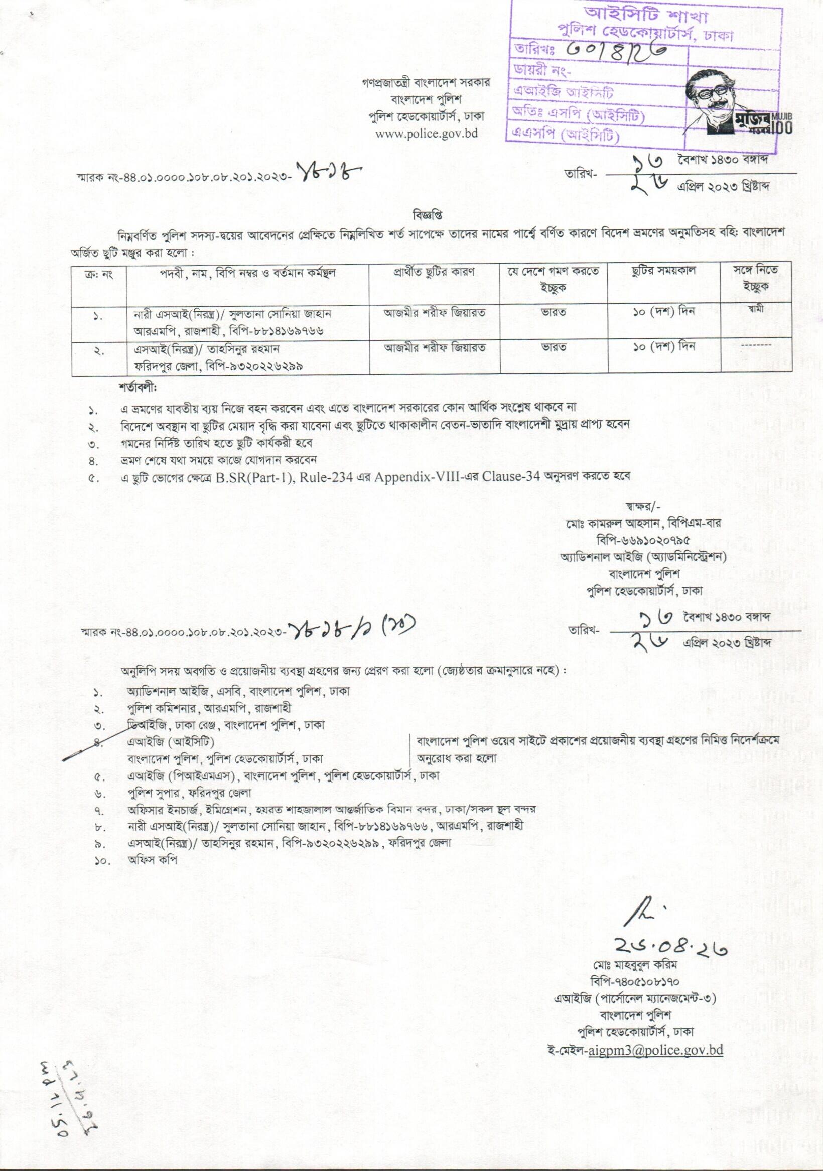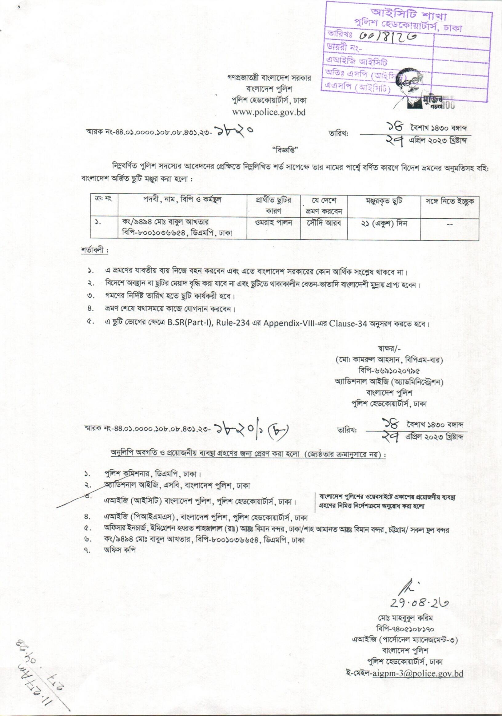 বহিঃ বাংলাদেশ ছুটি, বিজ্ঞপ্তি নং- ১৮১৮, তারিখঃ ২৬/০৪/২০২৩ খ্রিঃ।