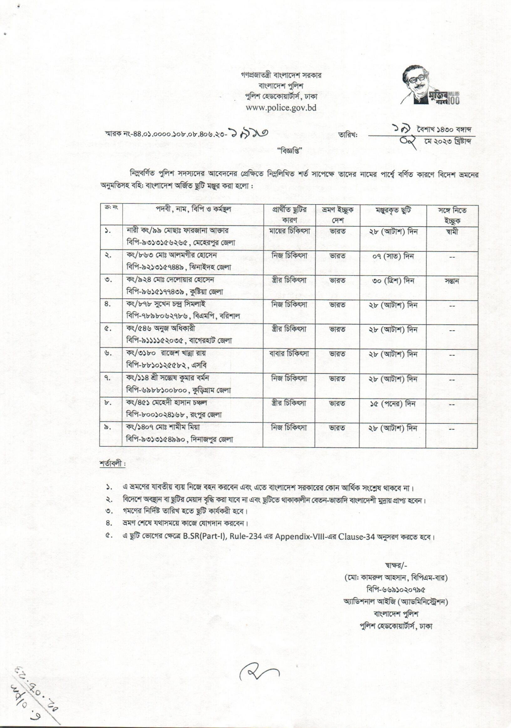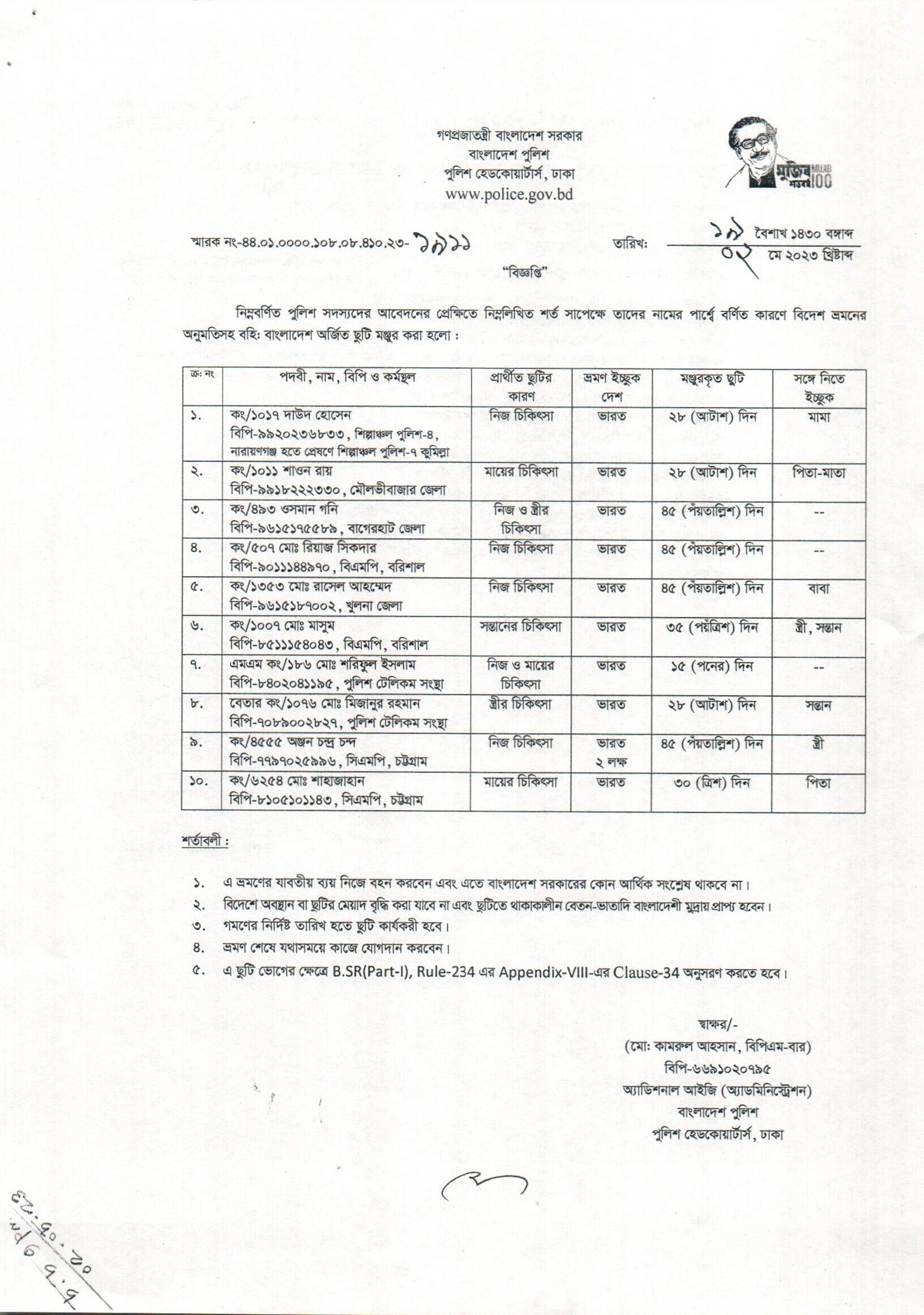 বহিঃ বাংলাদেশ ছুটি, বিজ্ঞপ্তি নং- ১৯১১, তারিখঃ ০২/০৫/২০২৩ খ্রিঃ।