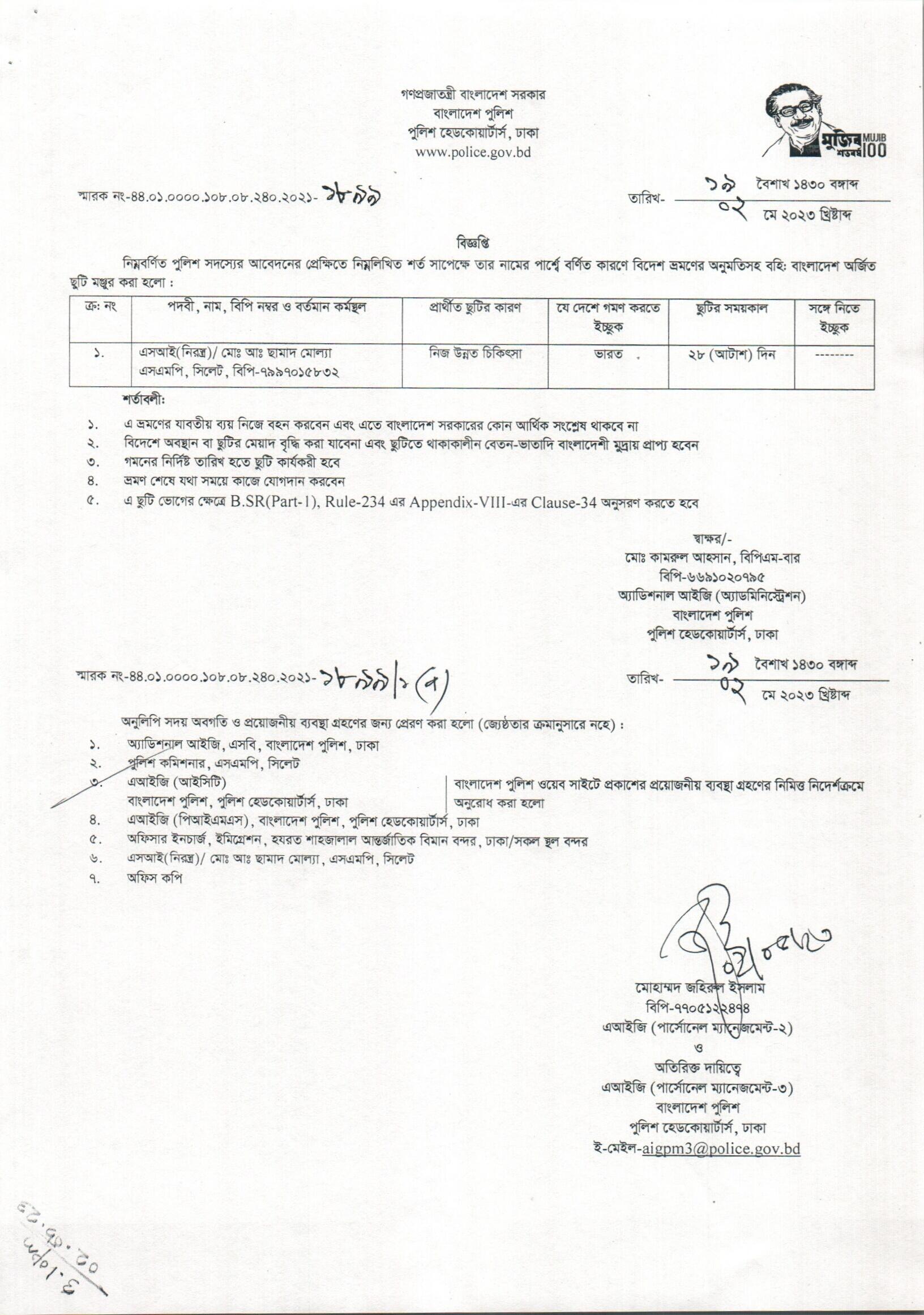 বহিঃ বাংলাদেশ ছুটি, বিজ্ঞপ্তি নং- ১৯০২, তারিখঃ ০২/০৫/২০২৩ খ্রিঃ।
